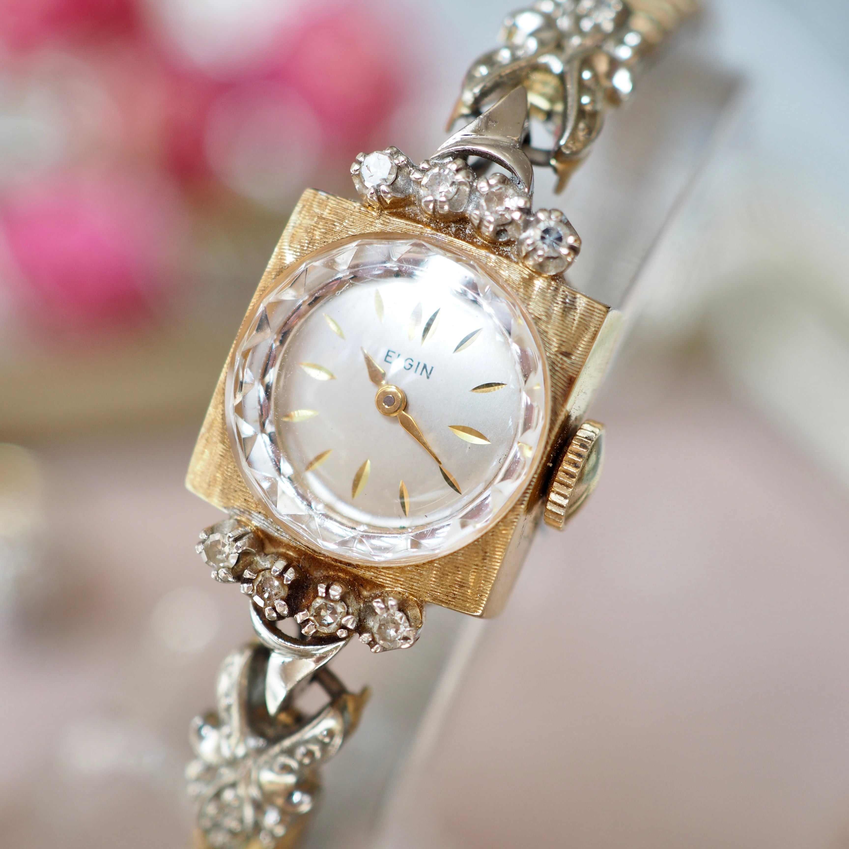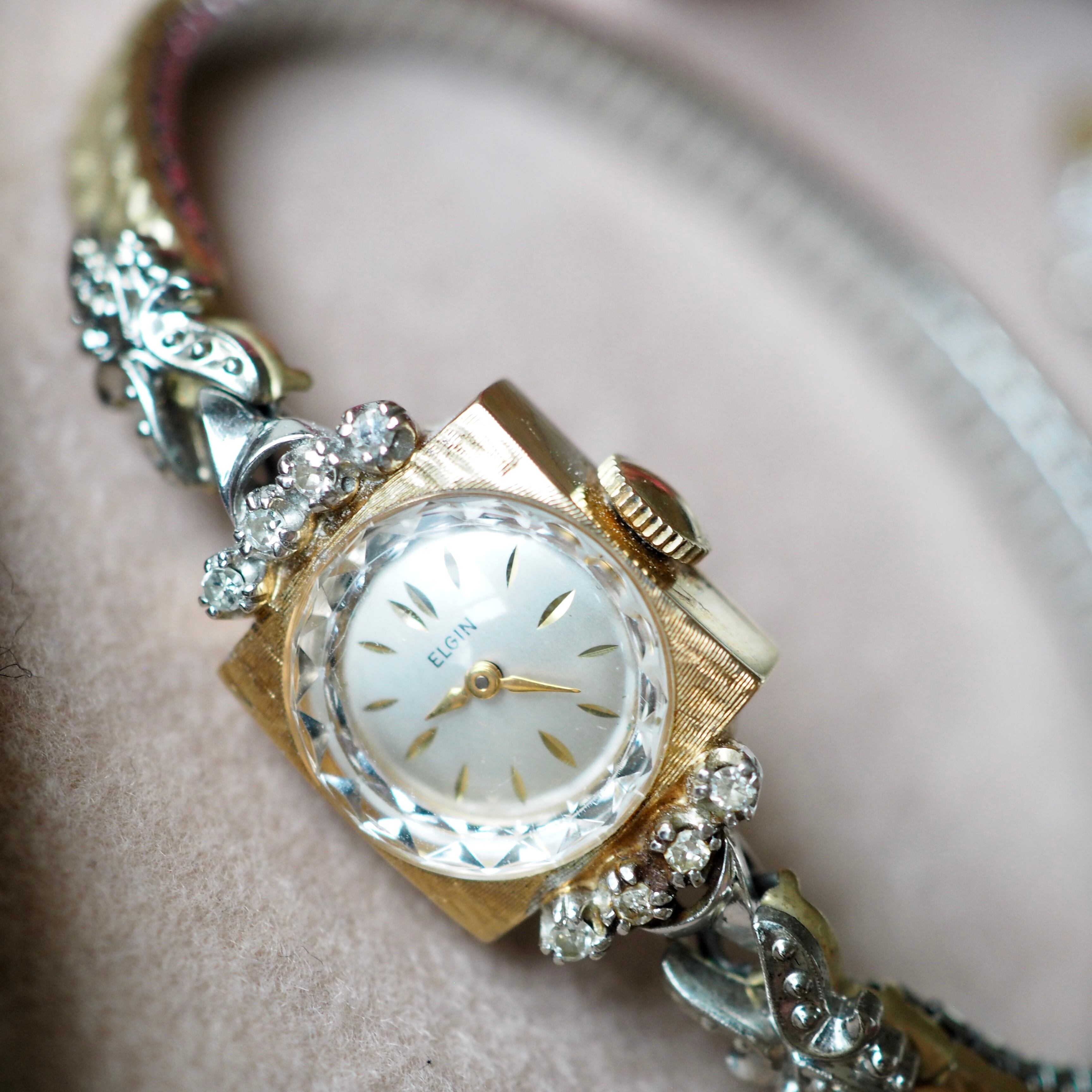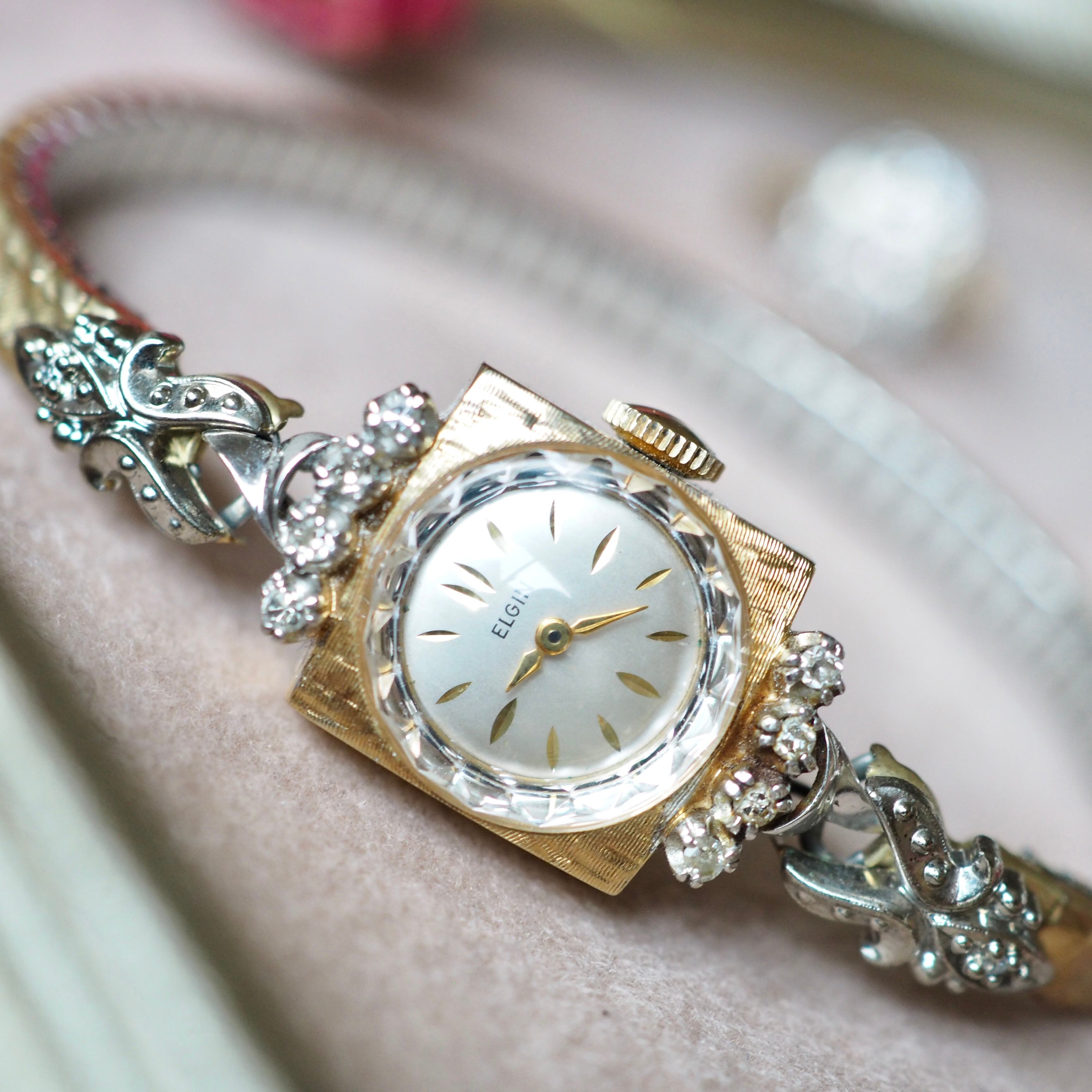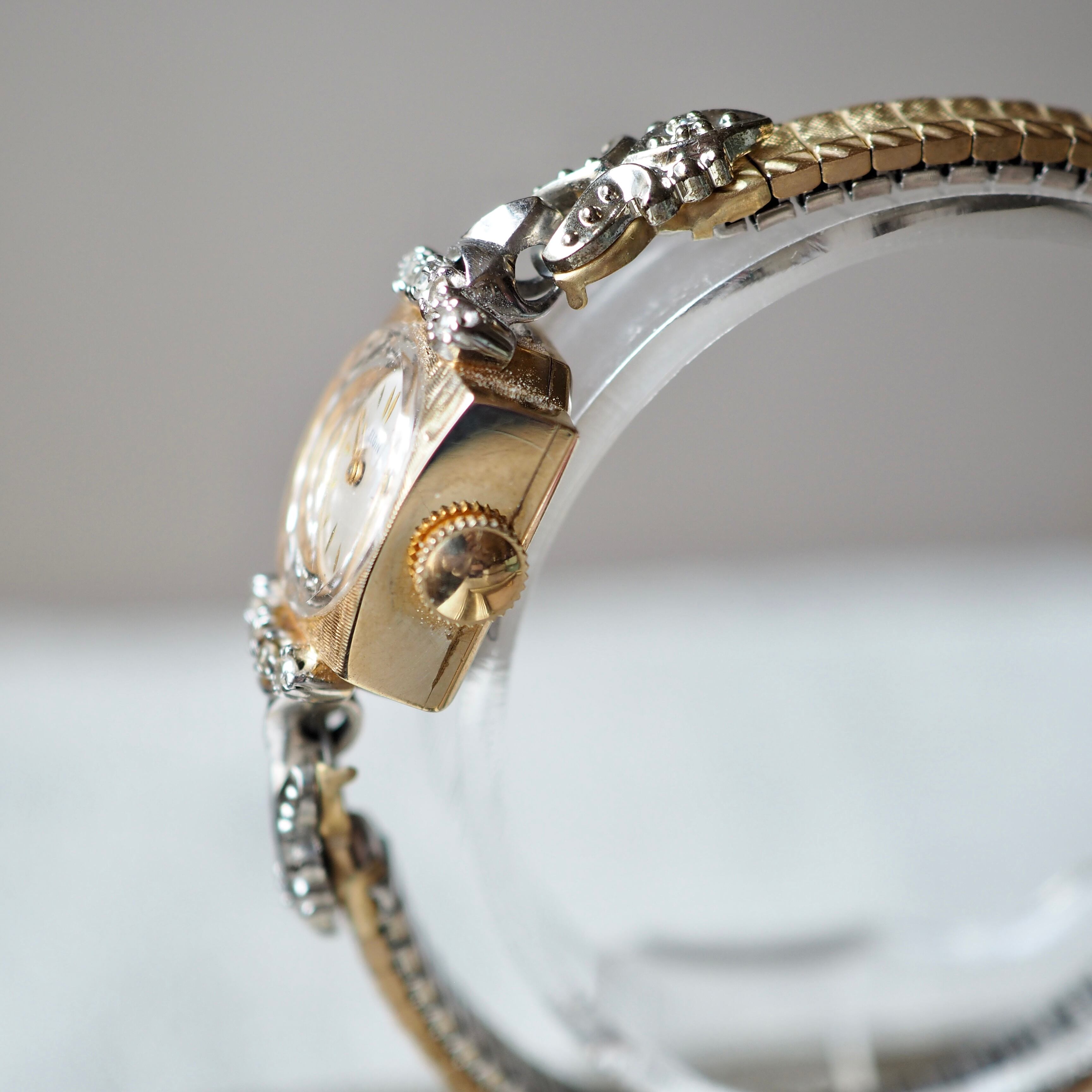 ELGIN エルジン K14無垢 ダイヤモンド コンビカラー カクテルウォッチ アンティーク時計