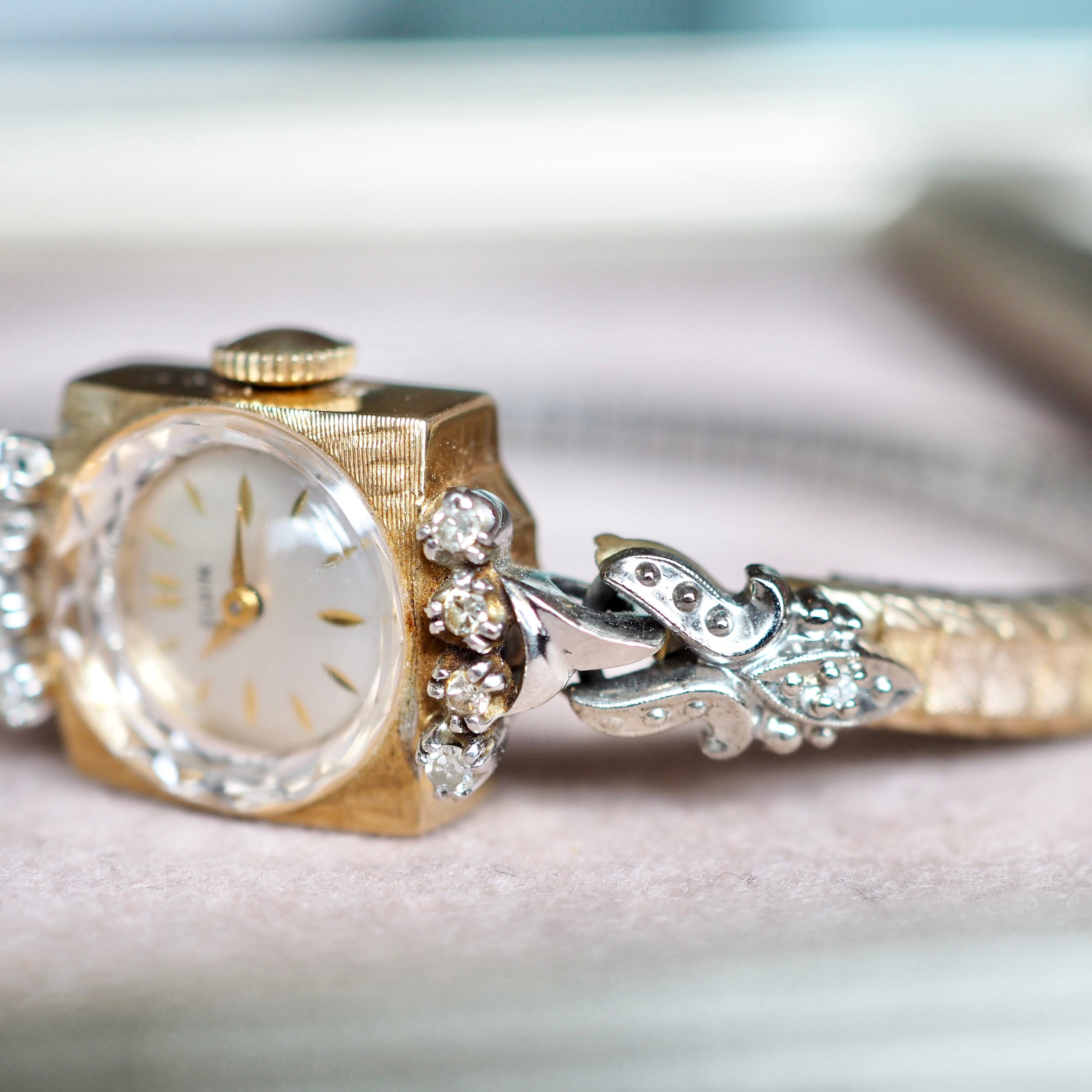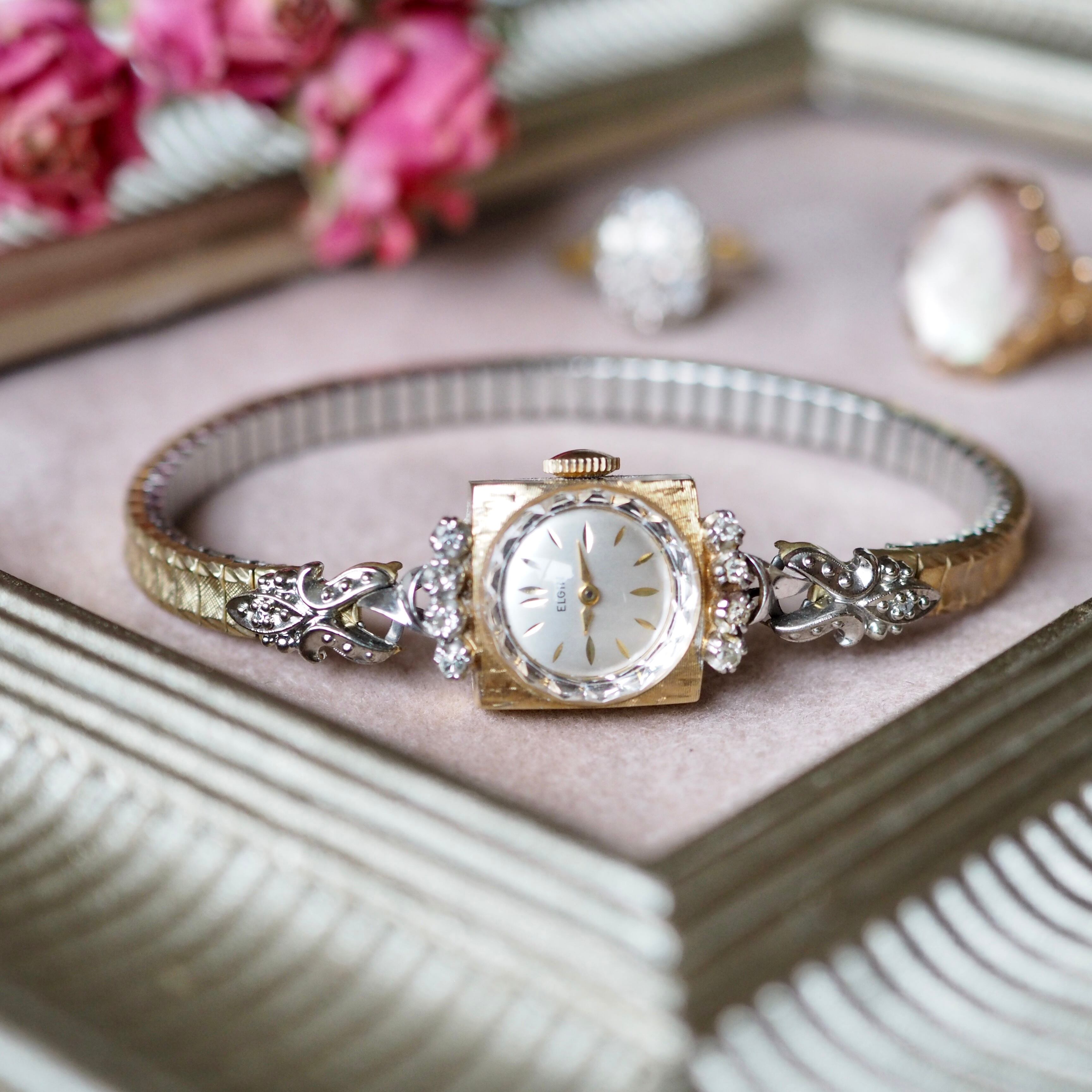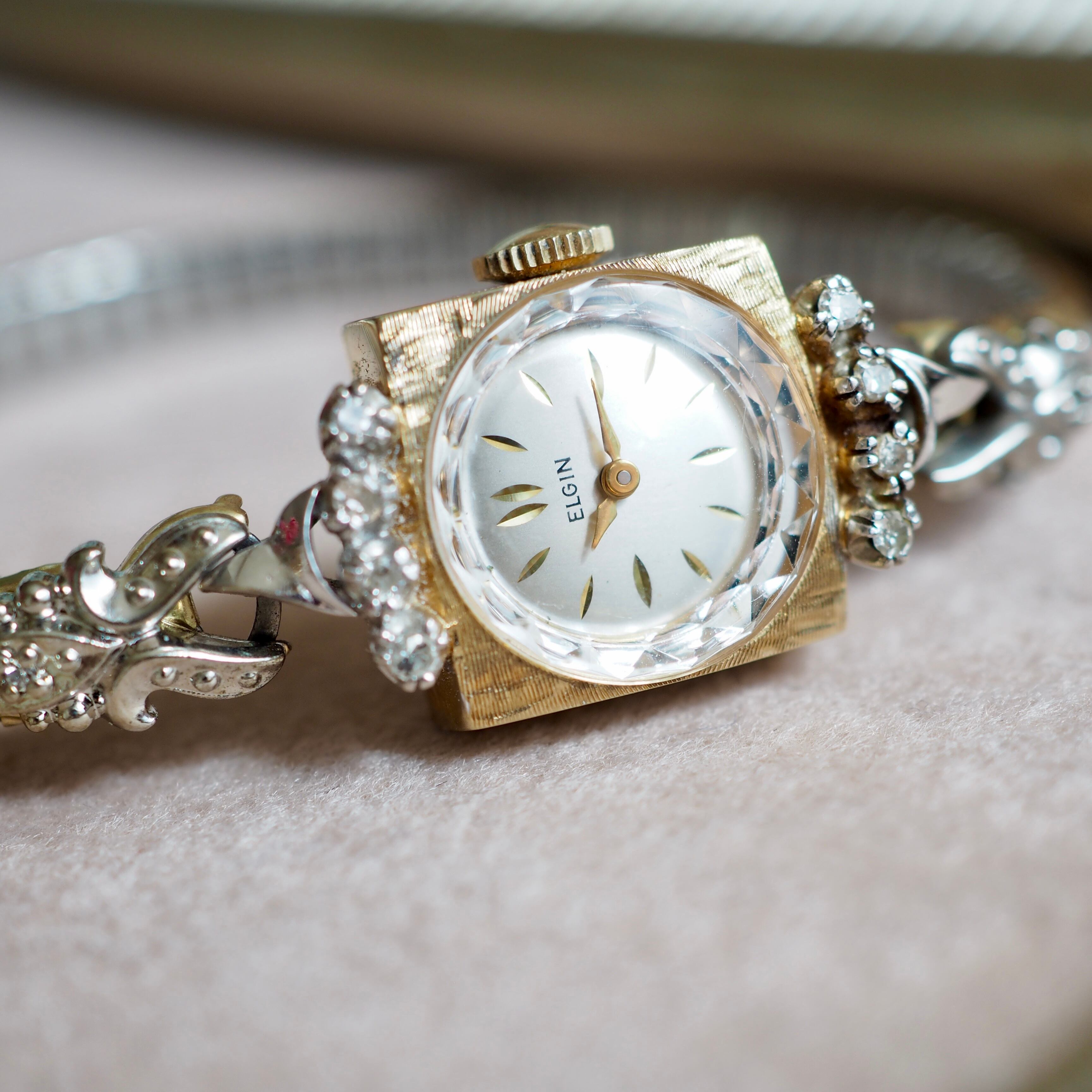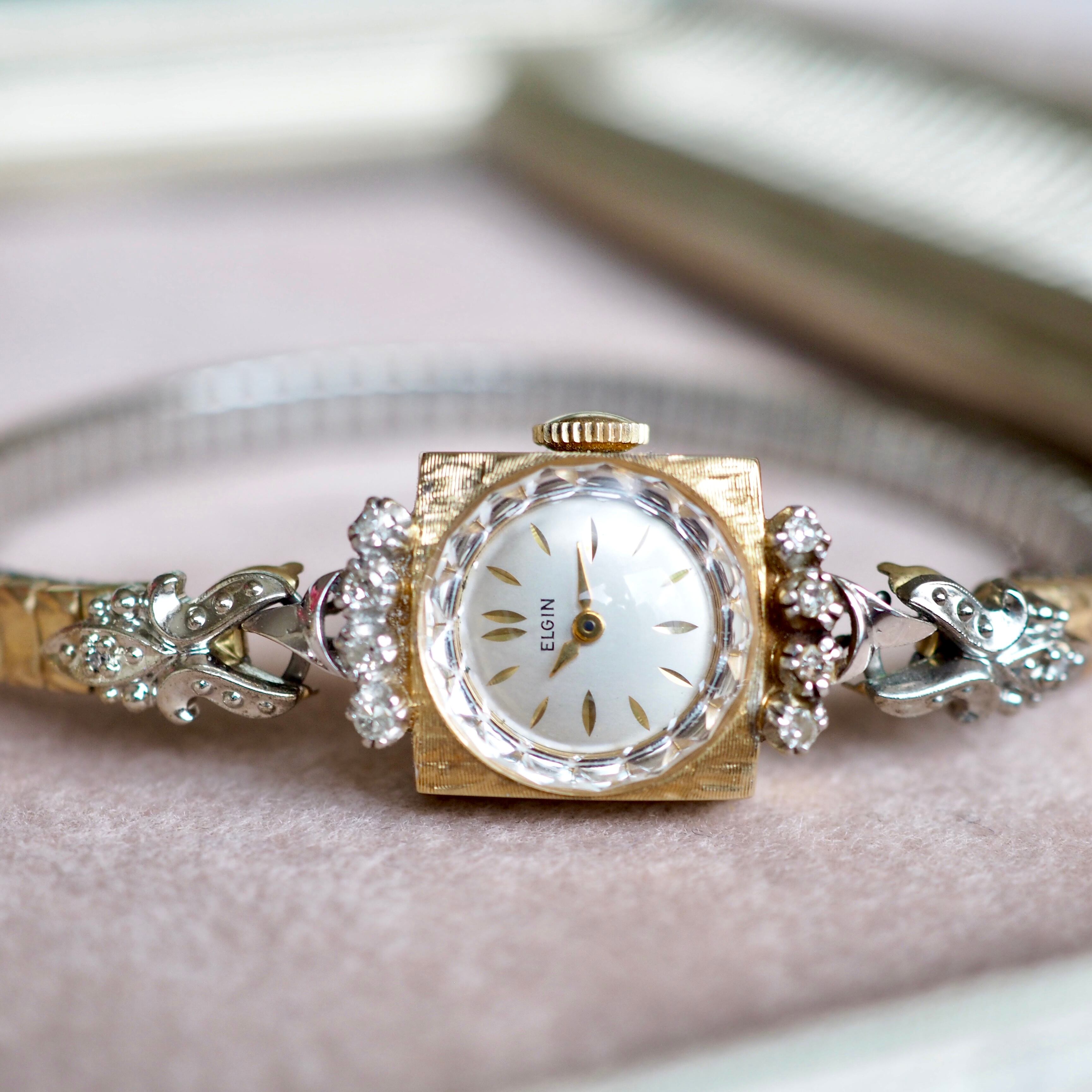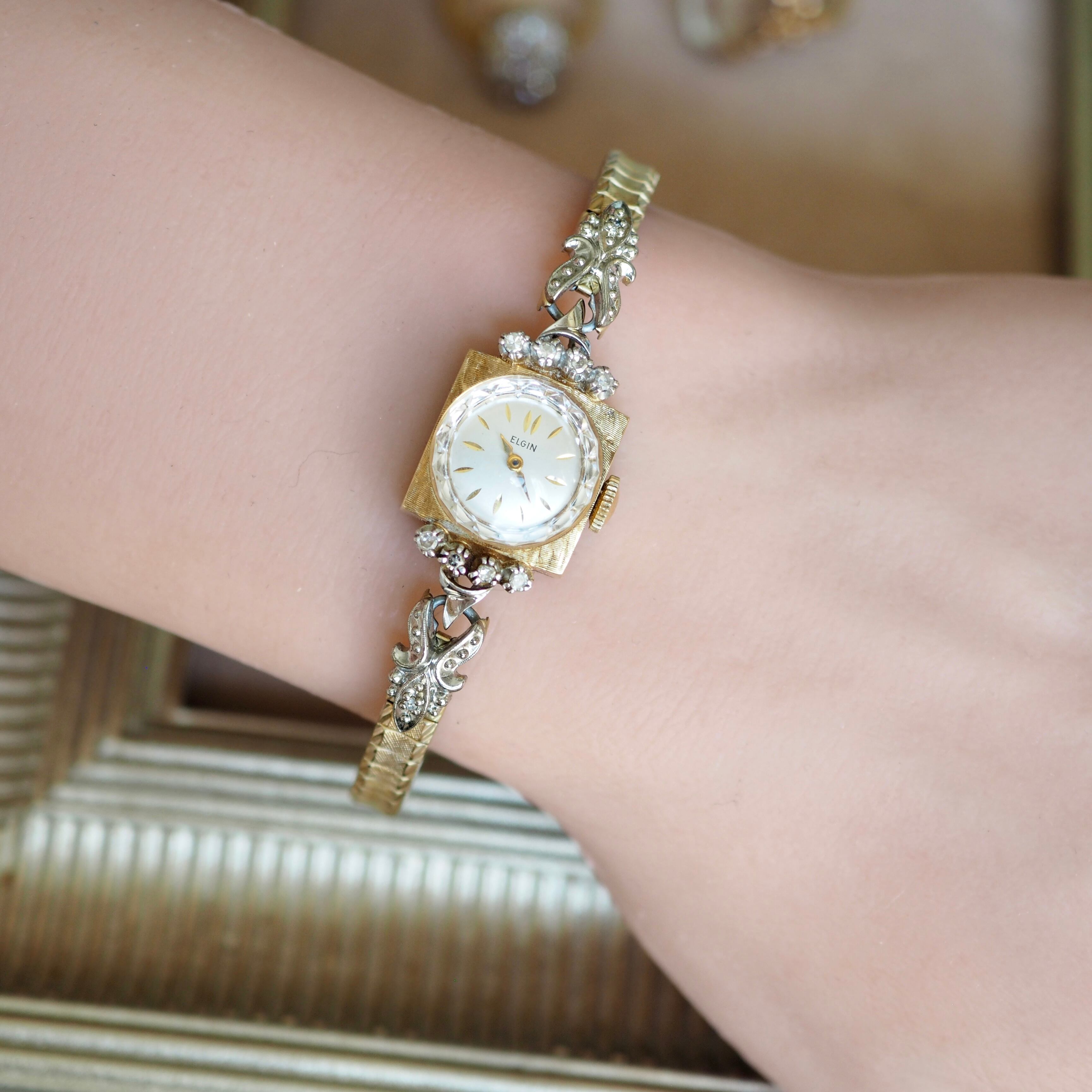 ELGIN エルジン K14無垢 ダイヤモンド コンビカラー カクテルウォッチ アンティーク時計