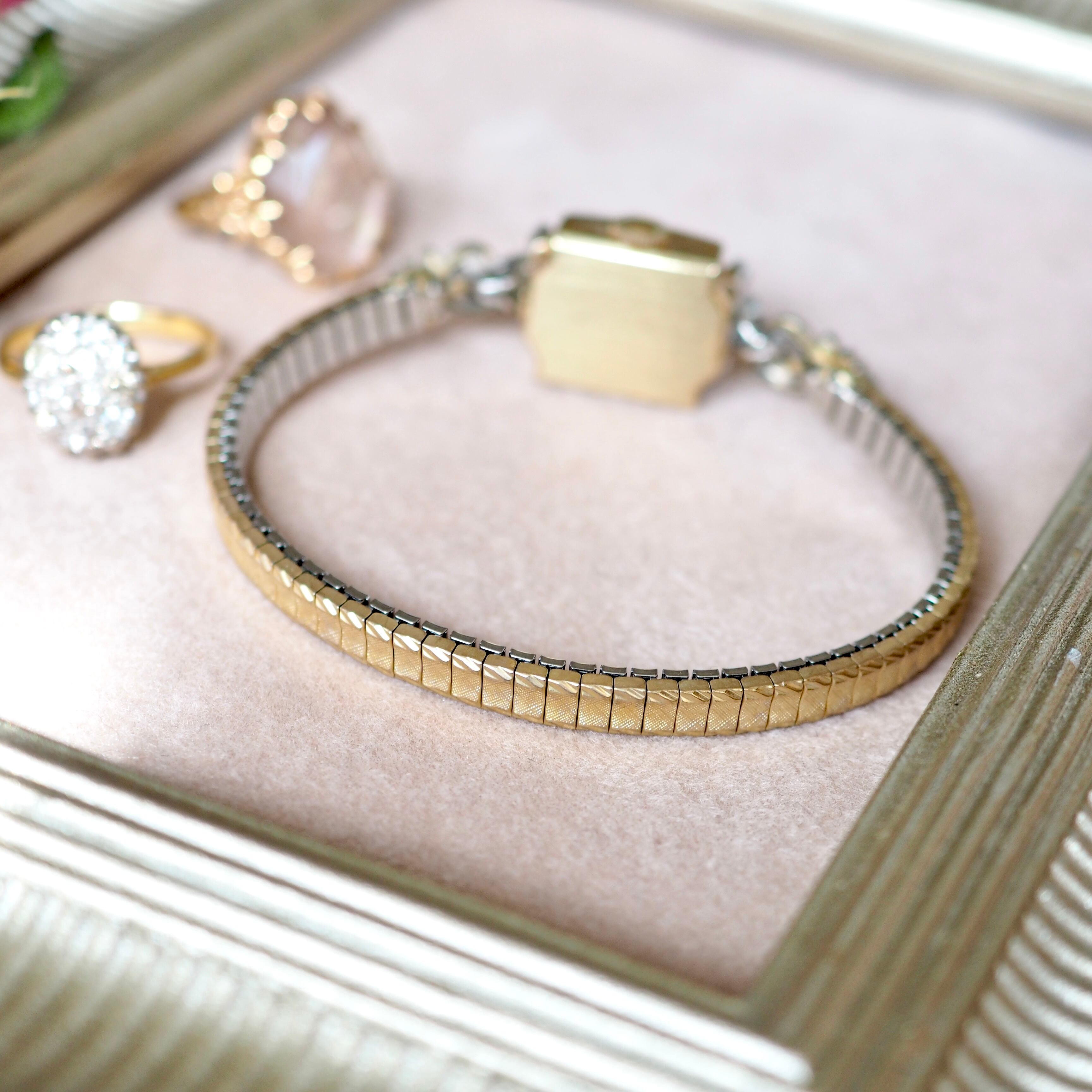 ブレスレットにもこだわり同じ年代に作られたデッドストック品をつけました。