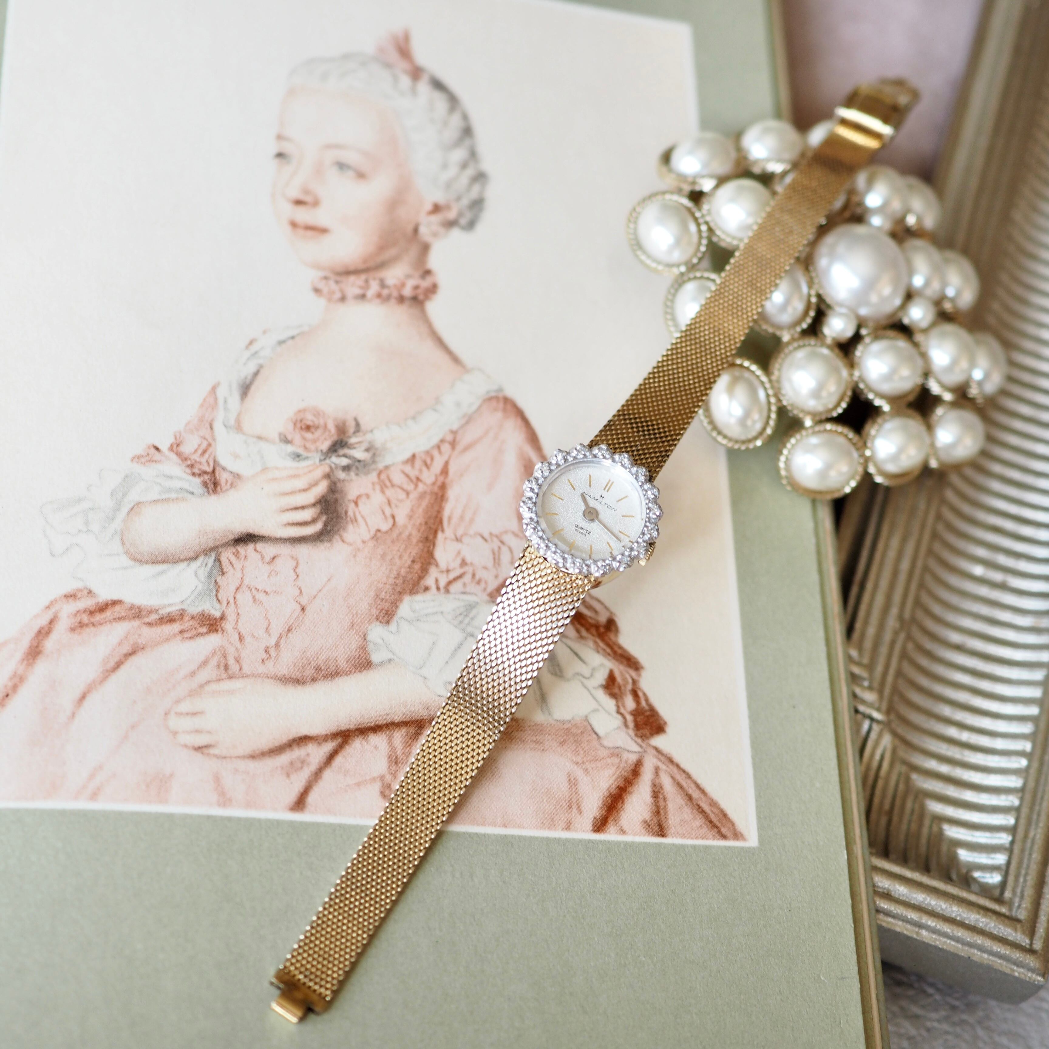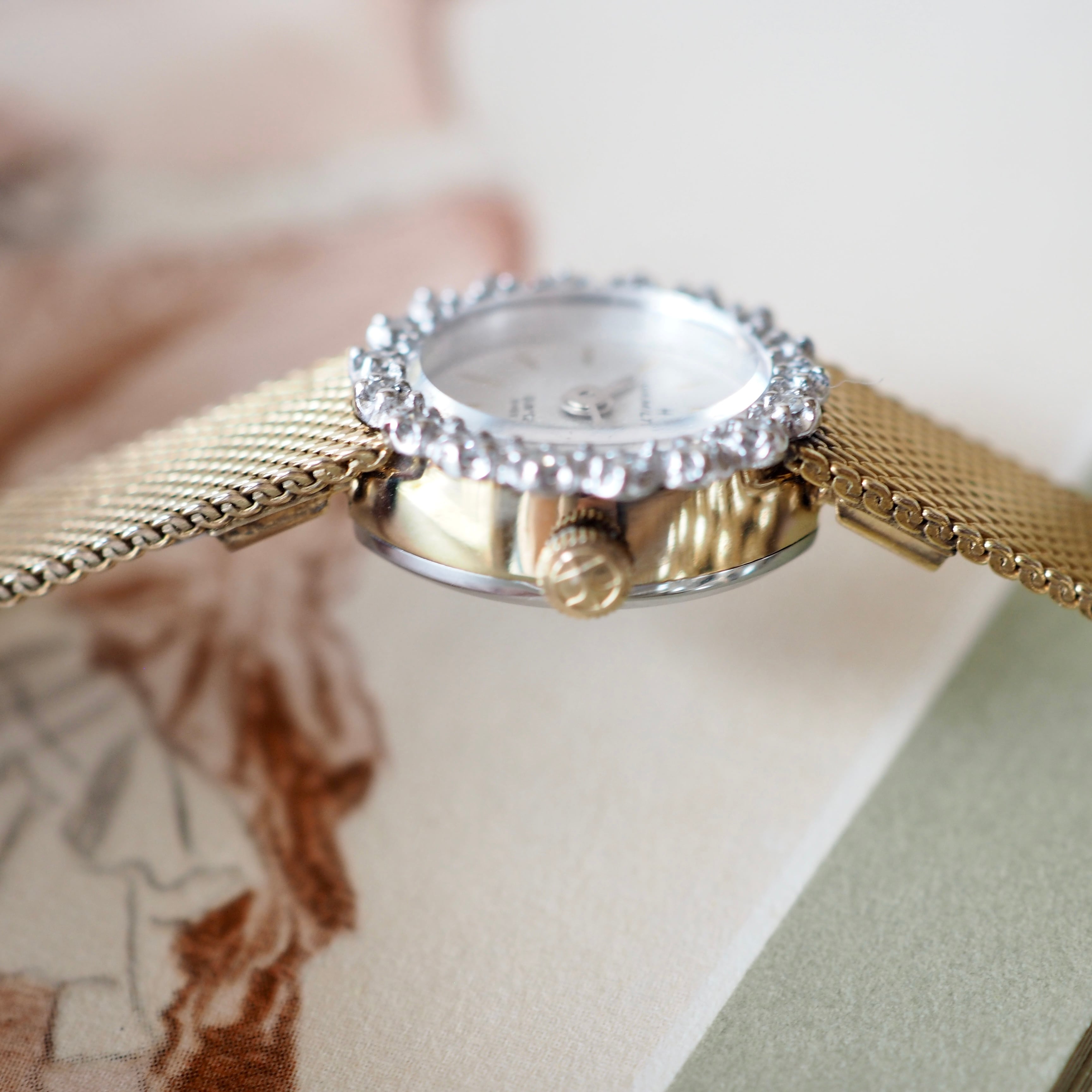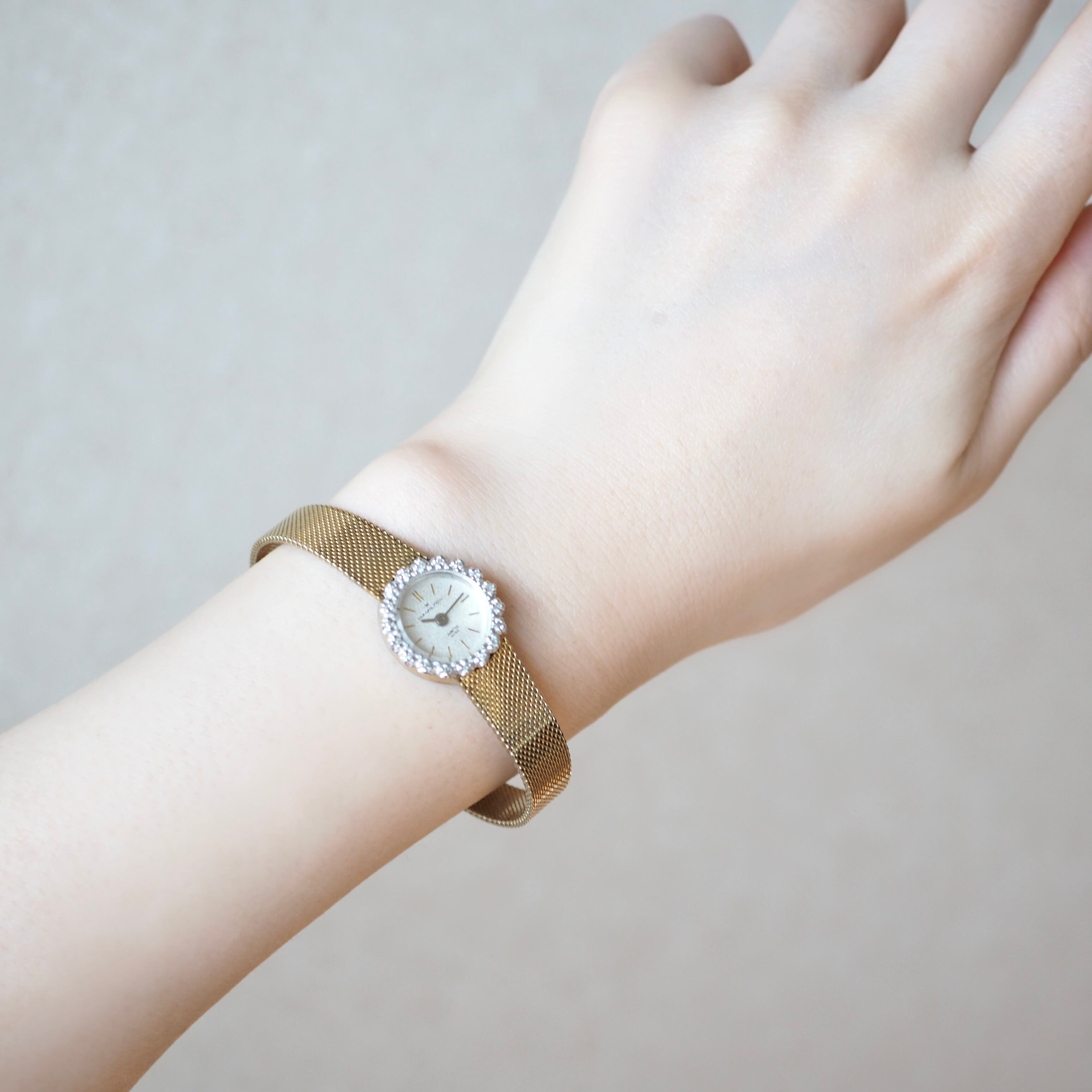 ラウンド型ケースにダイヤモンドベゼル のハミルトン・ヴィンテージカクテルウォッチです。
