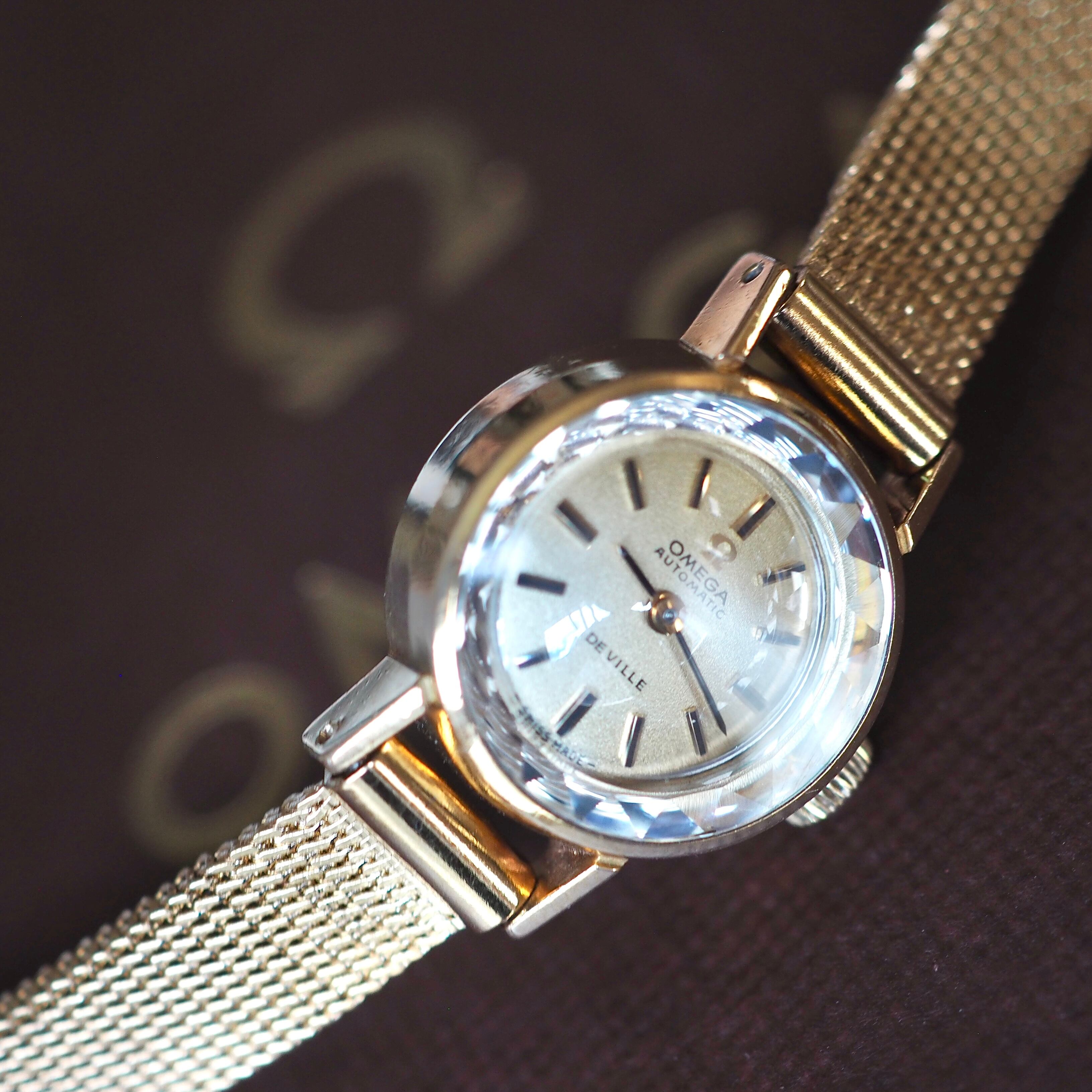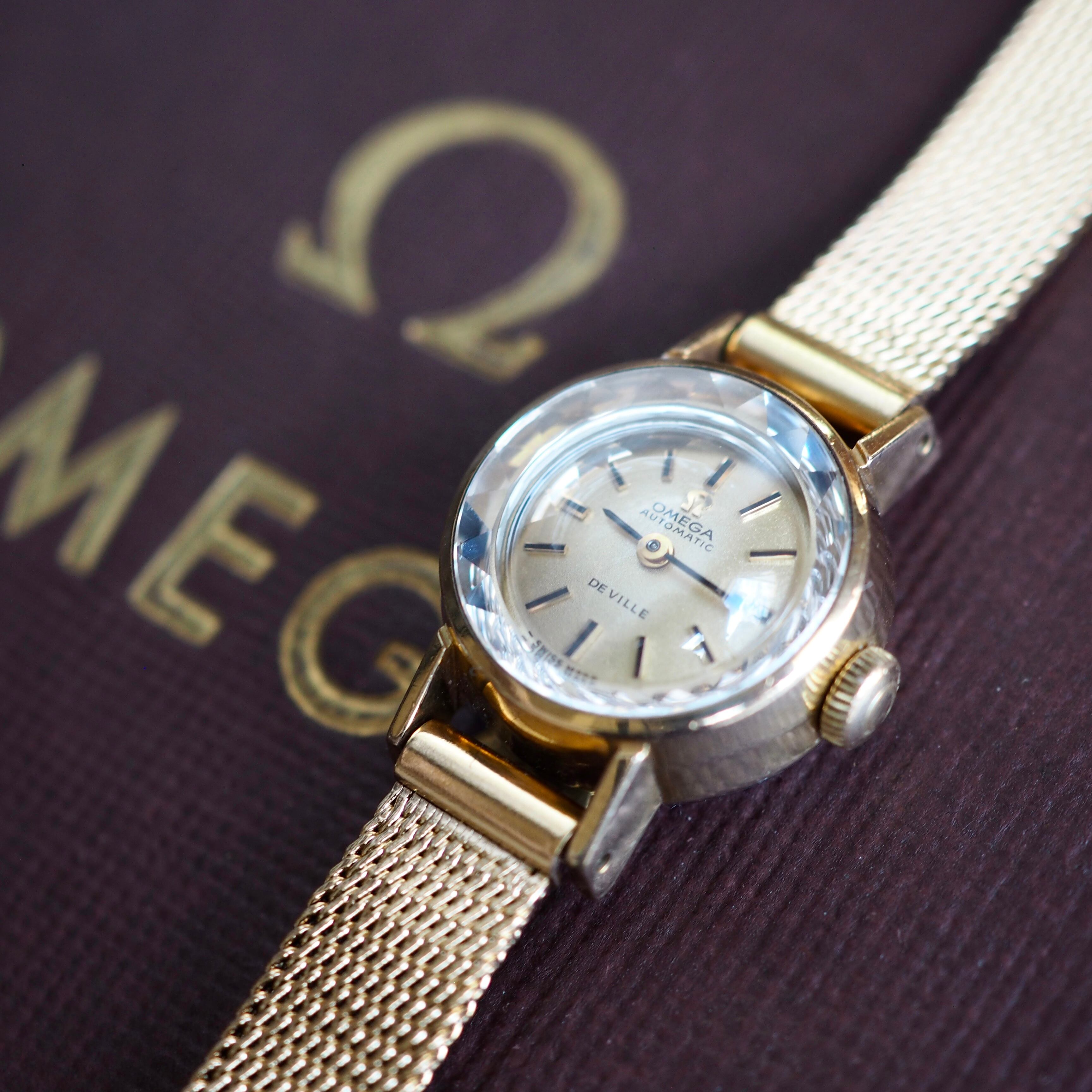 OH済 OMEGA オメガ deville 自動巻 サファイアカットガラス 新品ベルト2本 ドレスウォッチ アンティーク時計