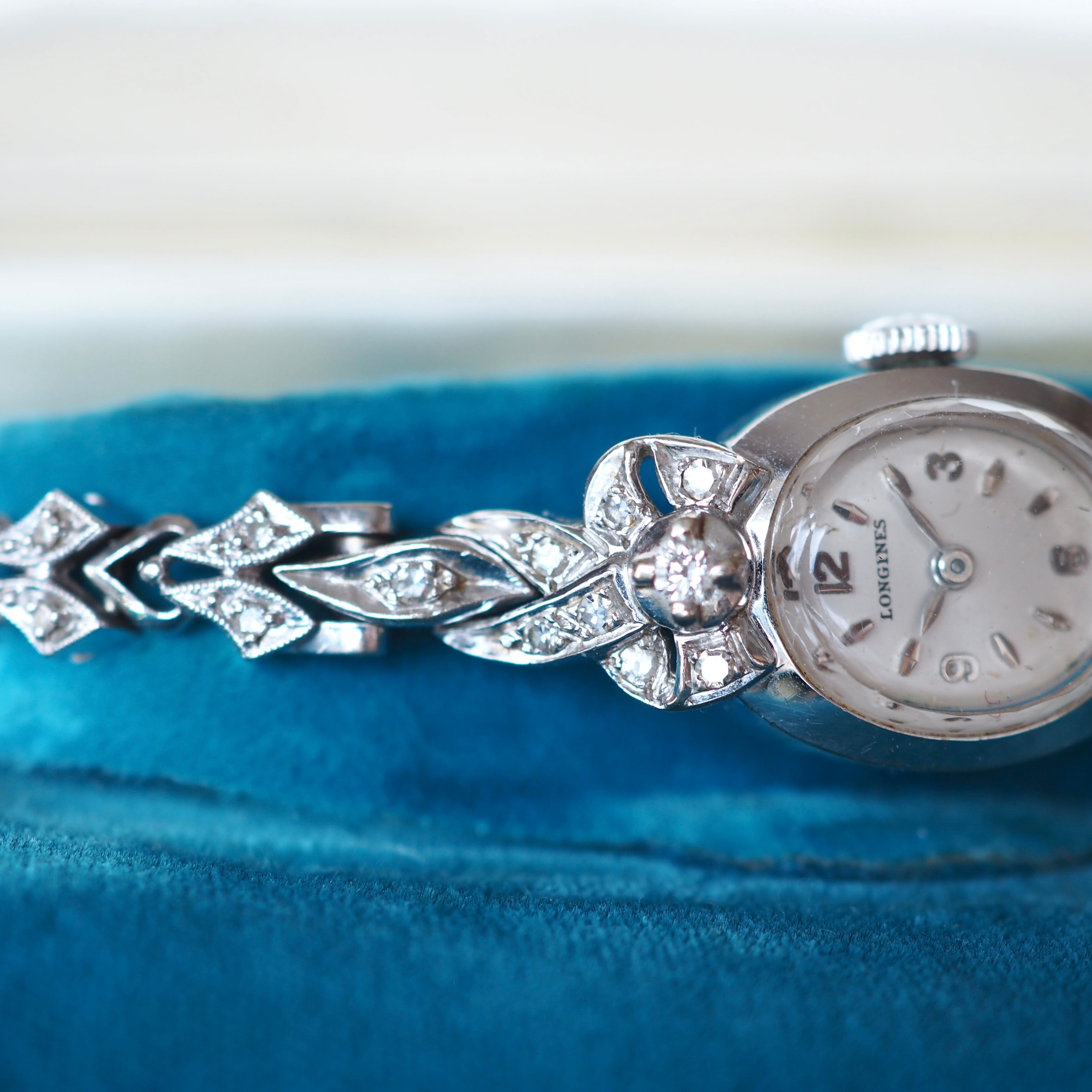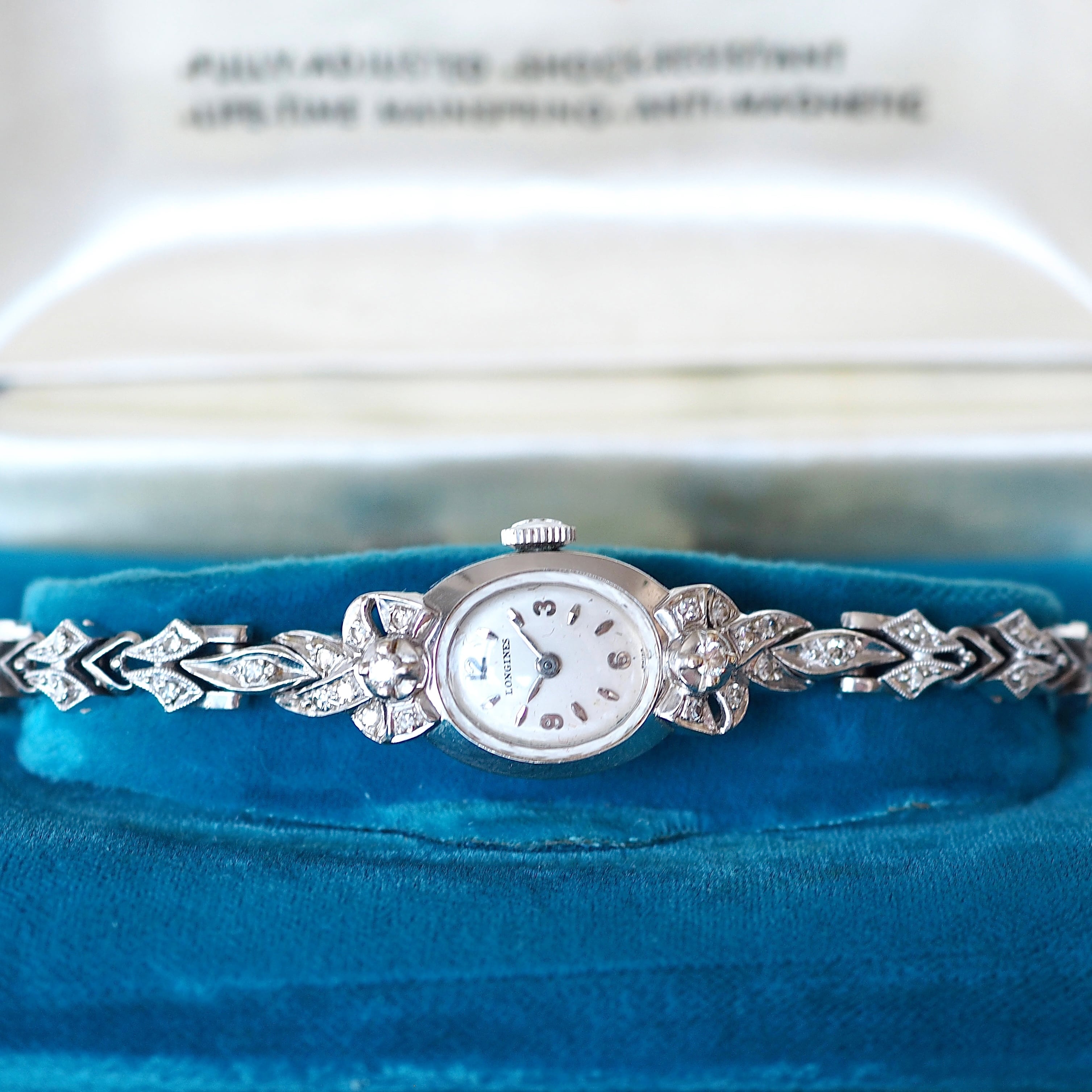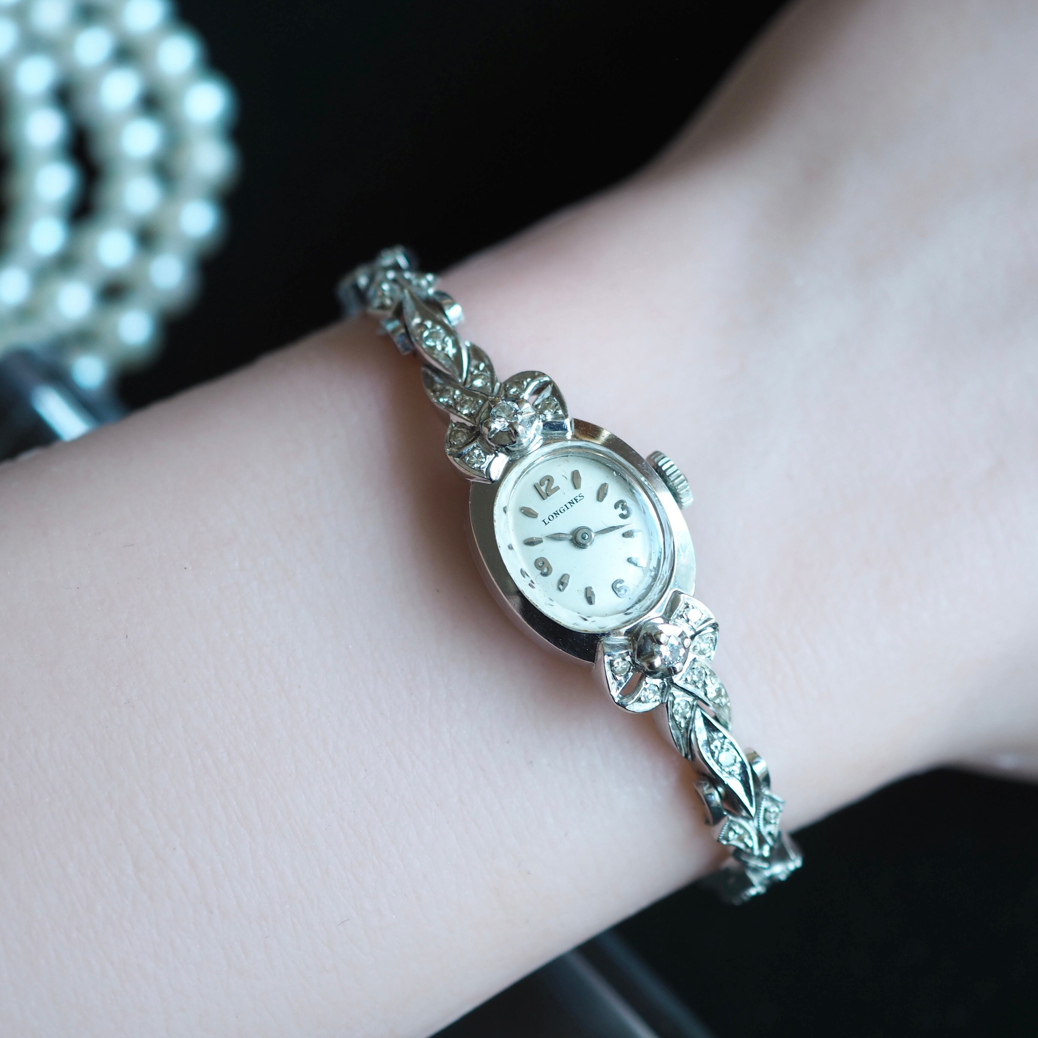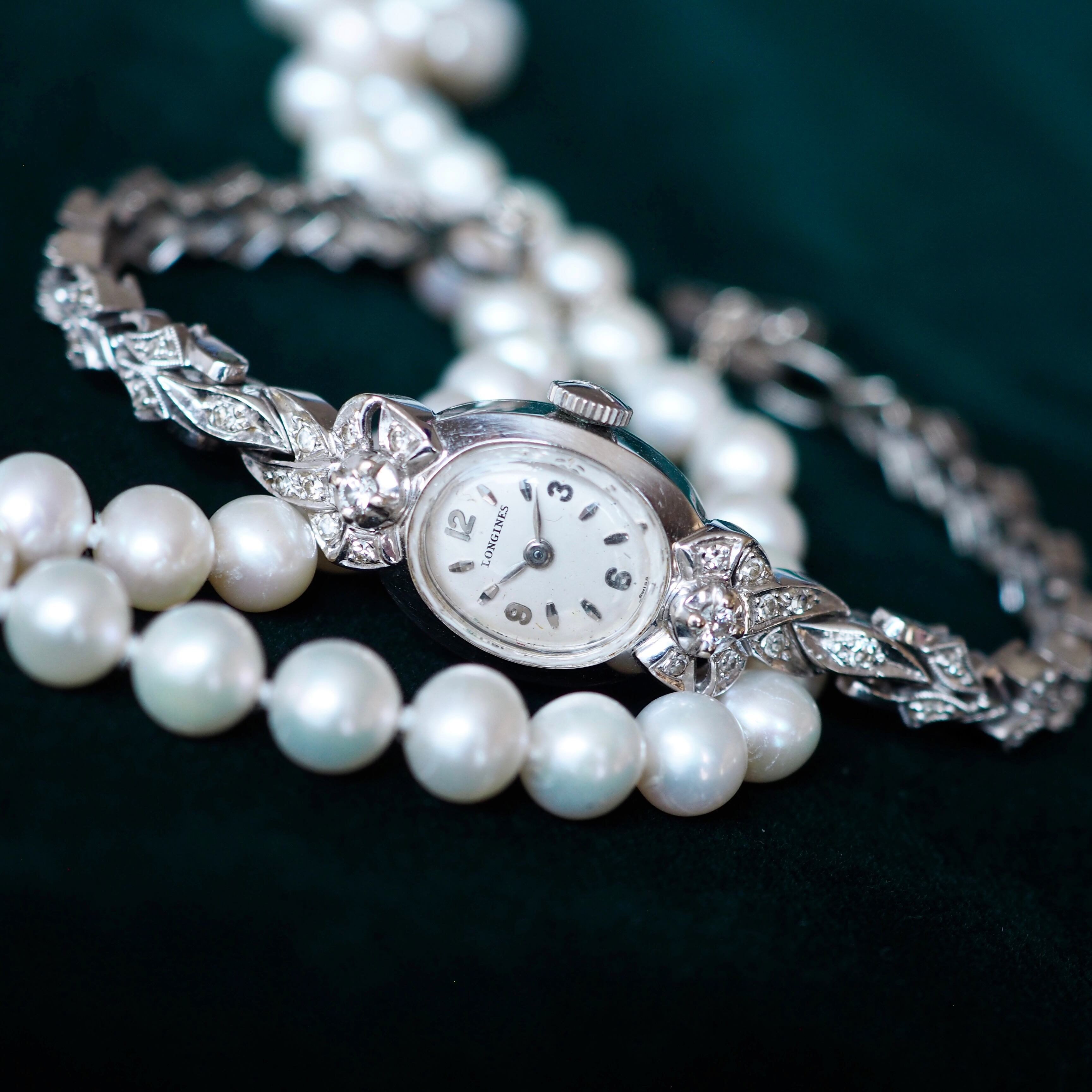 LONGINES ロンジン K14WG ダイヤモンド ジュエリーウォッチ アンティーク時計