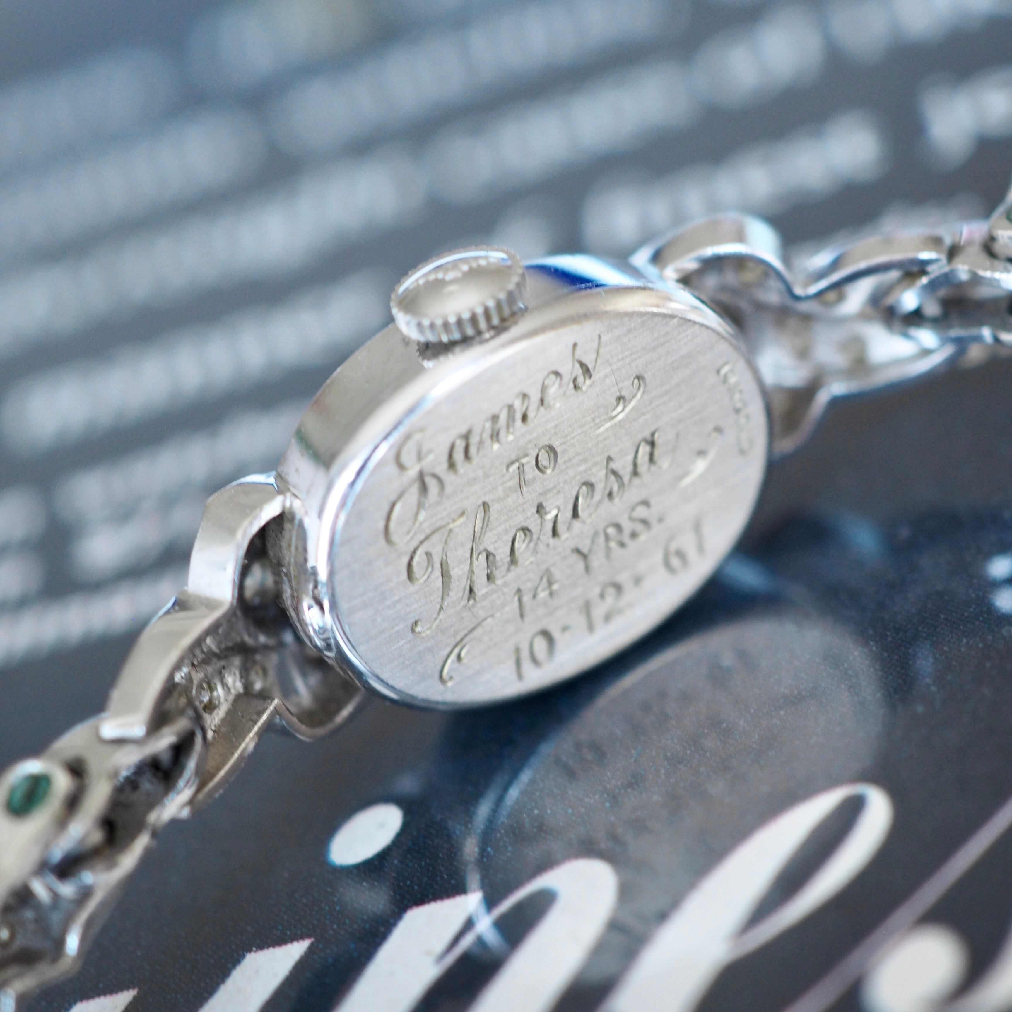 ケース裏には大切な方への贈り物と思われる刻印がほどこされております。