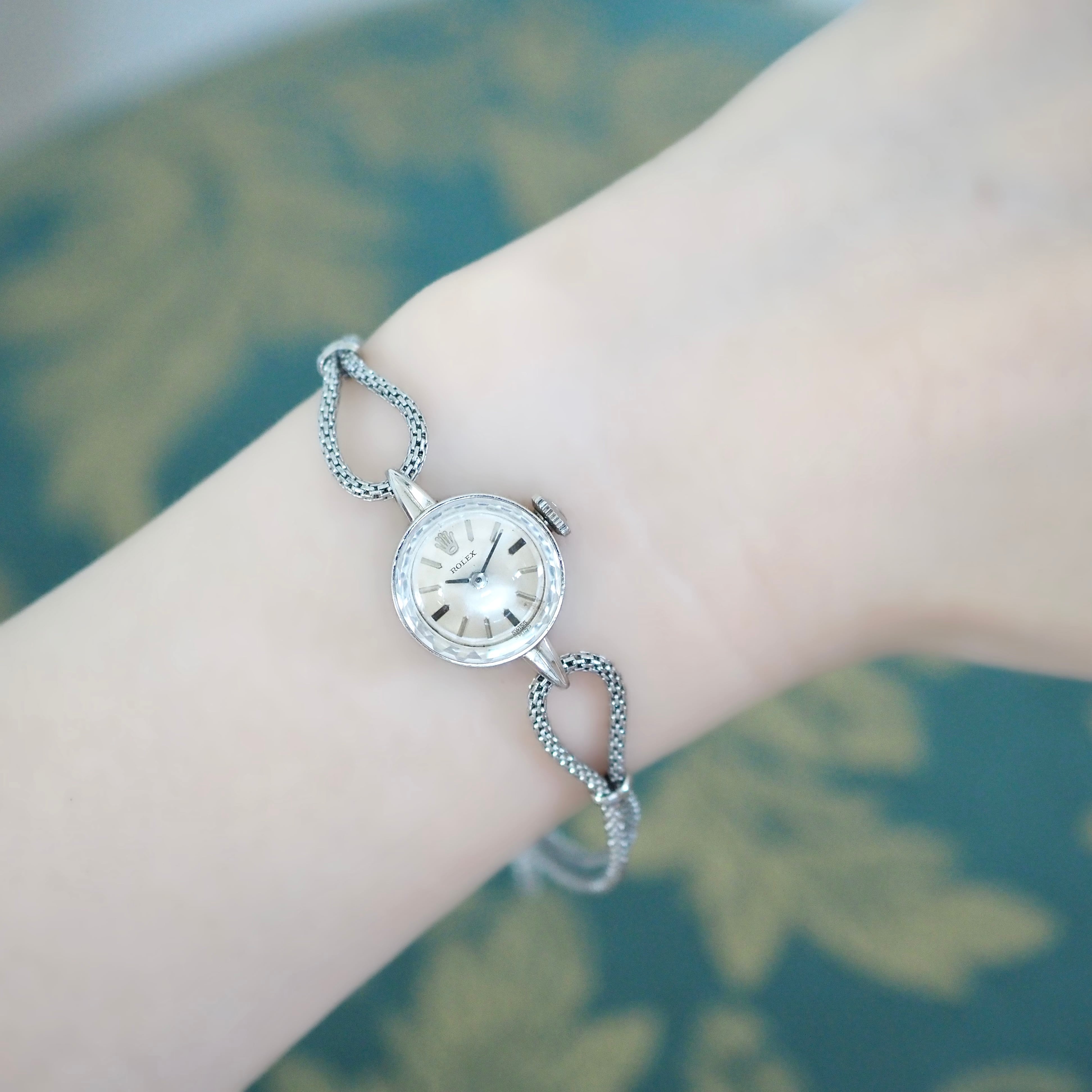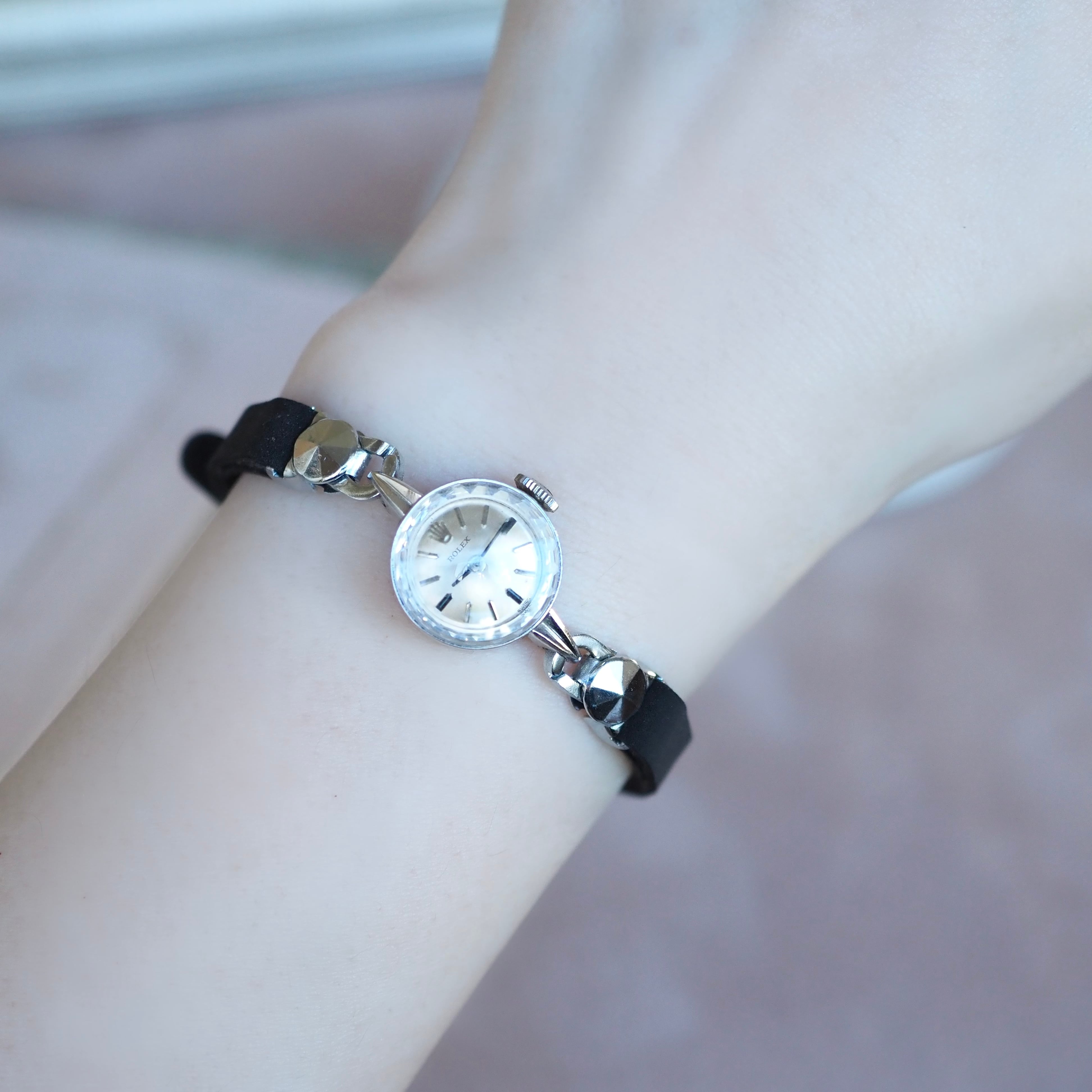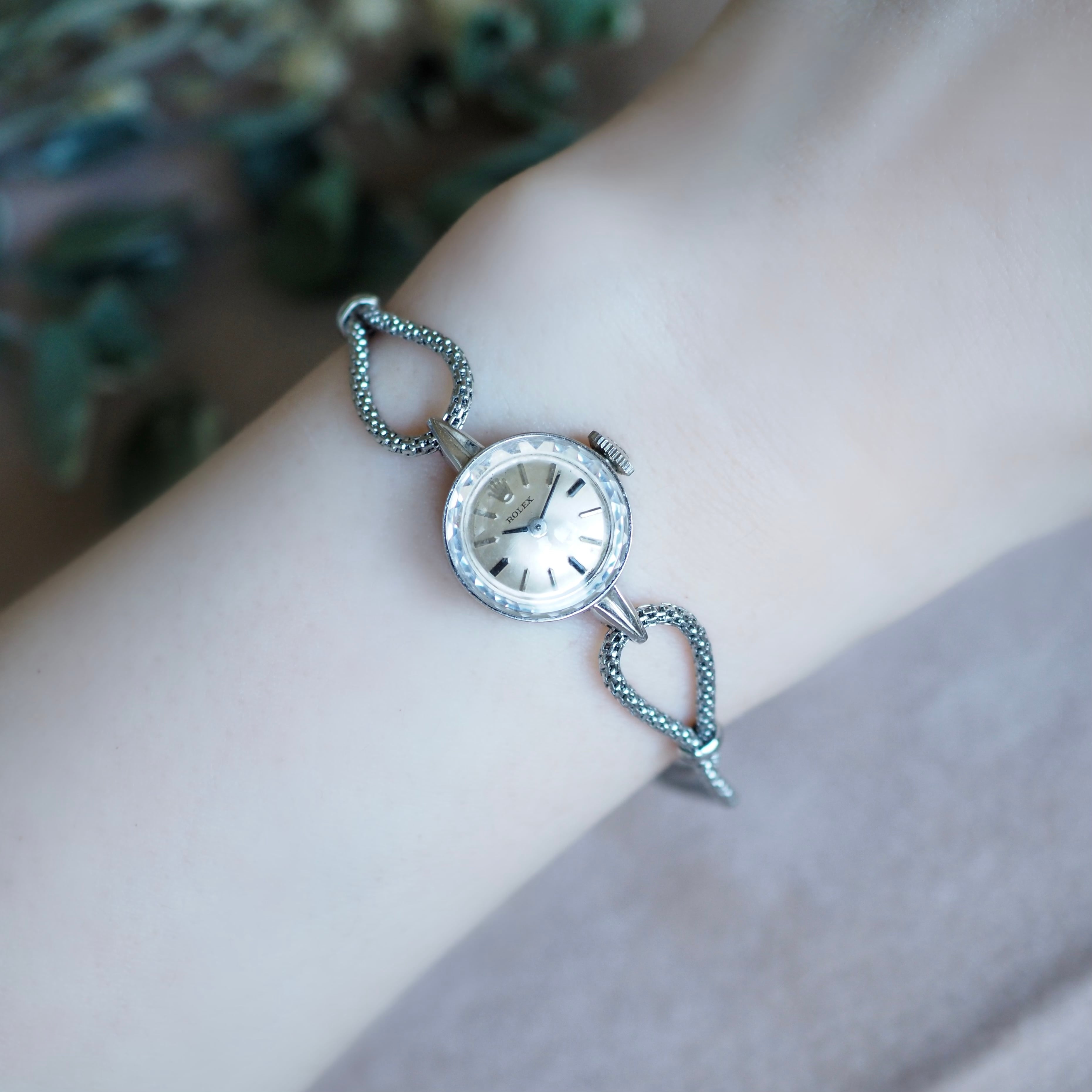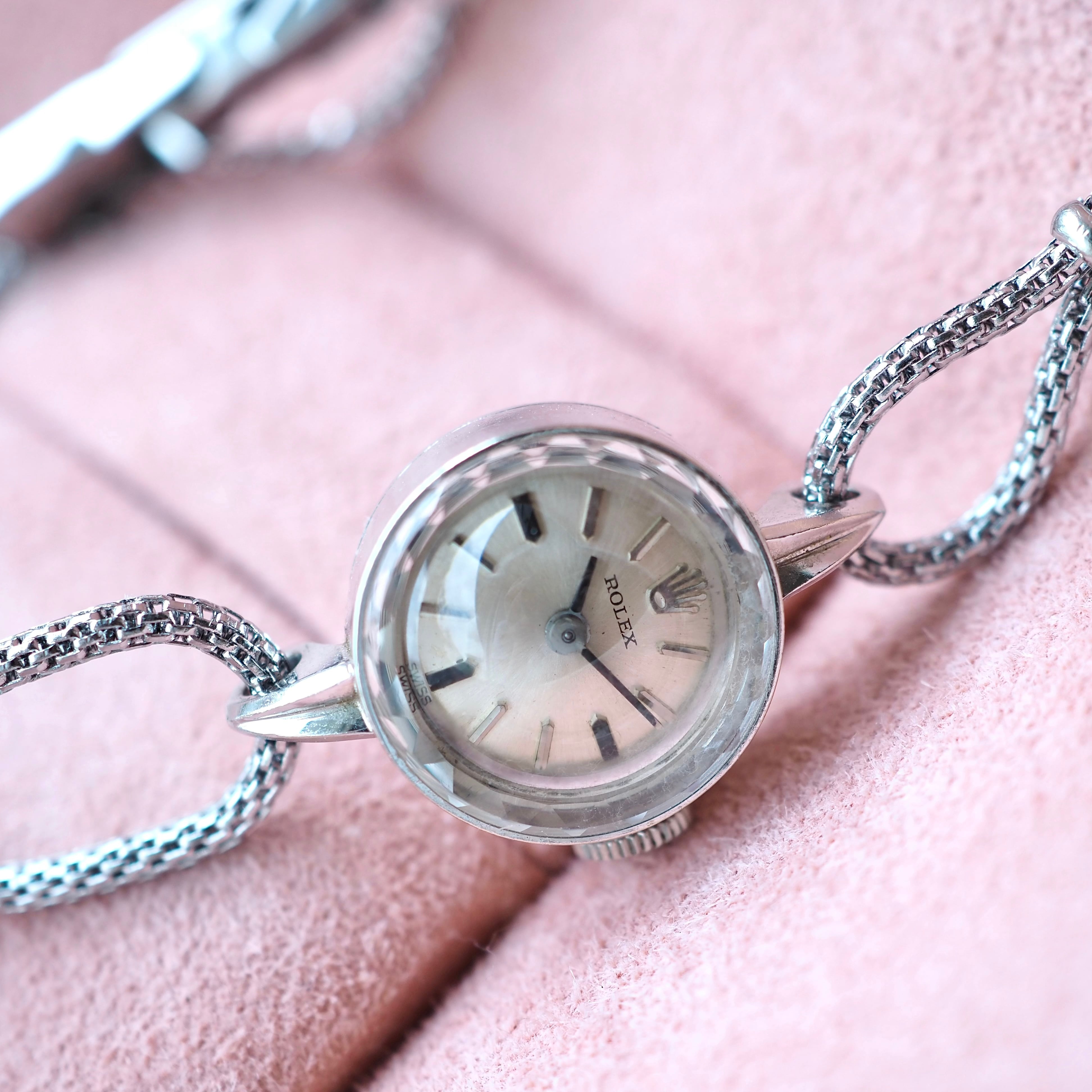 ROLEX K14WG 金無垢 カットガラス 2way カクテルウォッチ アンティーク時計