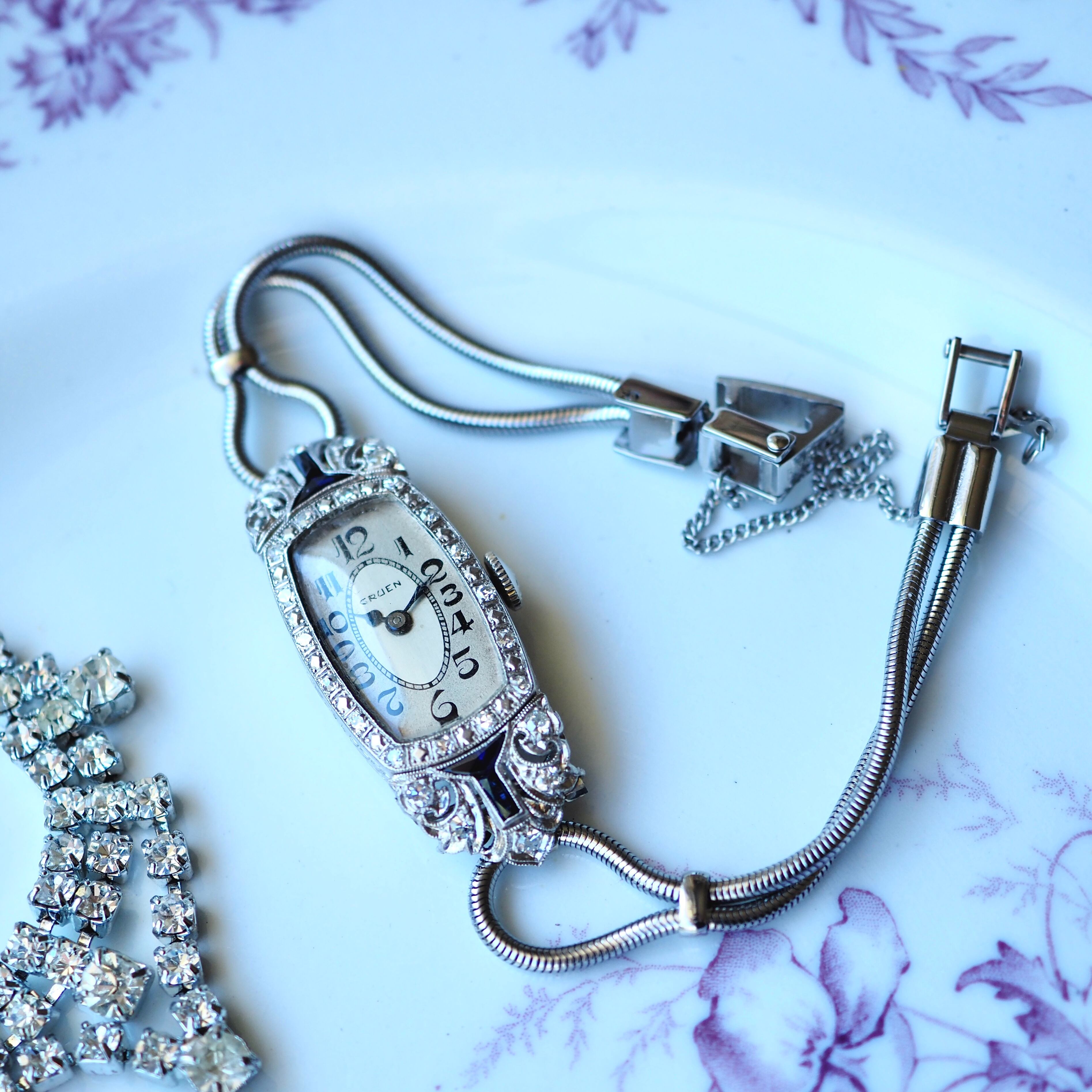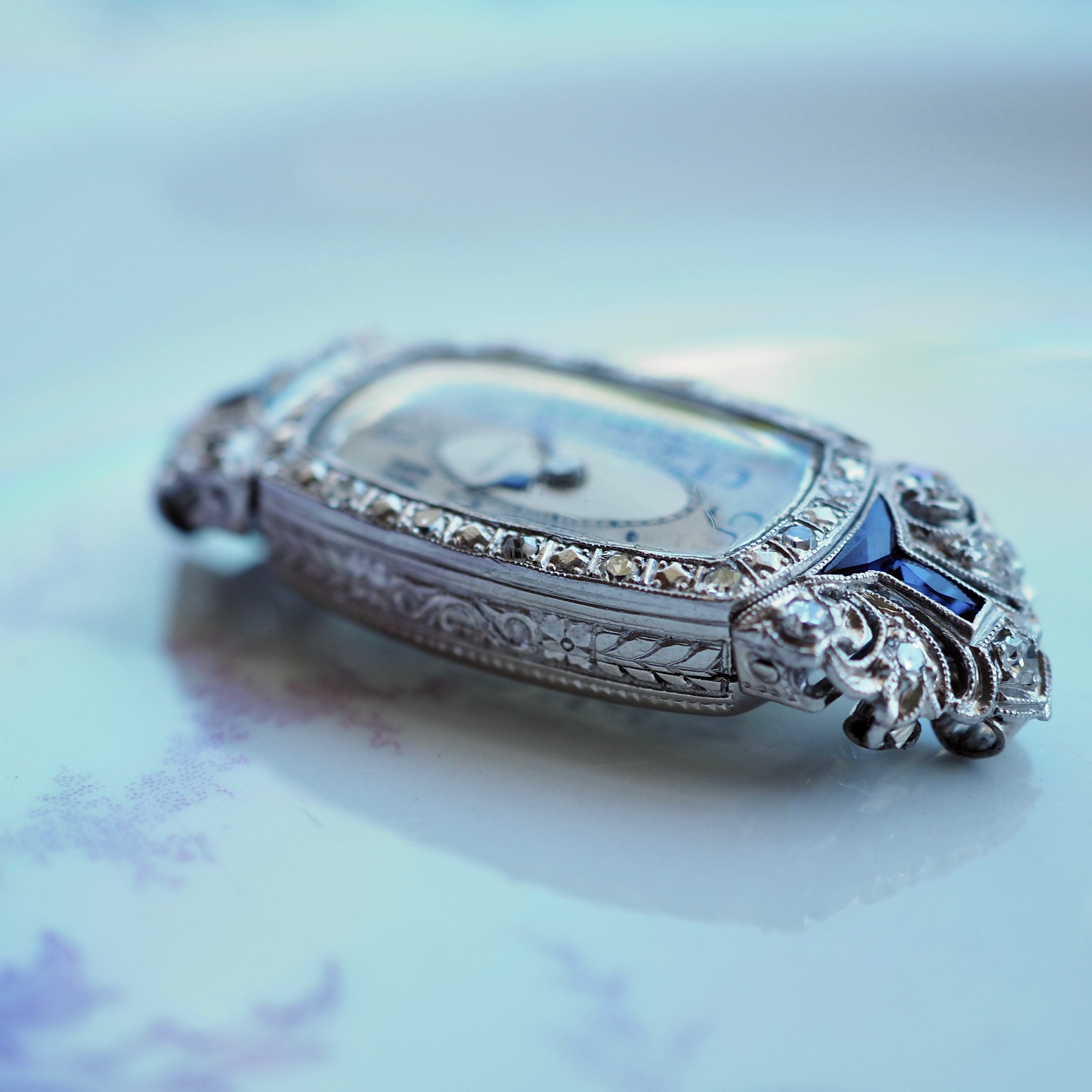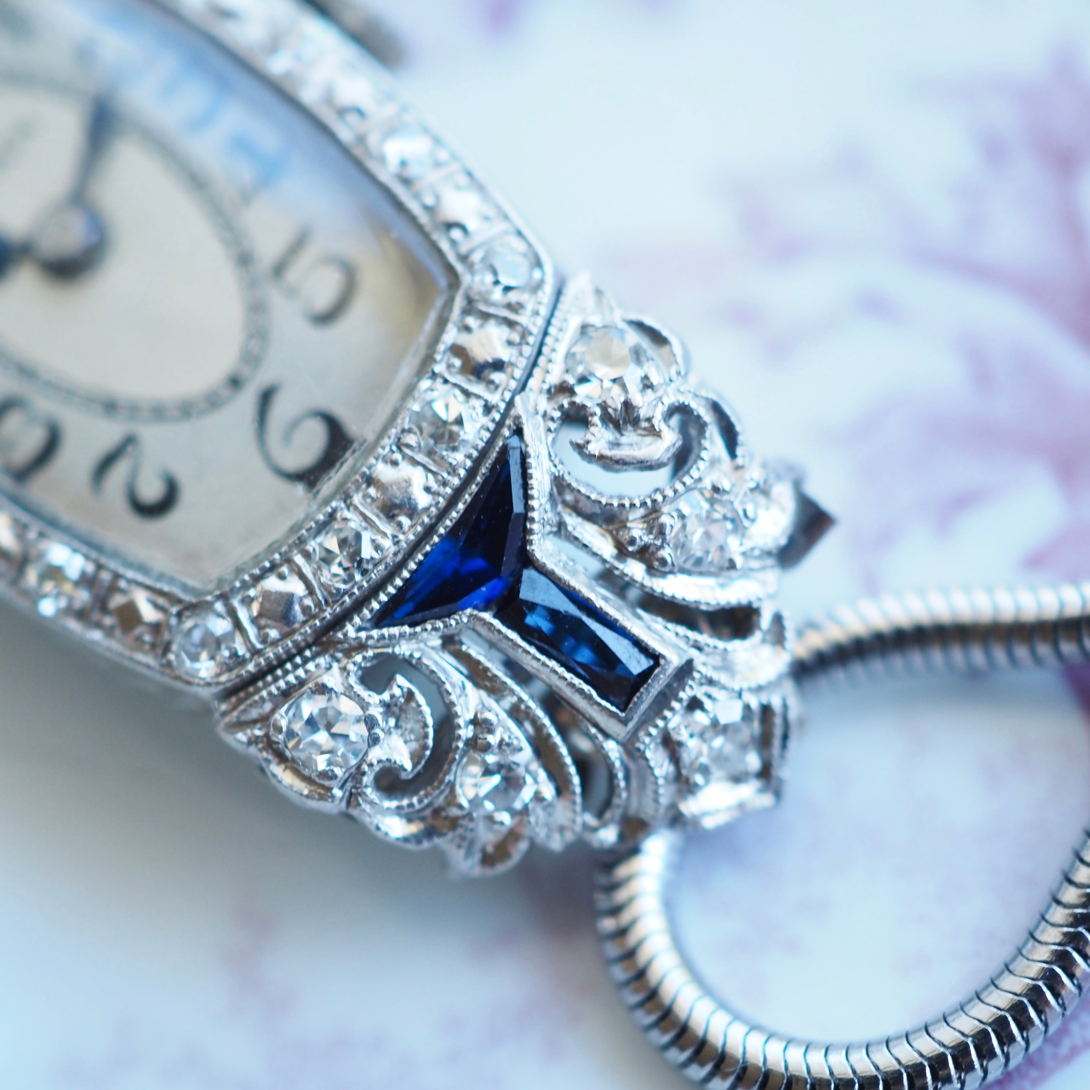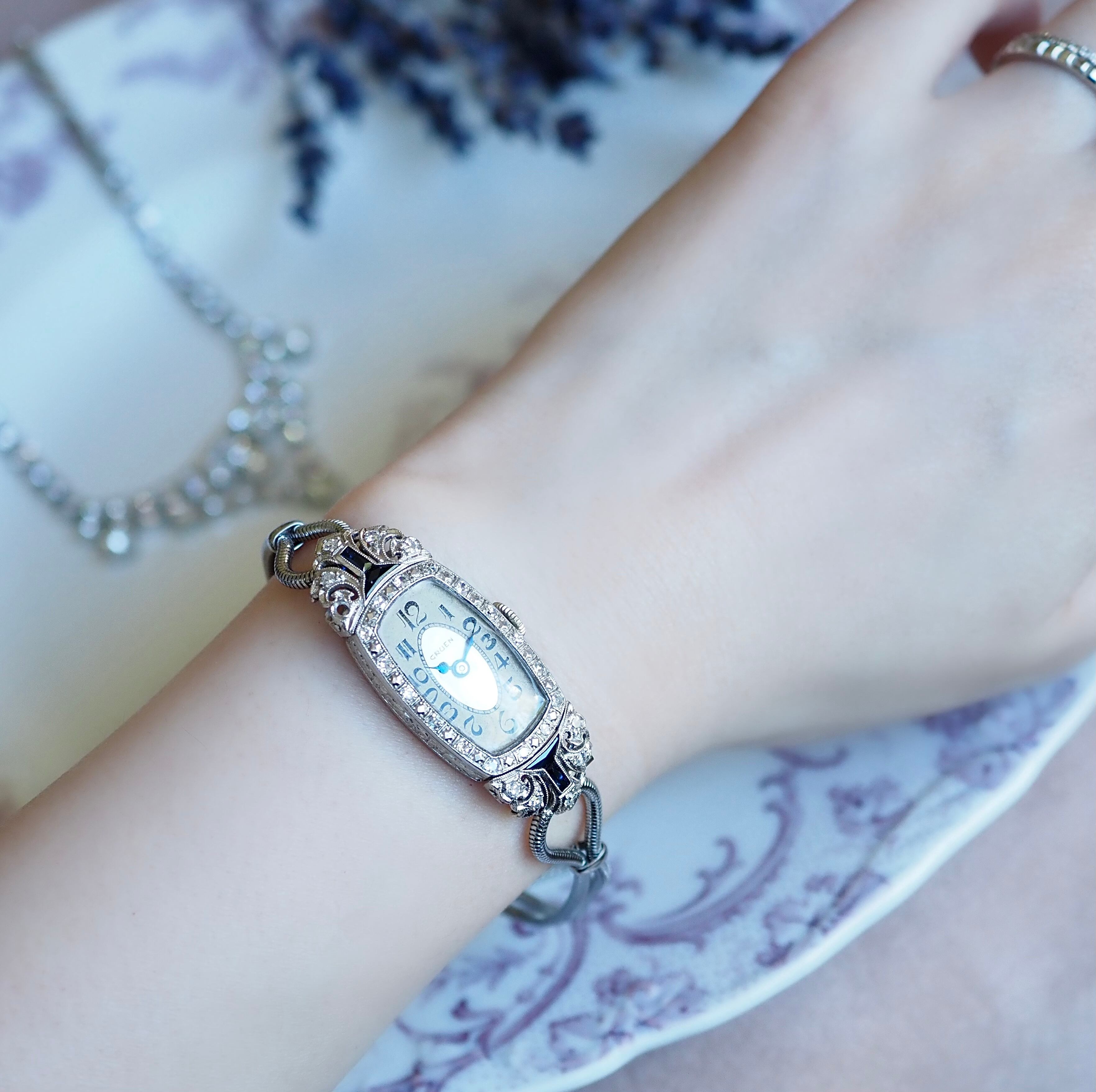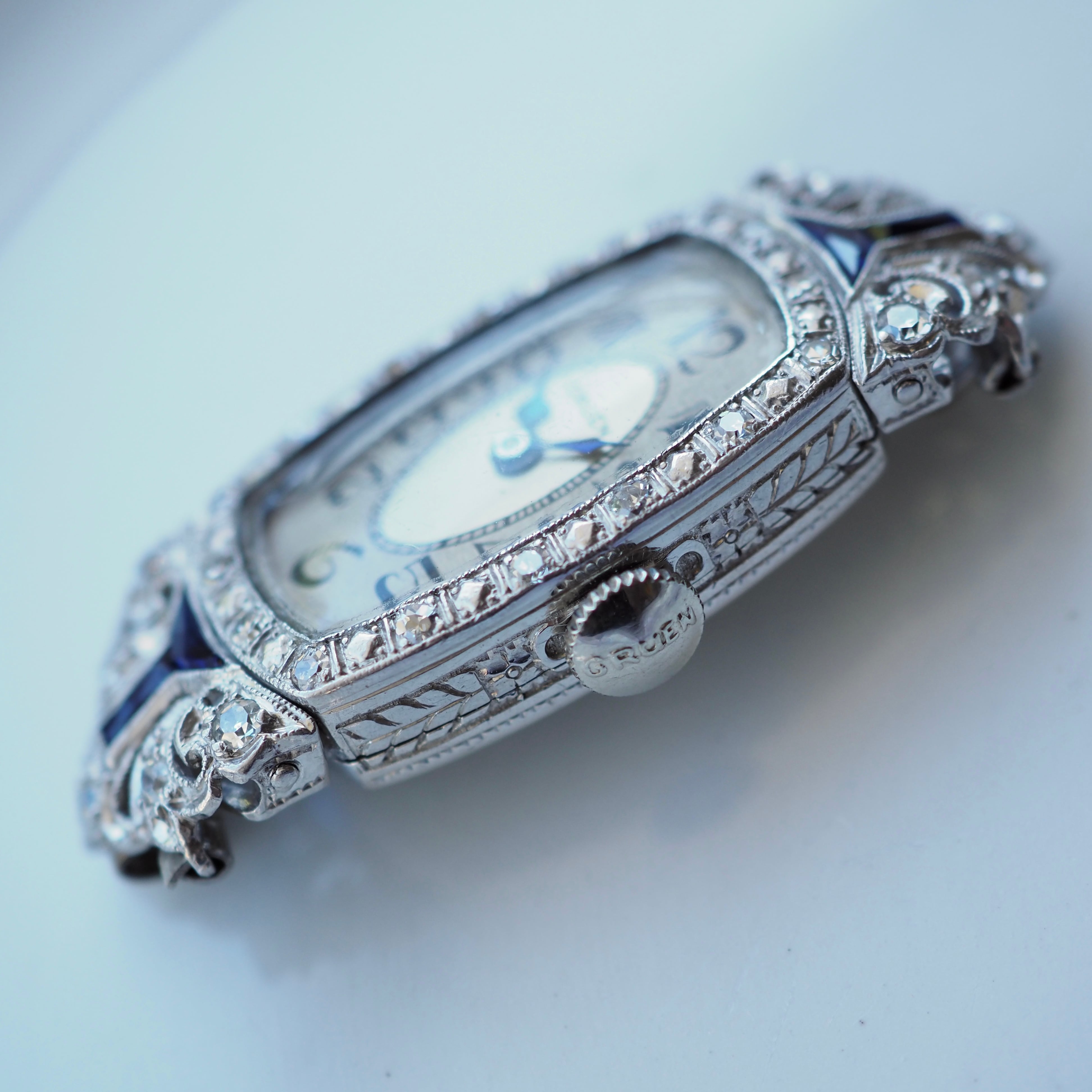 100年前 GRUEN グリュエン アール・デコ プラチナ ダイヤ&サファイア ジュエリーウォッチ