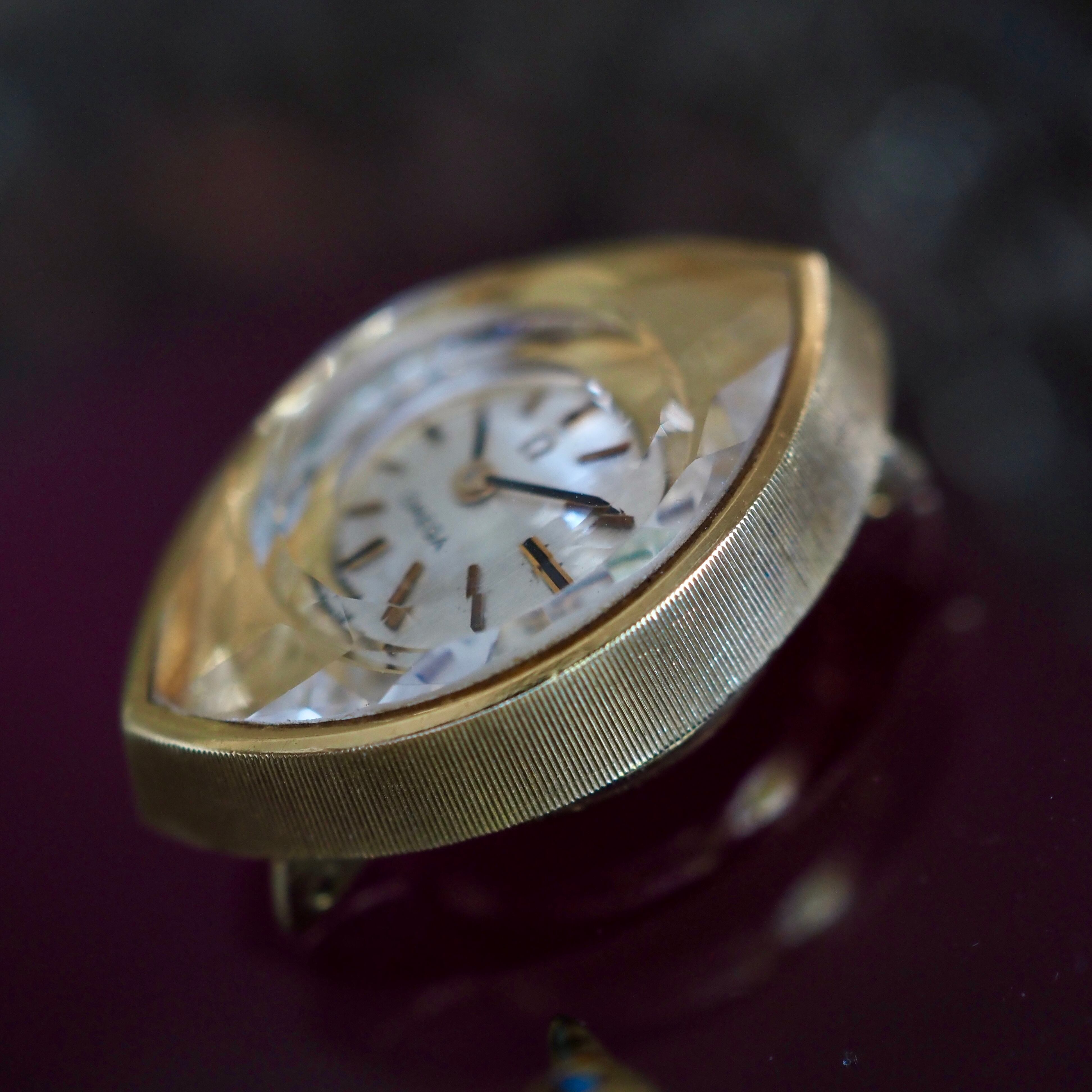 大変希少なオメガのジュエリーライクな18金無垢のカットガラスモデル。