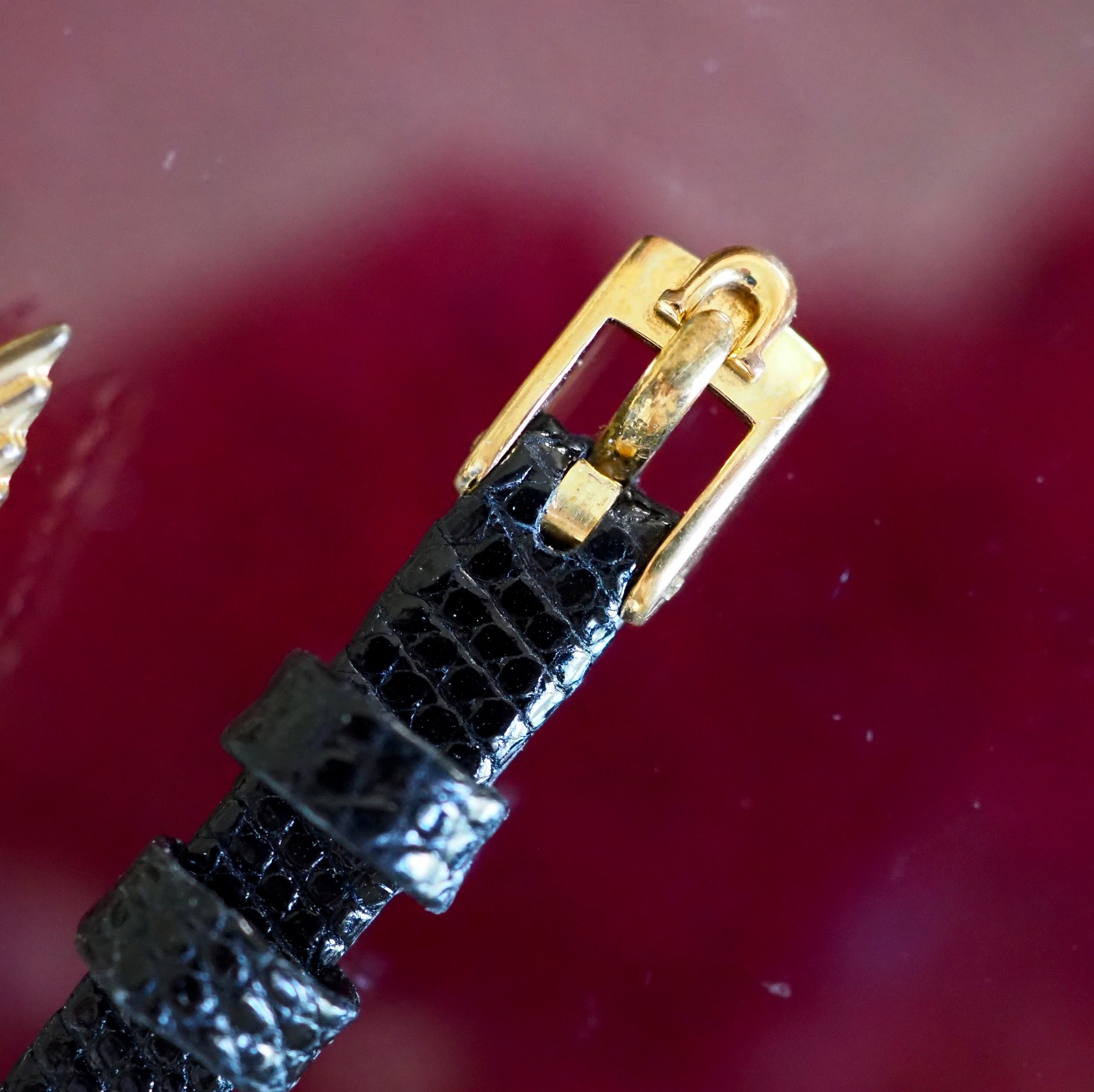 当時フォーマルで華やかな場においては"時間を見る道具"としての時計にみえないように、竜頭の見えないケースの裏側へ配置し、シンメトリーなデザインにすることで時計でありながらジュエリー感を高め、その役割を果たしました。