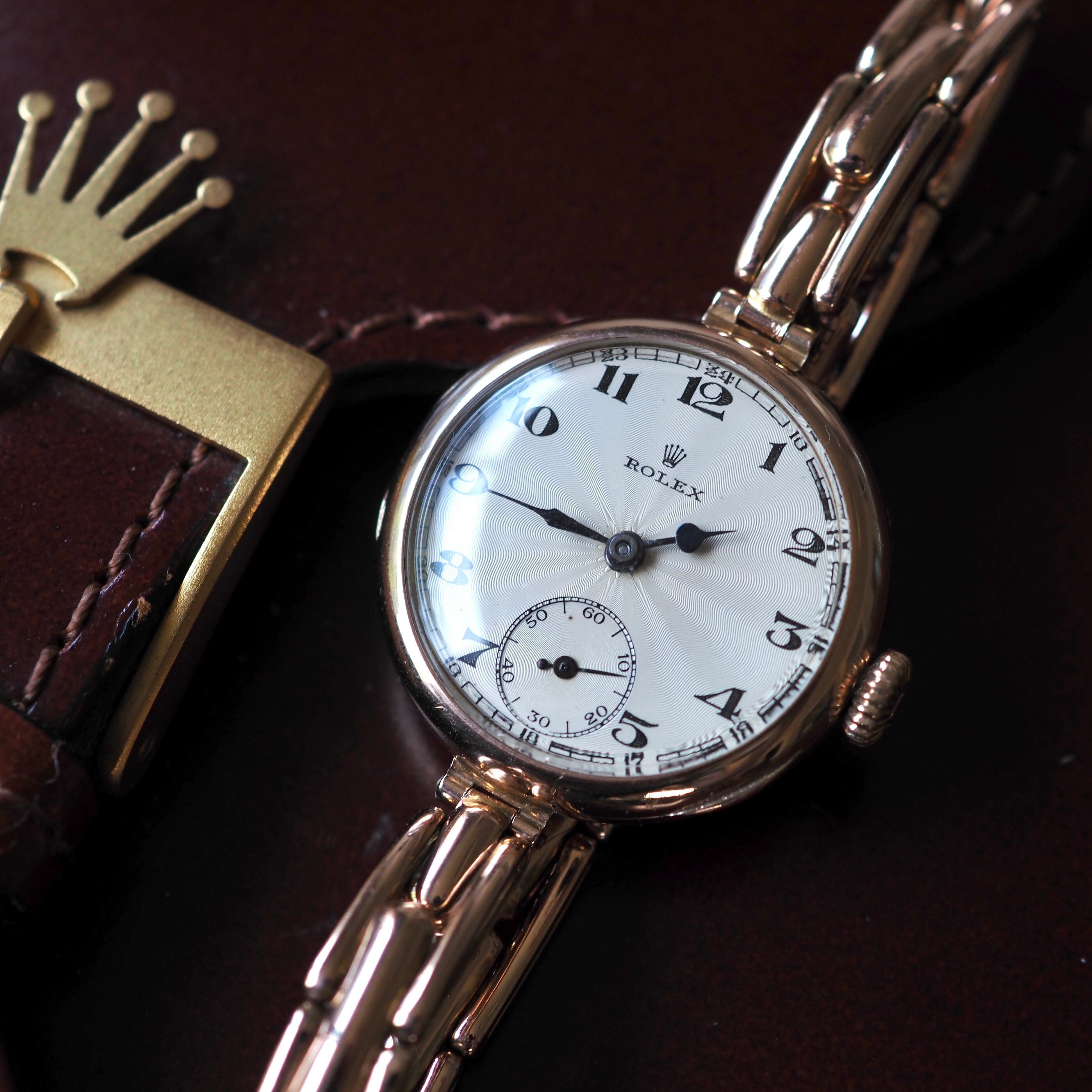 ROLEX ロレックス 9金無垢 スモセコ付 ギョーシェ文字盤 アンティーク時計