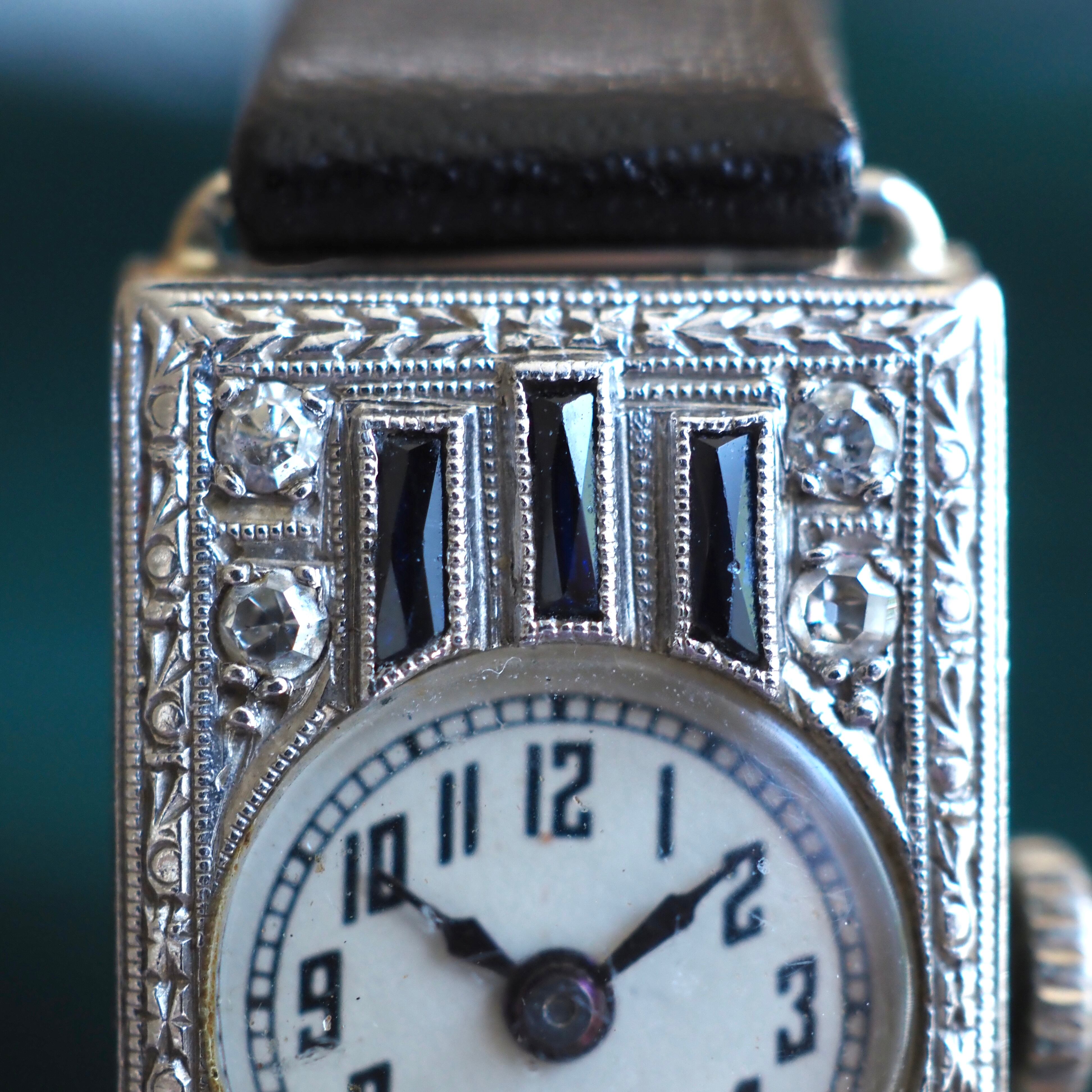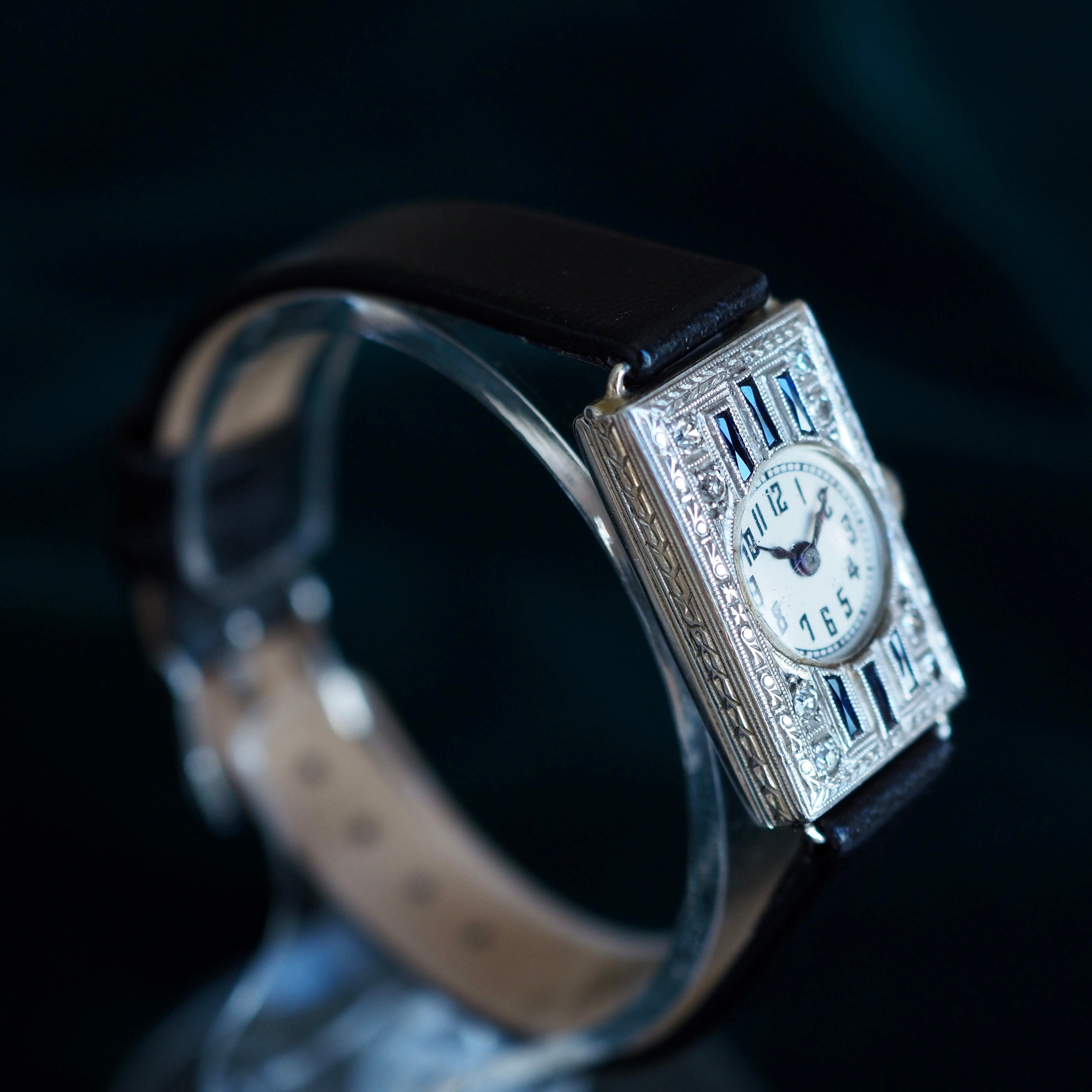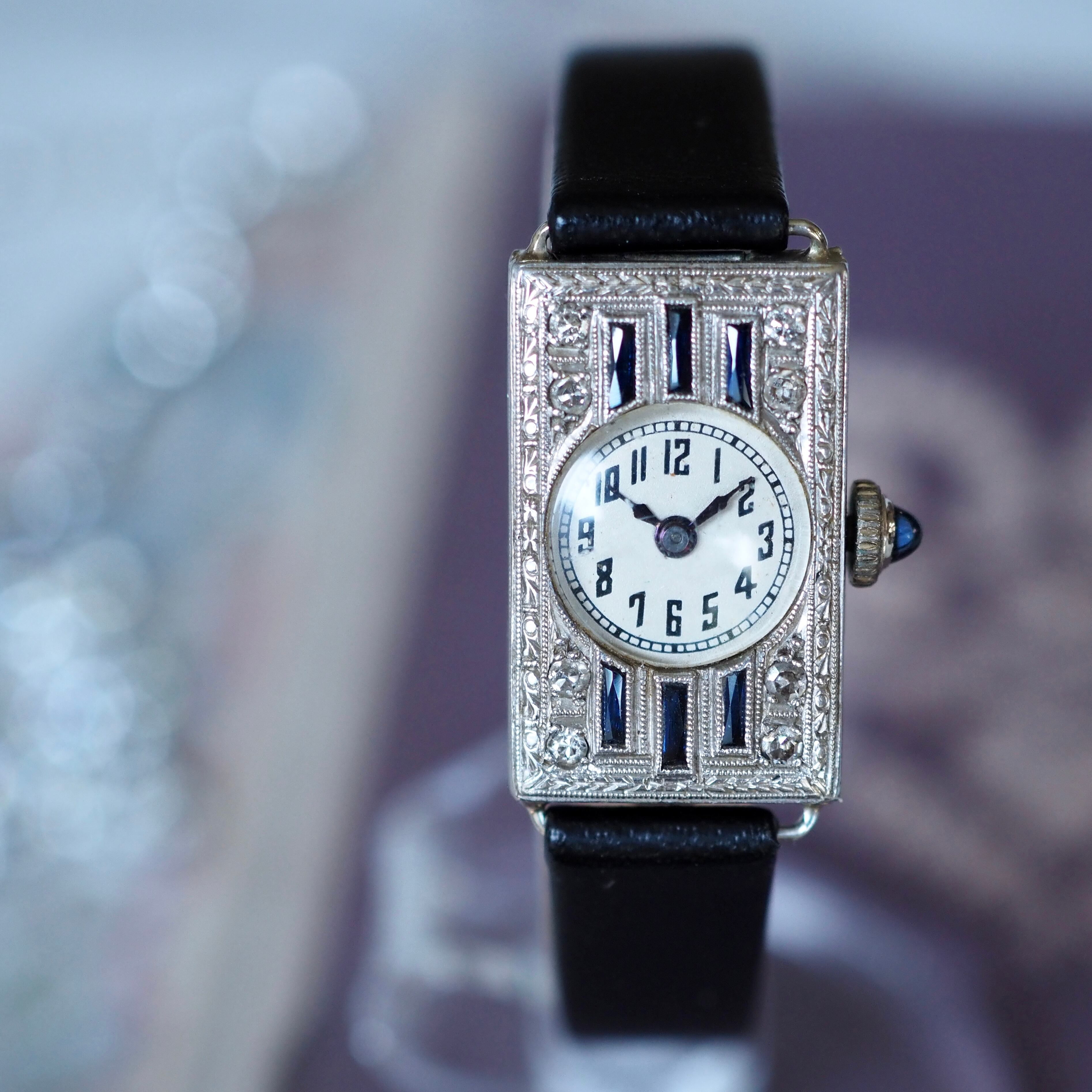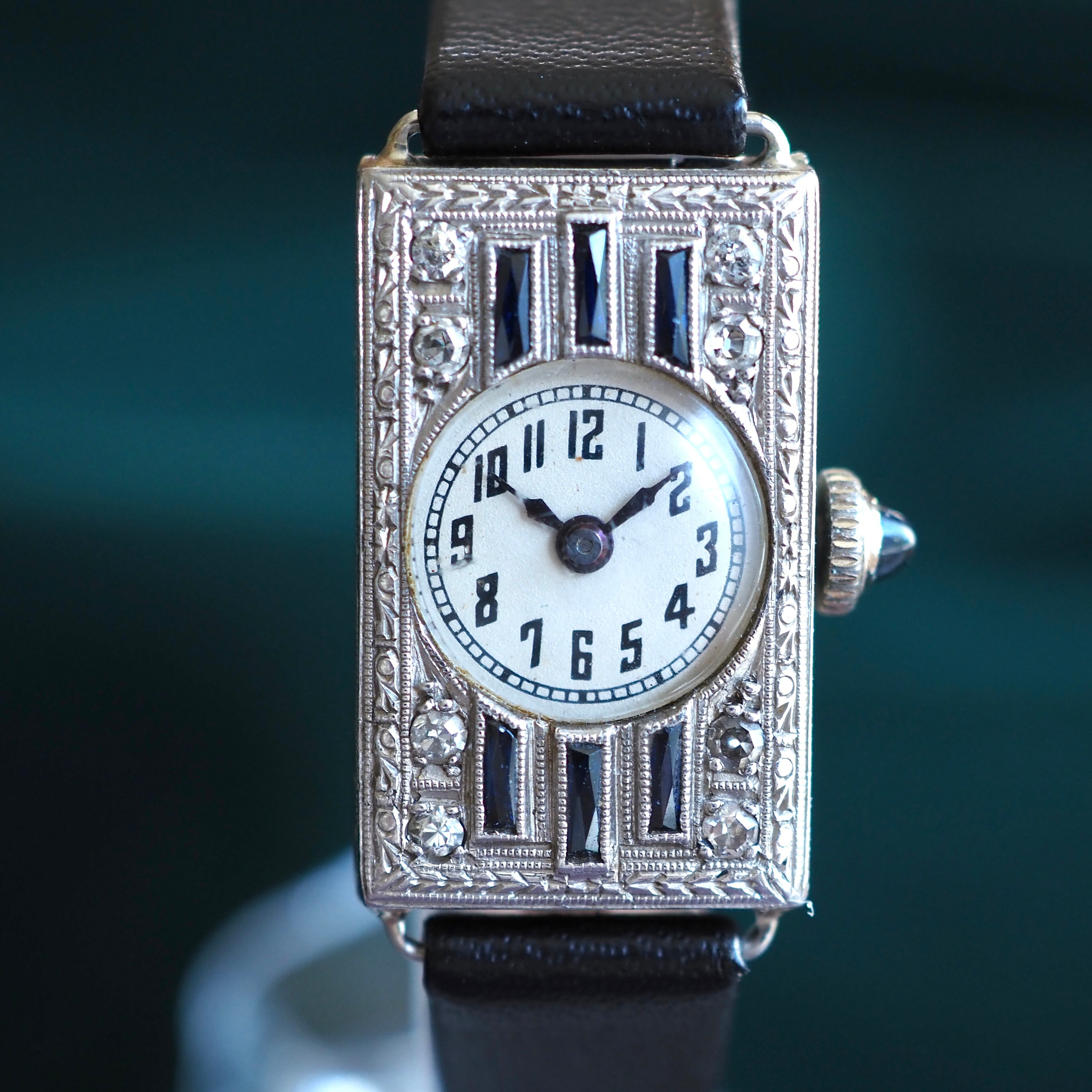 Abra Watch Co.製 アール・デコ K18WG ダイヤ&サファイア ジュエリーウォッチ アンティーク時計