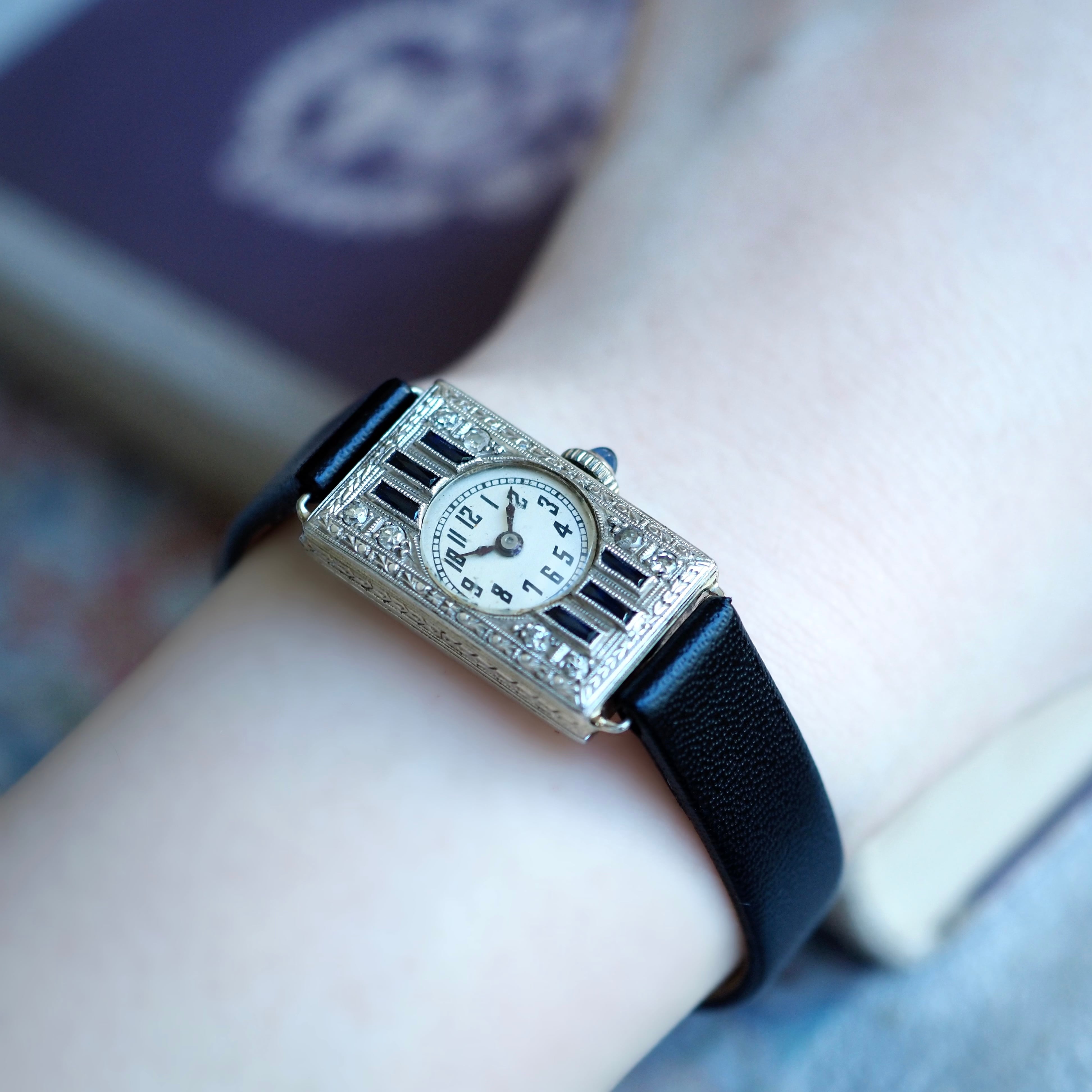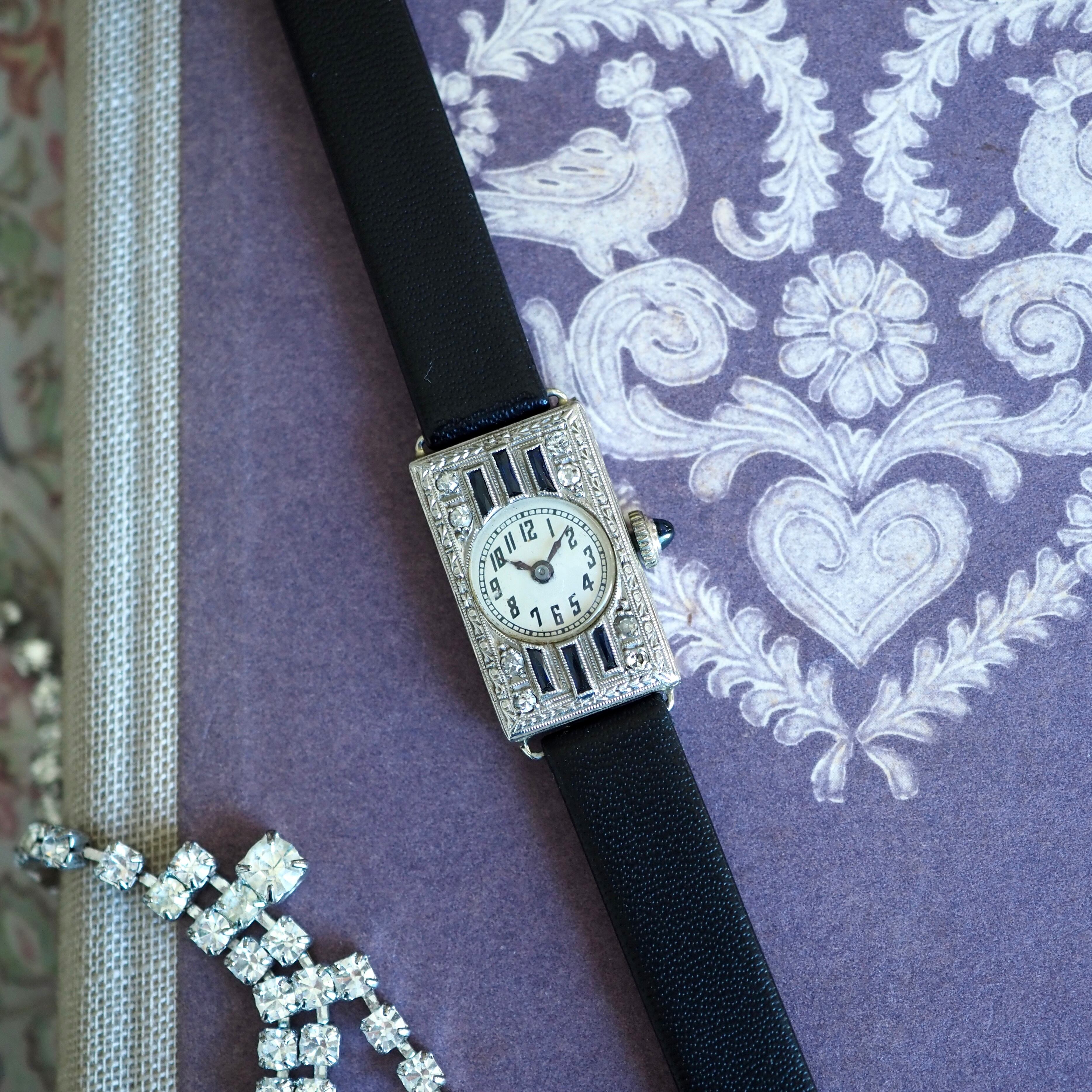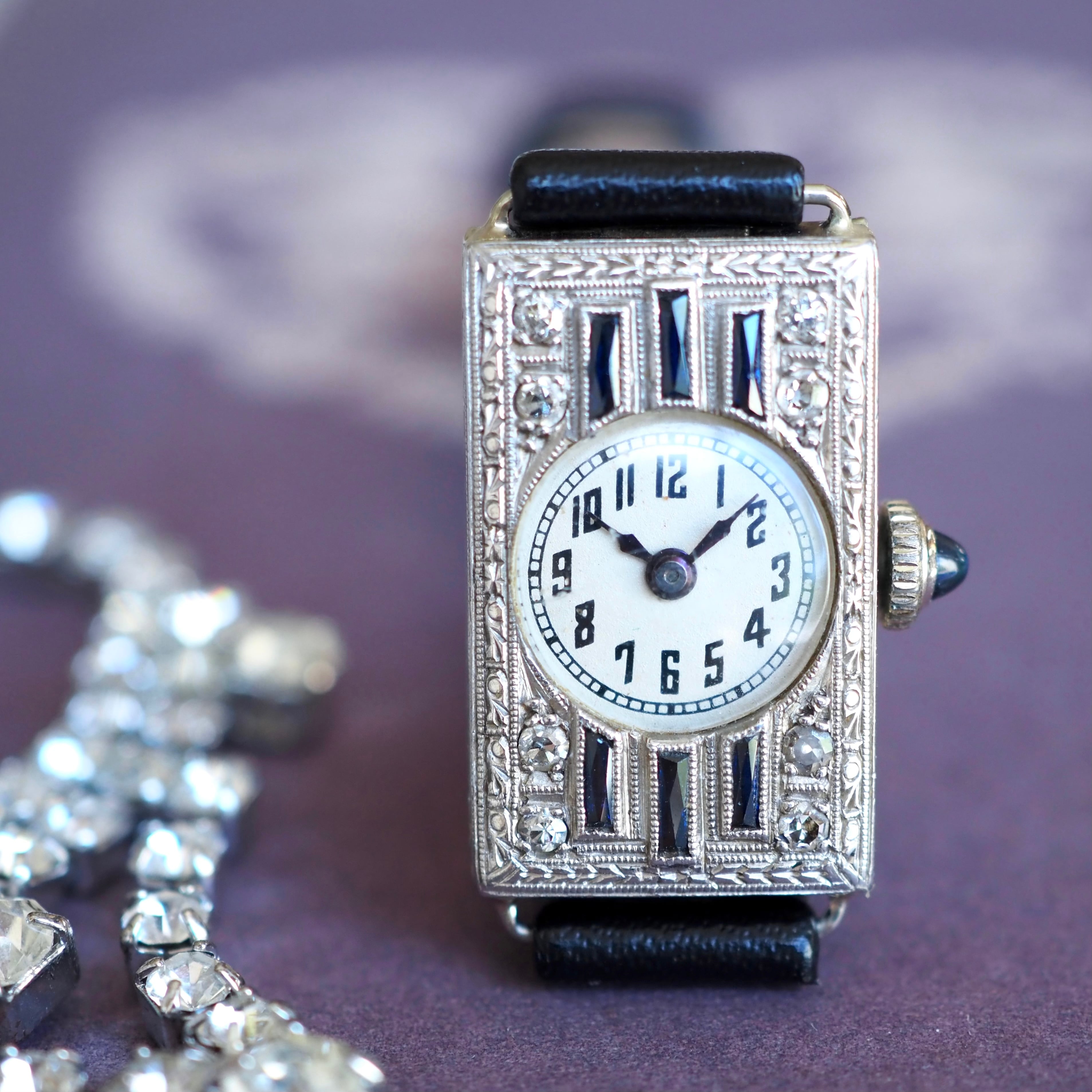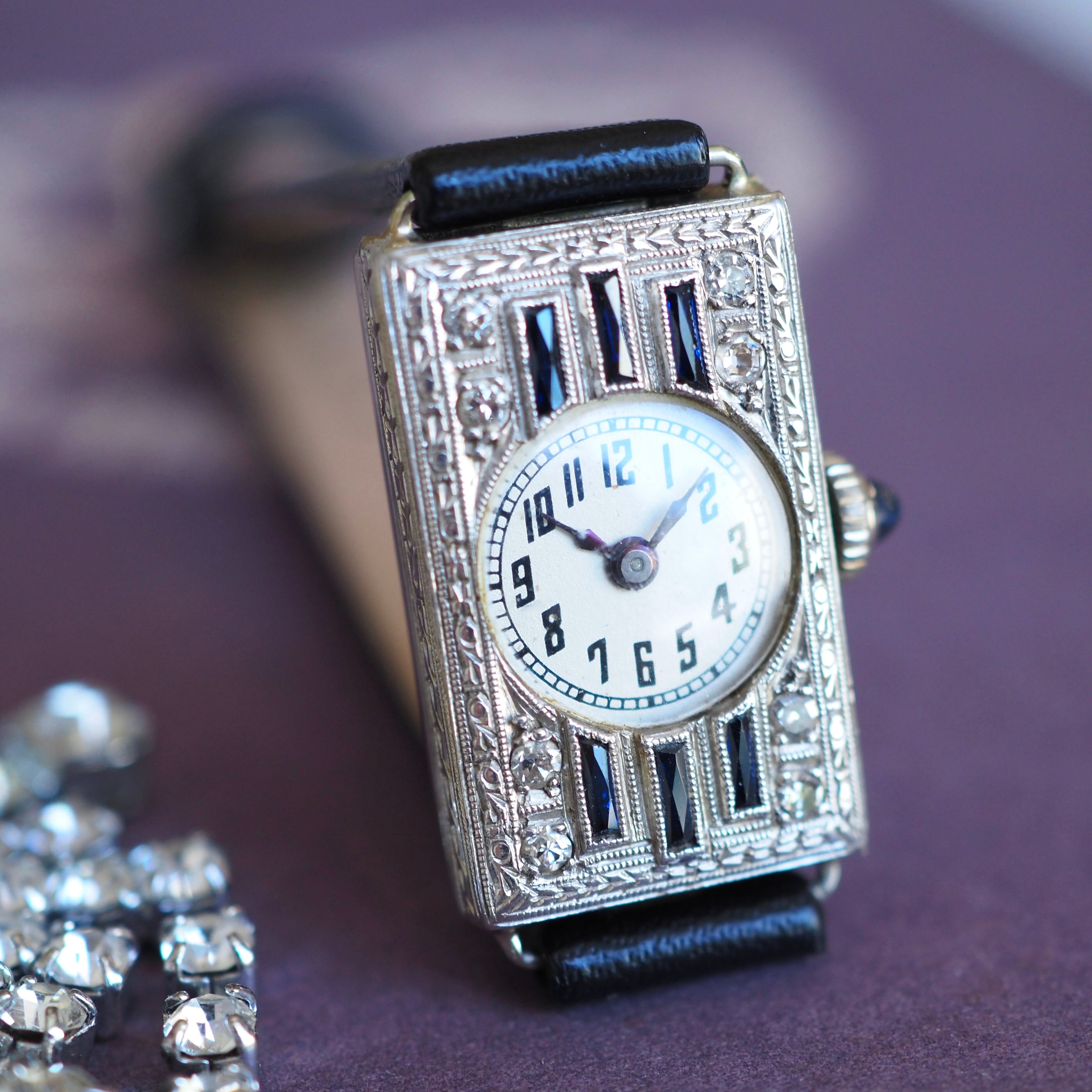 Abra Watch Co.製 アール・デコ K18WG ダイヤ&サファイア ジュエリーウォッチ アンティーク時計