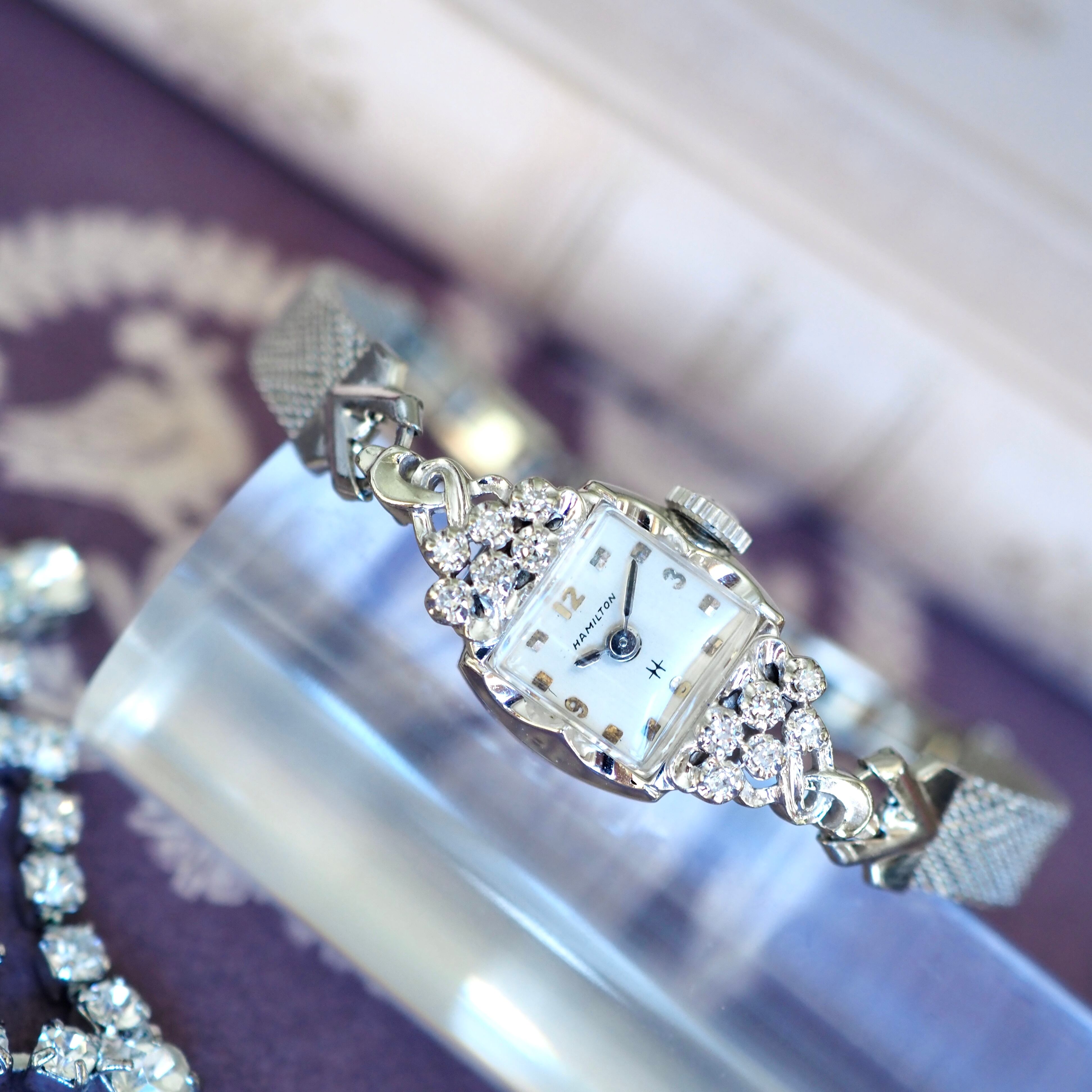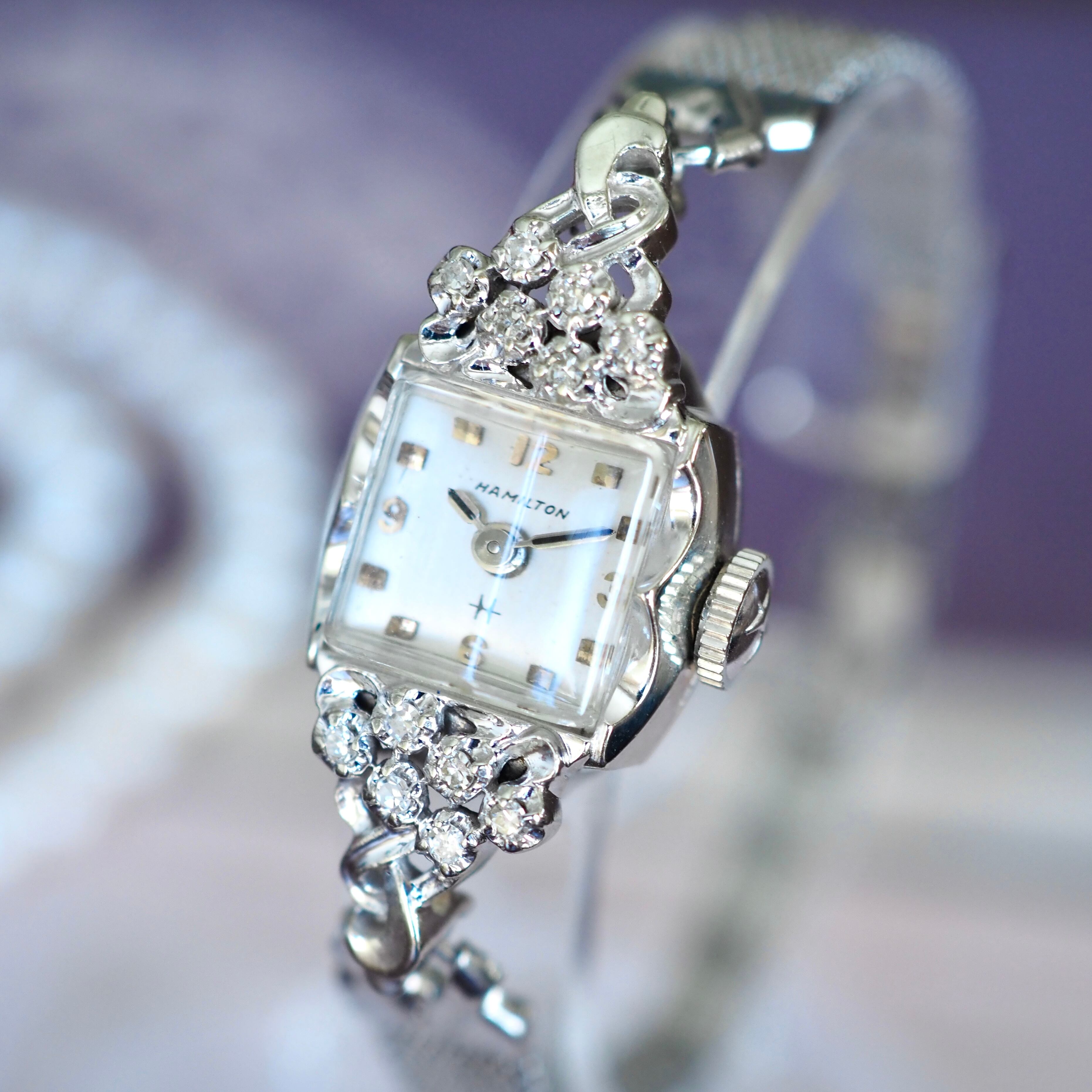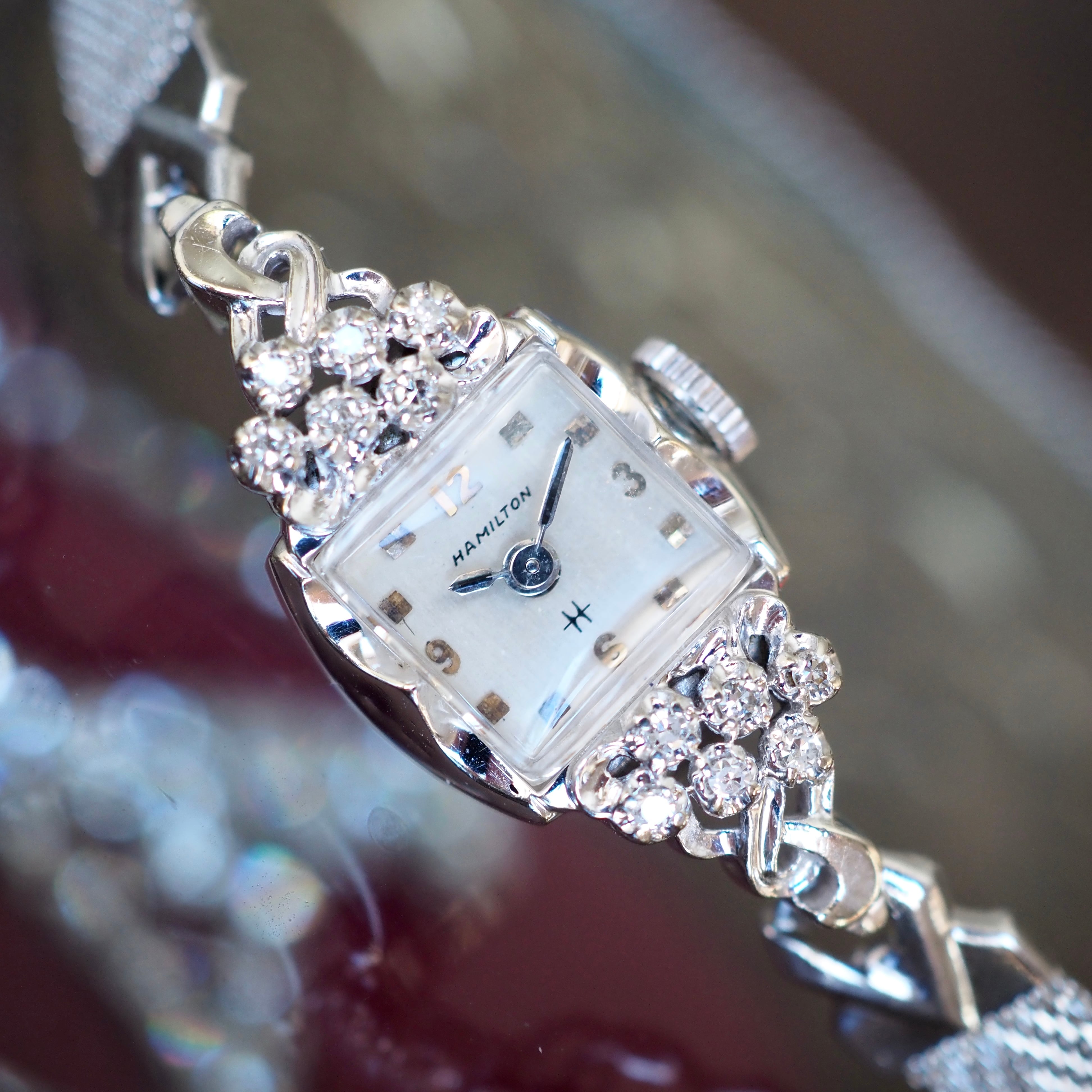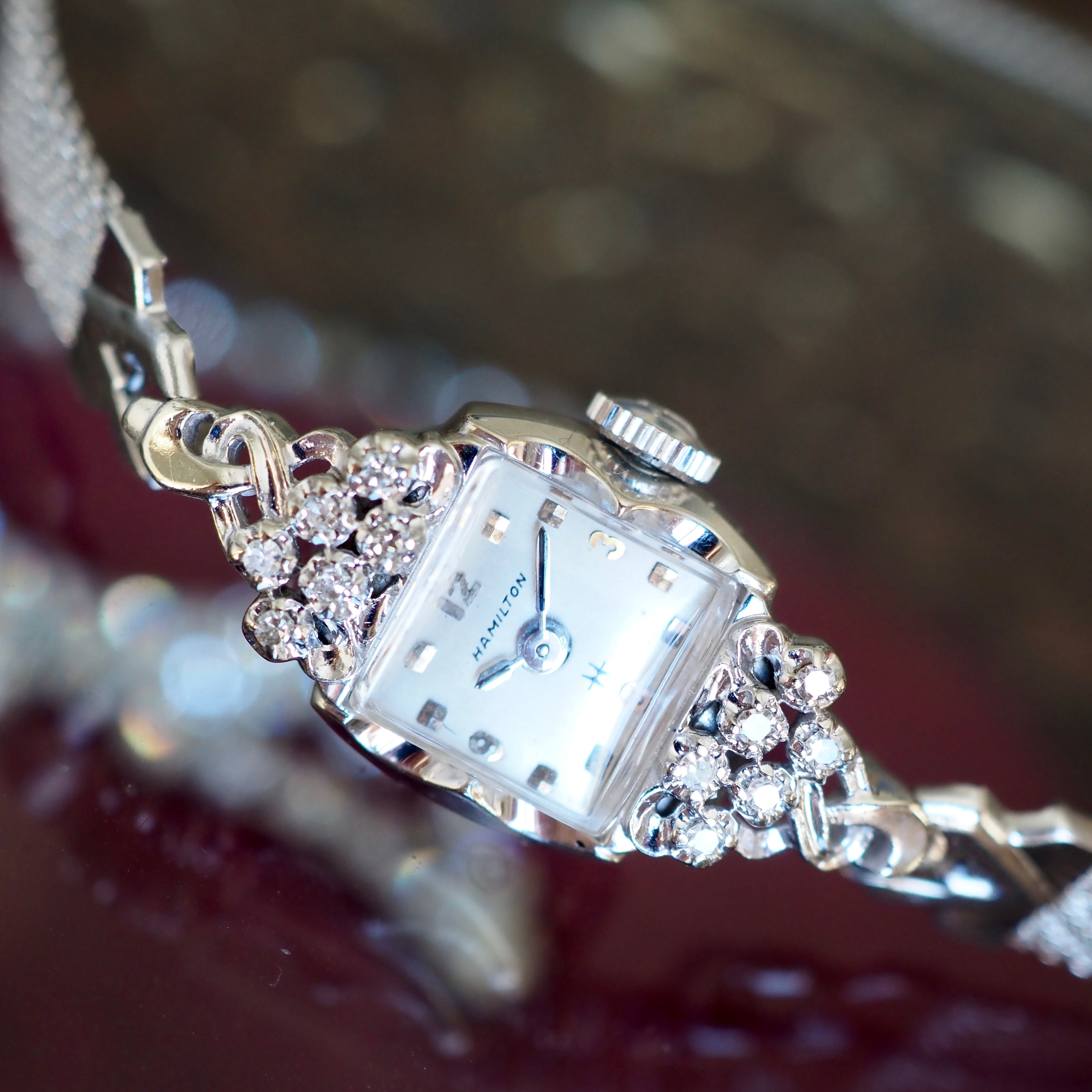 OH済 Hamilton ハミルトン K14WG ダイヤモンド カクテルウォッチ アンティーク時計