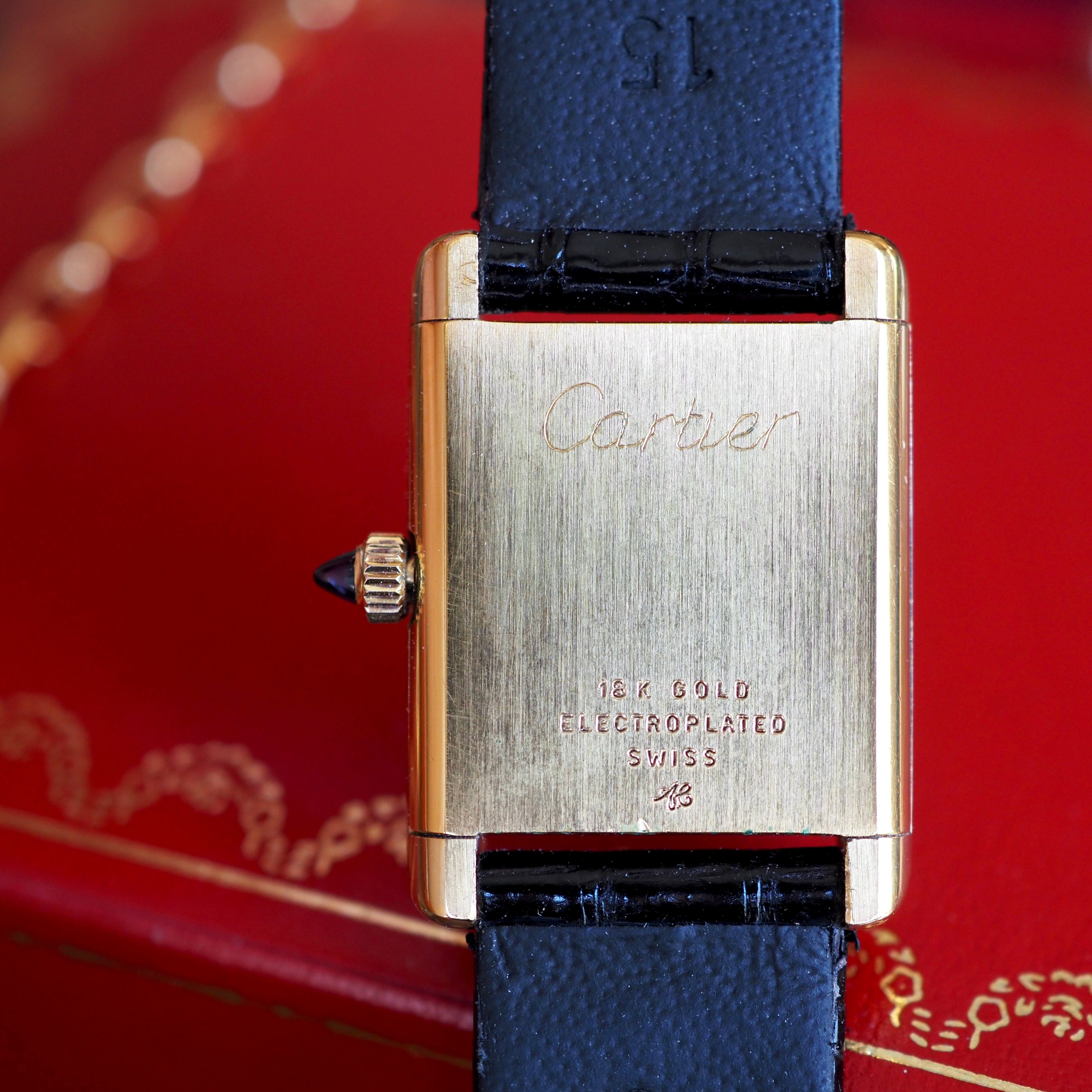 基本的なつくりはタンクルイとよく似ており、違いはケースが18金ではなくシルバーに厚い金メッキを施したヴェルメイユ、文字盤の表記がブロック体ではなく筆記体となっています。