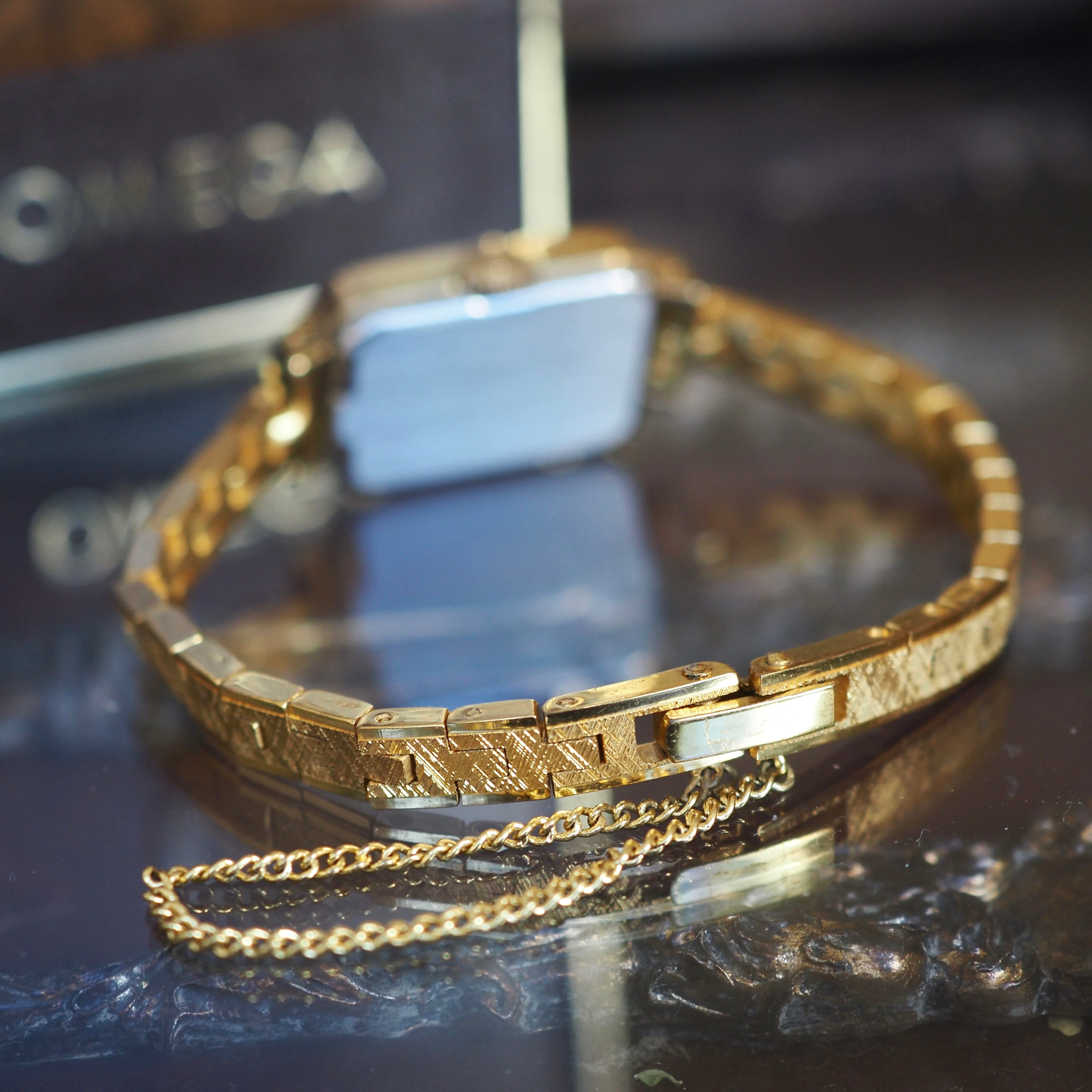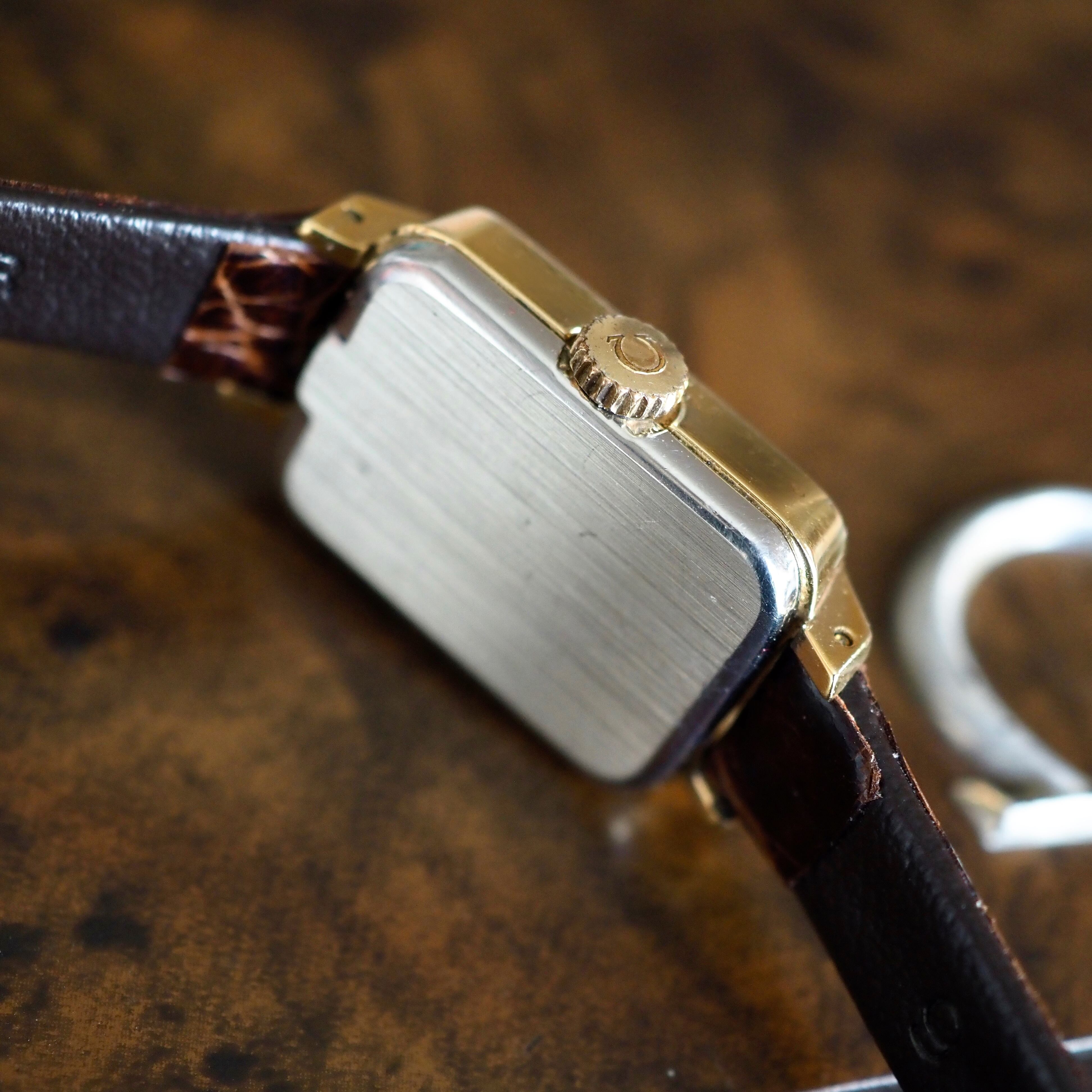 希少 OH済 OMEGA グリマデザイン ミラー文字盤 サファイアカットガラス ドレスウォッチ ベルト2本 ヴィンテージ時計