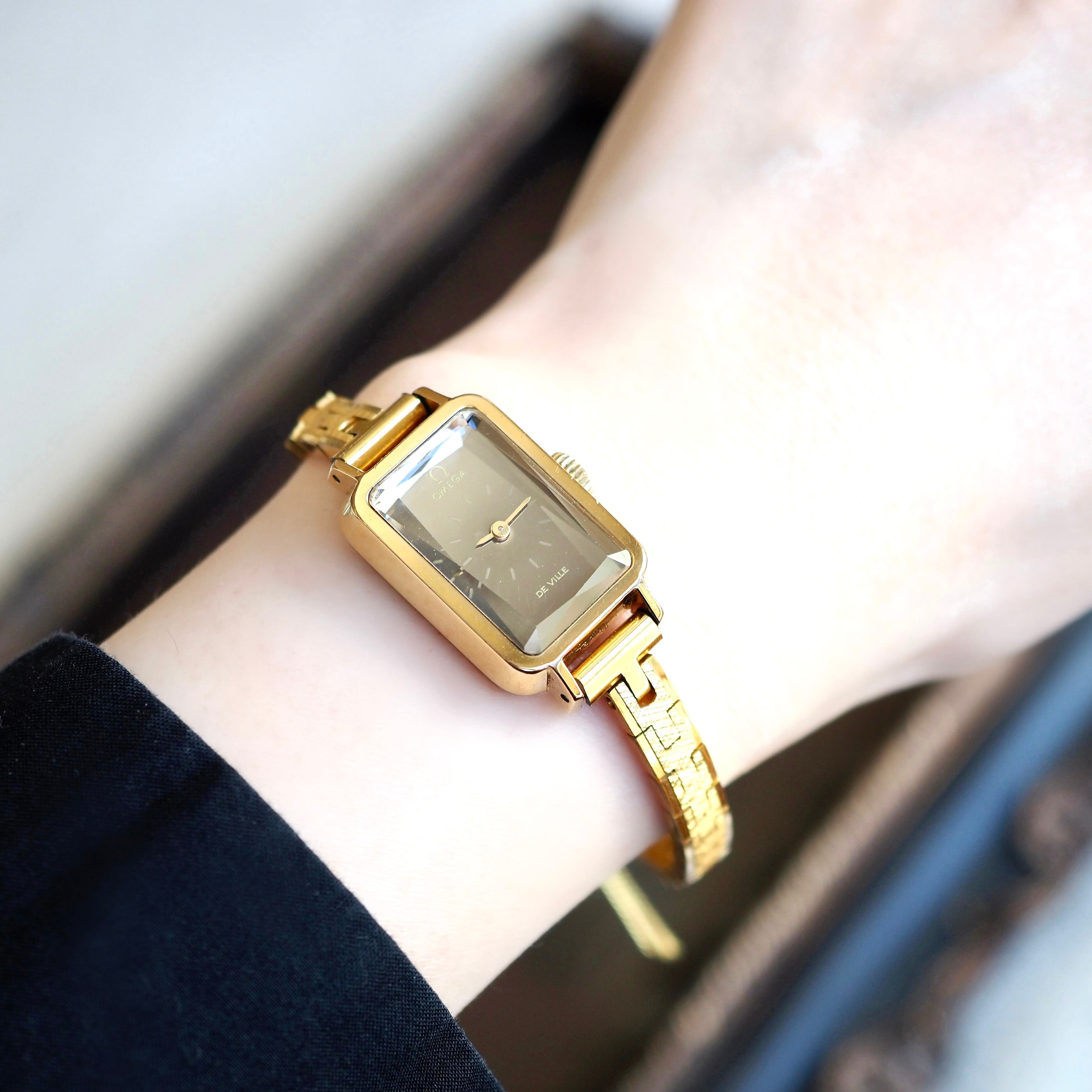 ゴールドのブレスとワニ革ベルトをおつけします。季節やシーンで交換してお楽しみ下さい。