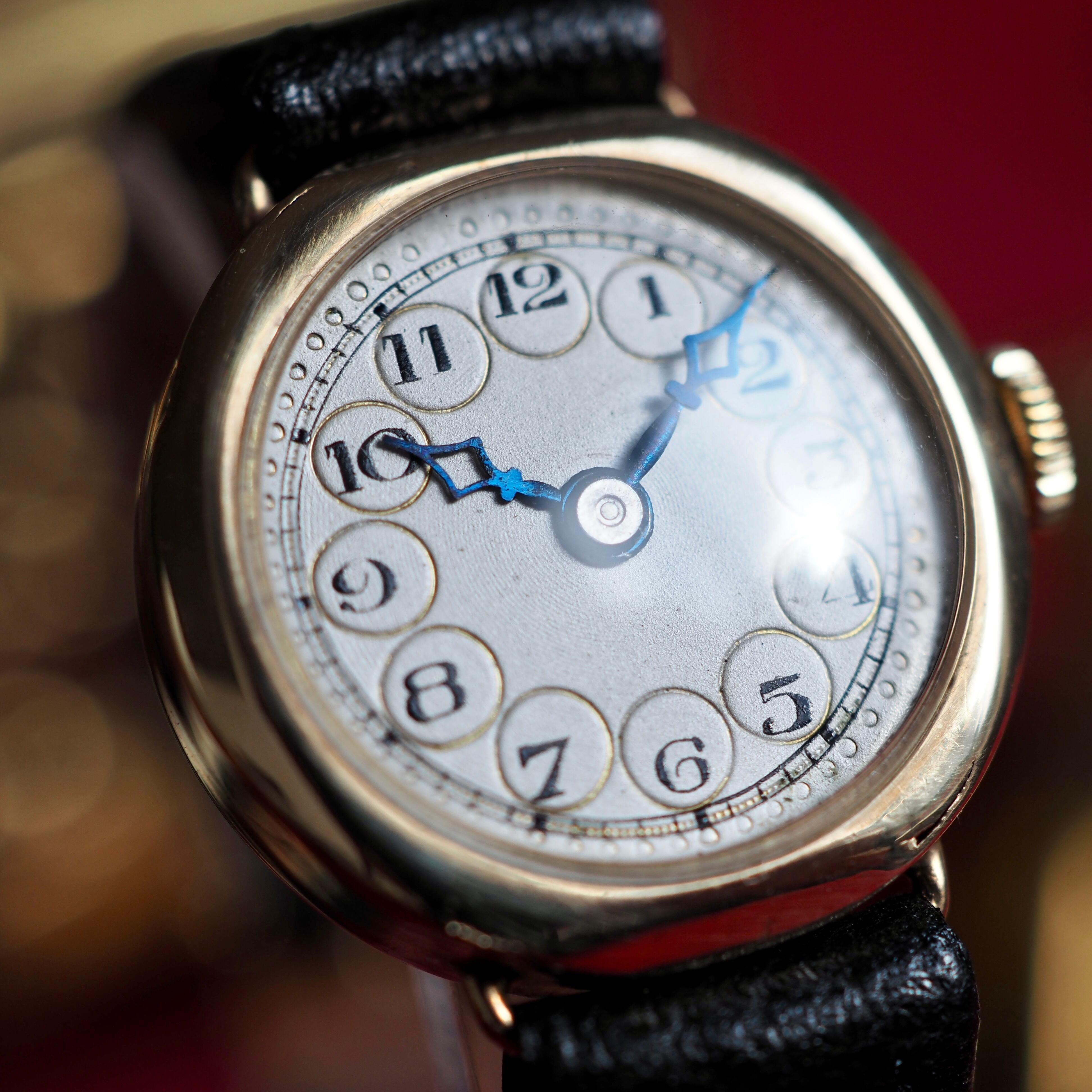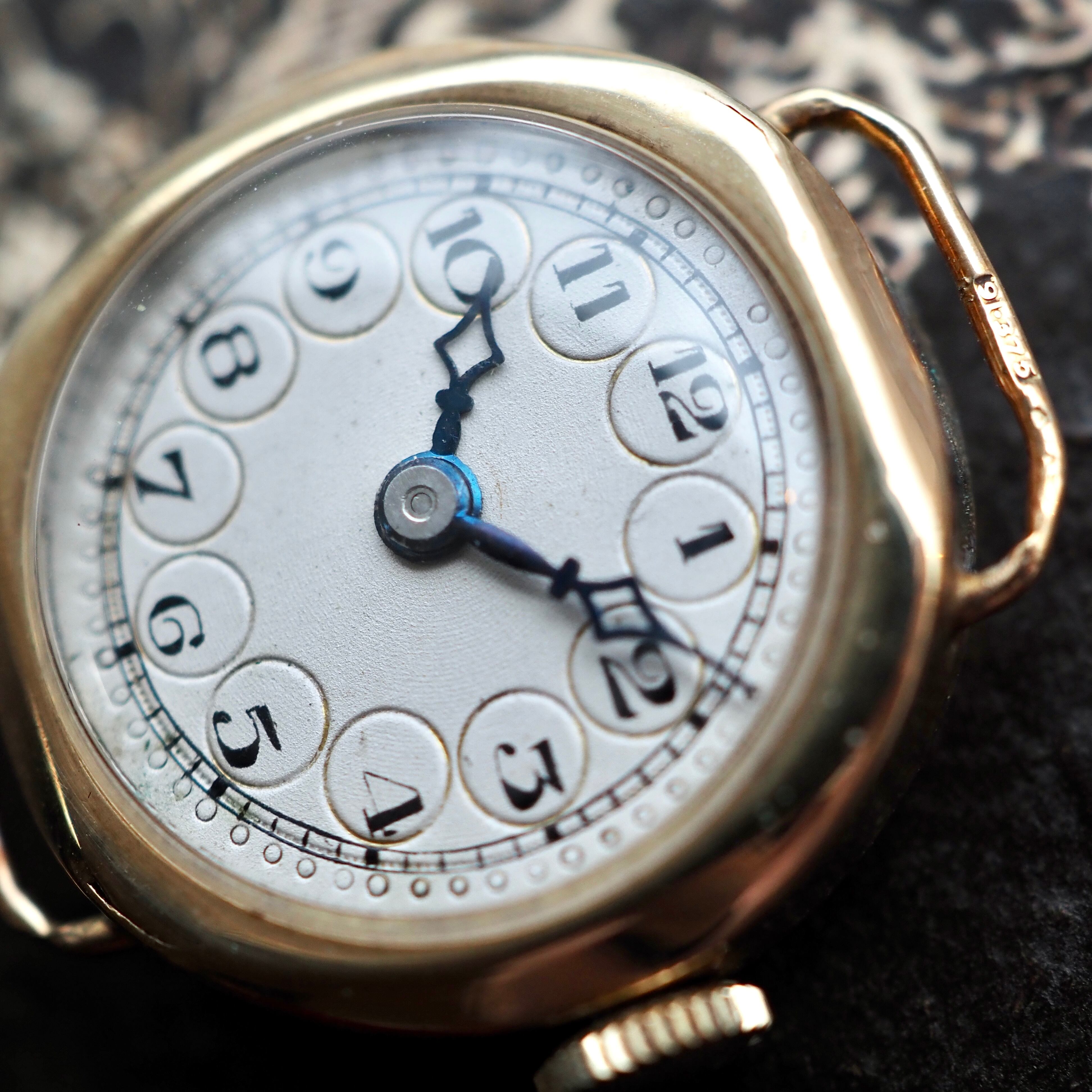 文字盤の至るところに当時の職人の手仕事を感じられる痕跡が残る、味わい深い時計です。