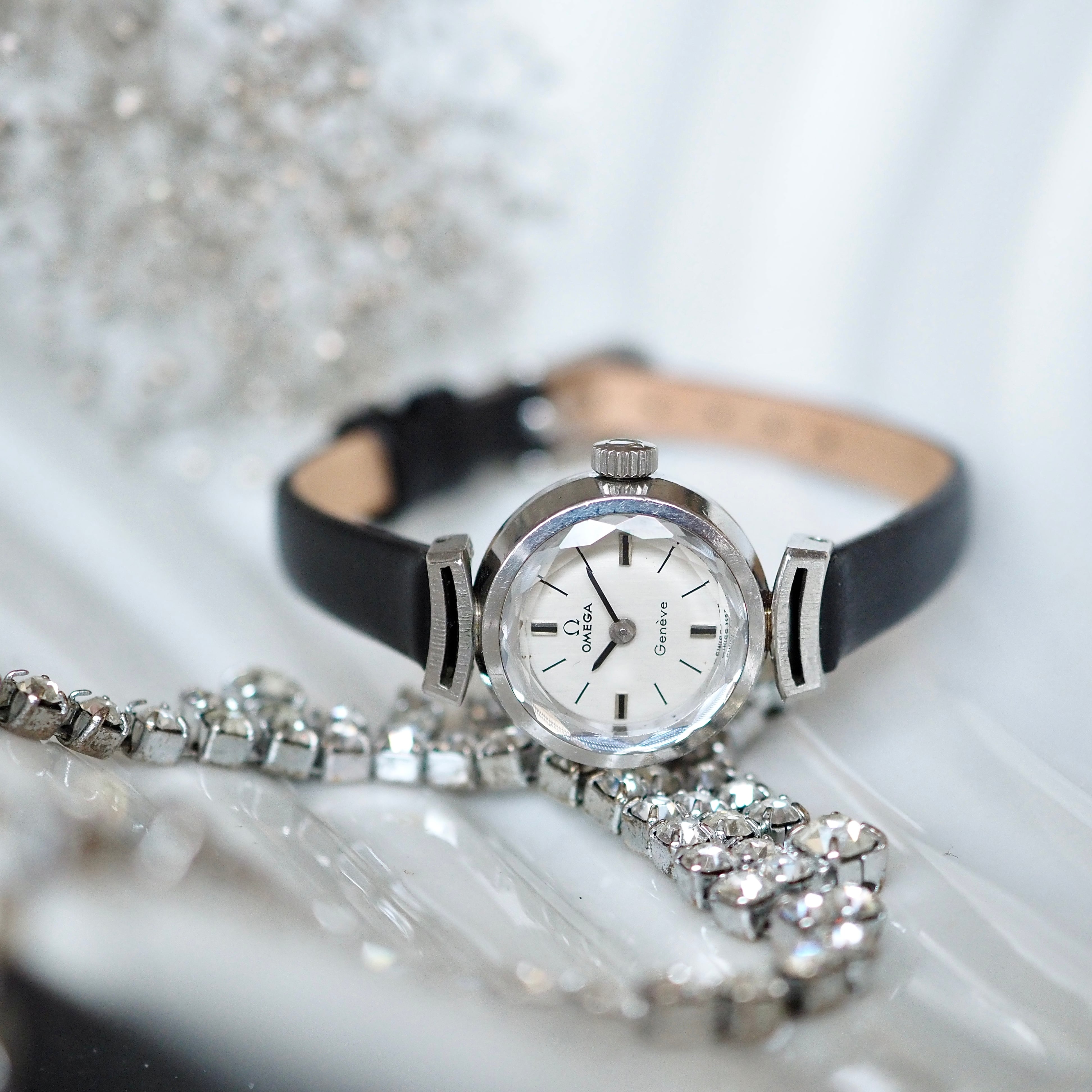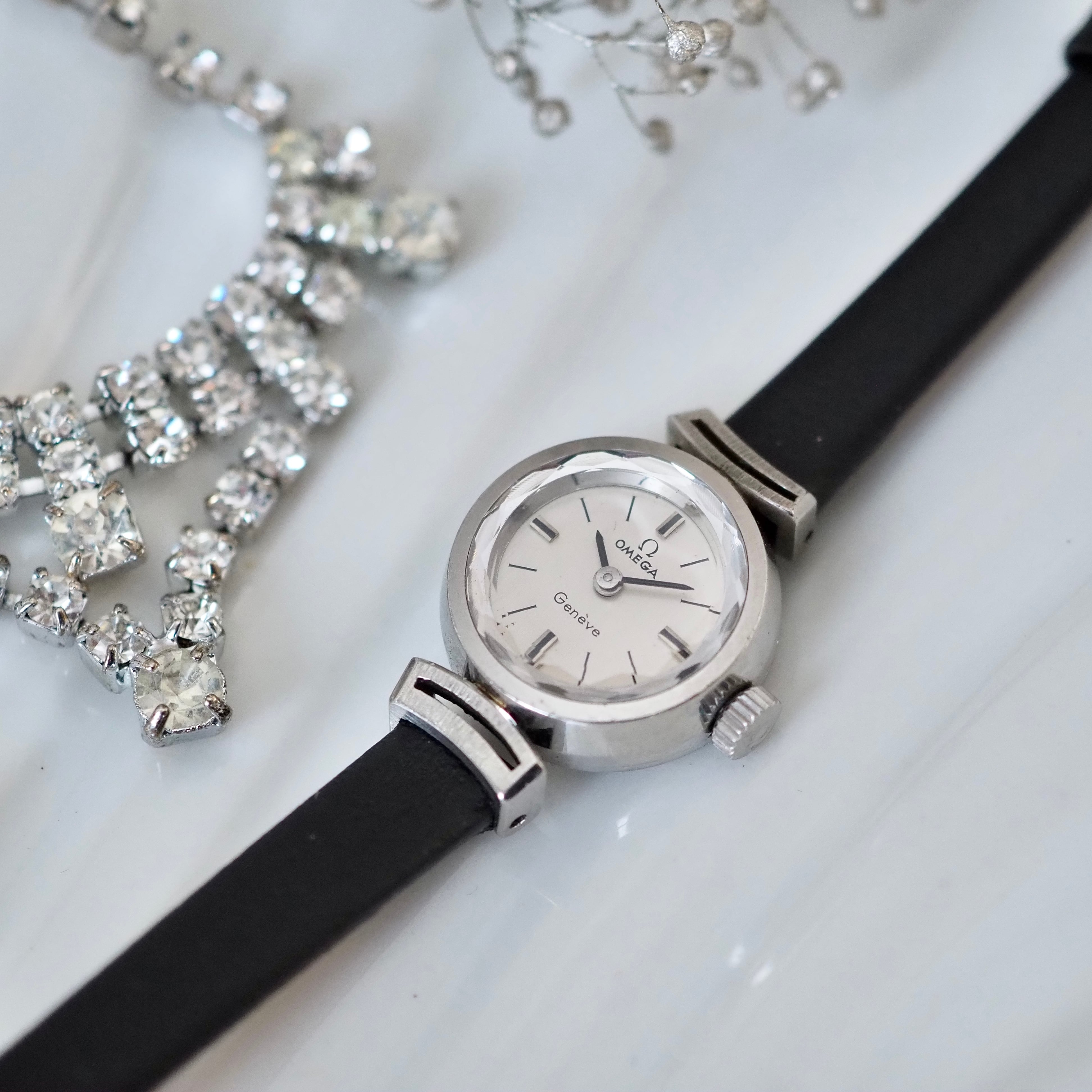 OMEGA オメガ Genéve プリズム風防 サファイアカットガラス アンティーク時計