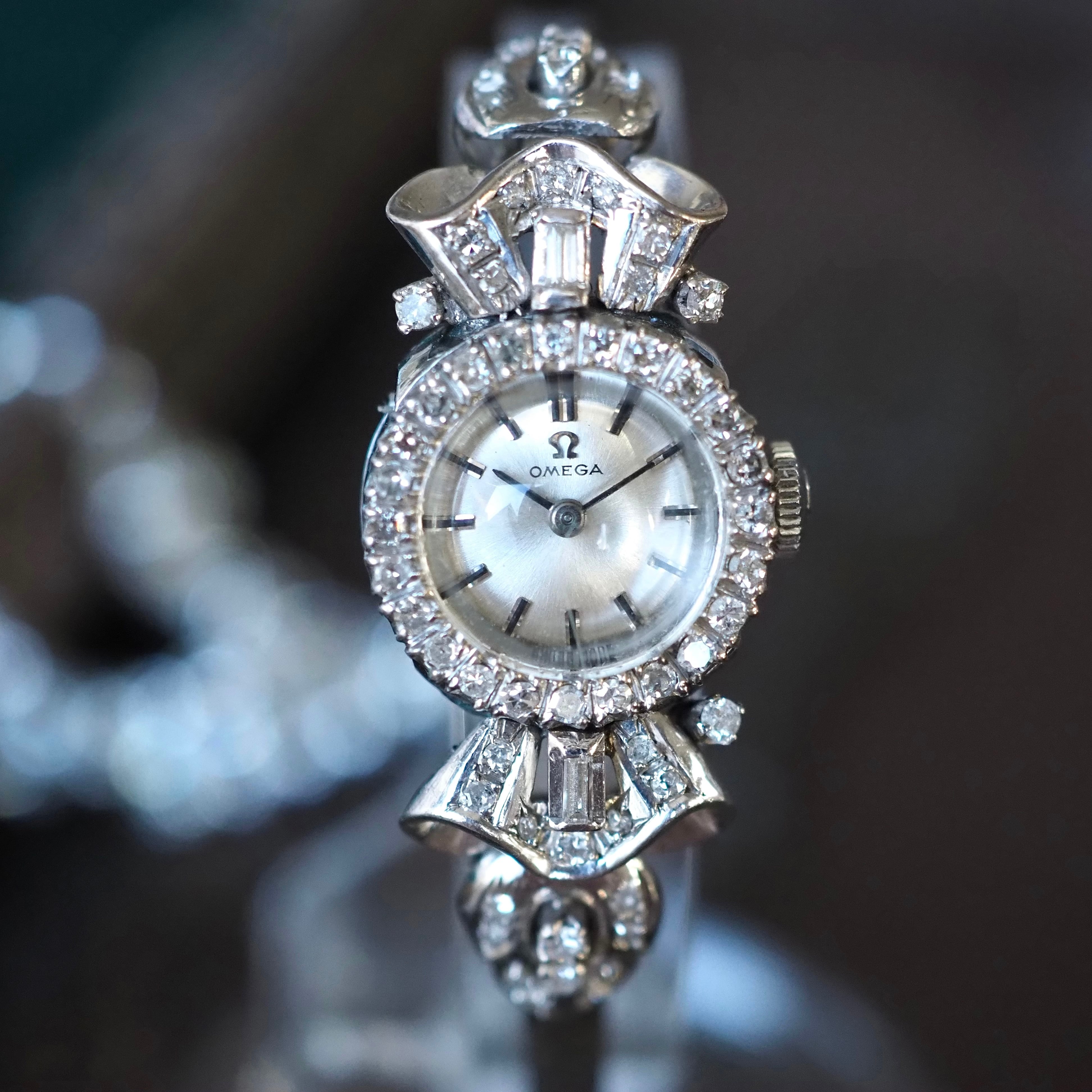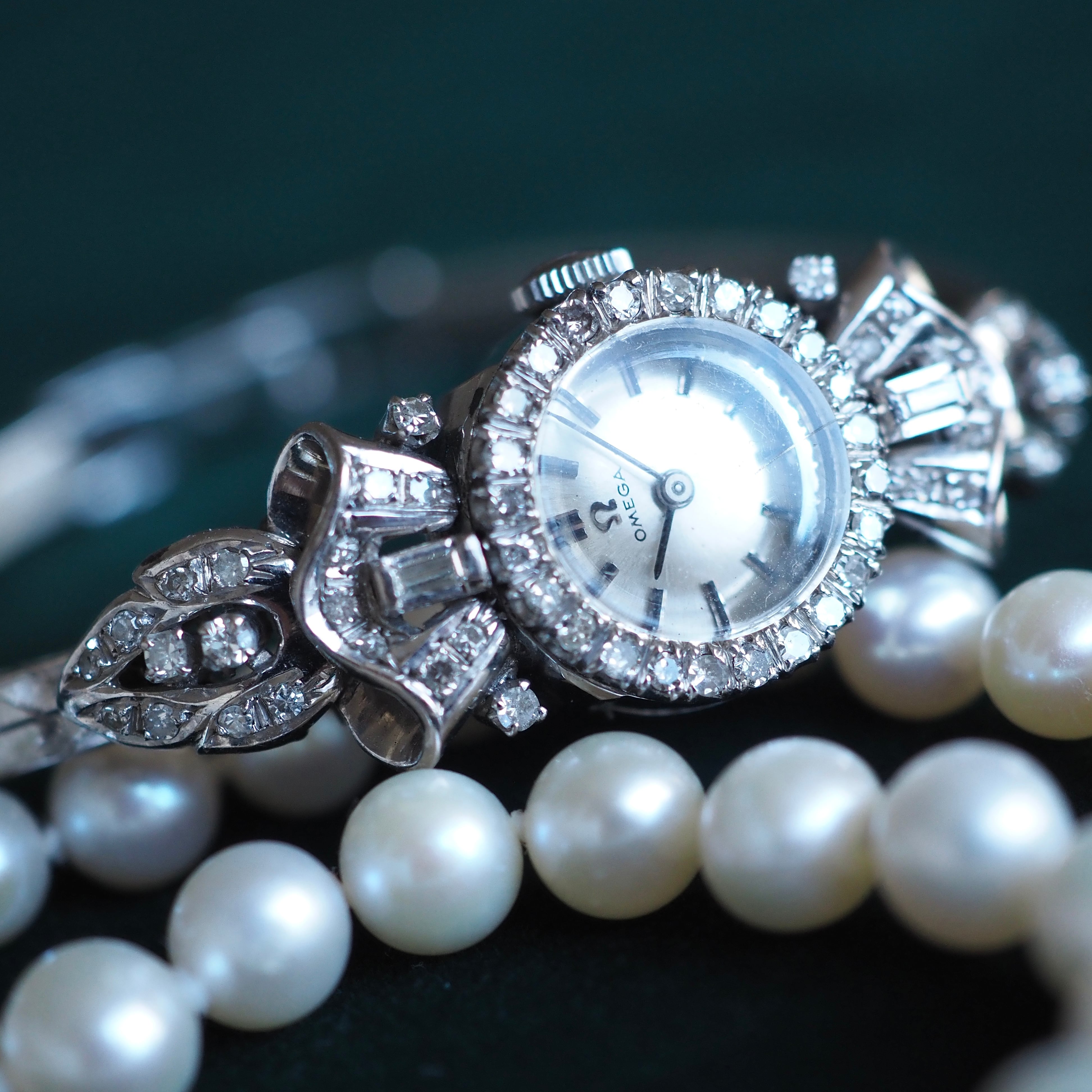 ダイヤモンドが華やかに輝く豪華なオメガのジュエリーウォッチ。