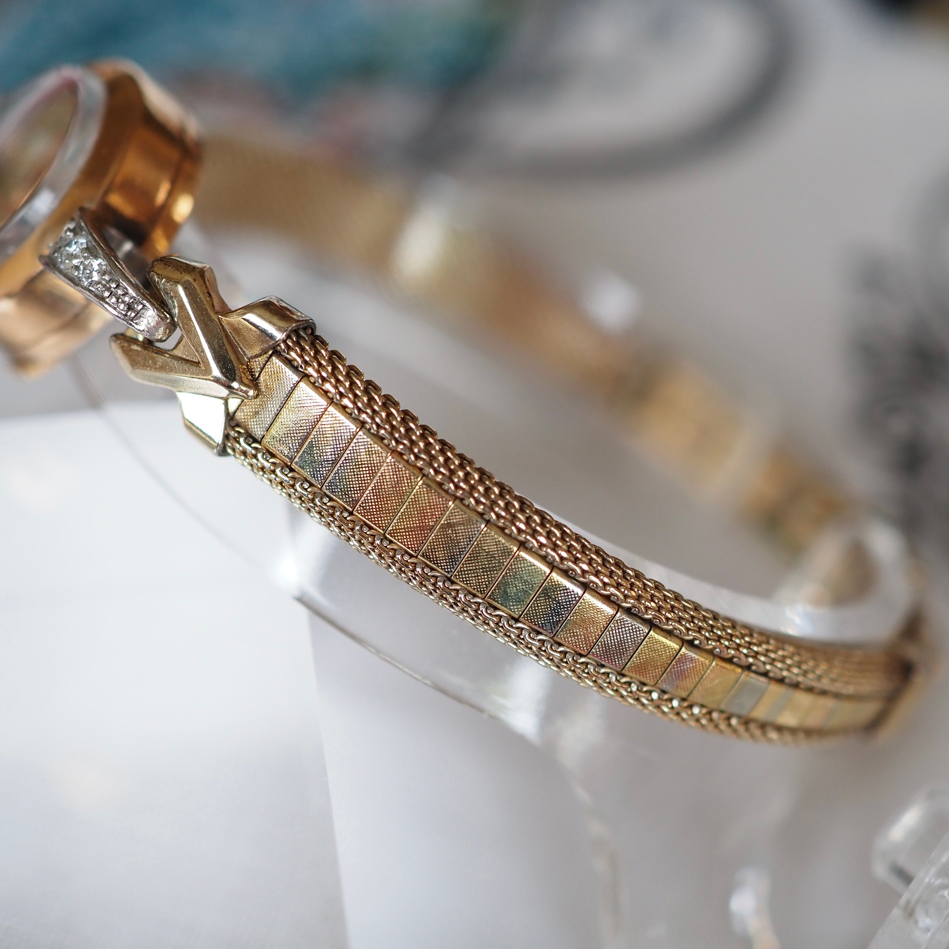 アンティークの可愛らしさがぎゅっと詰まった、ブレスレットのようにお召しいただけるカクテルウォッチ。