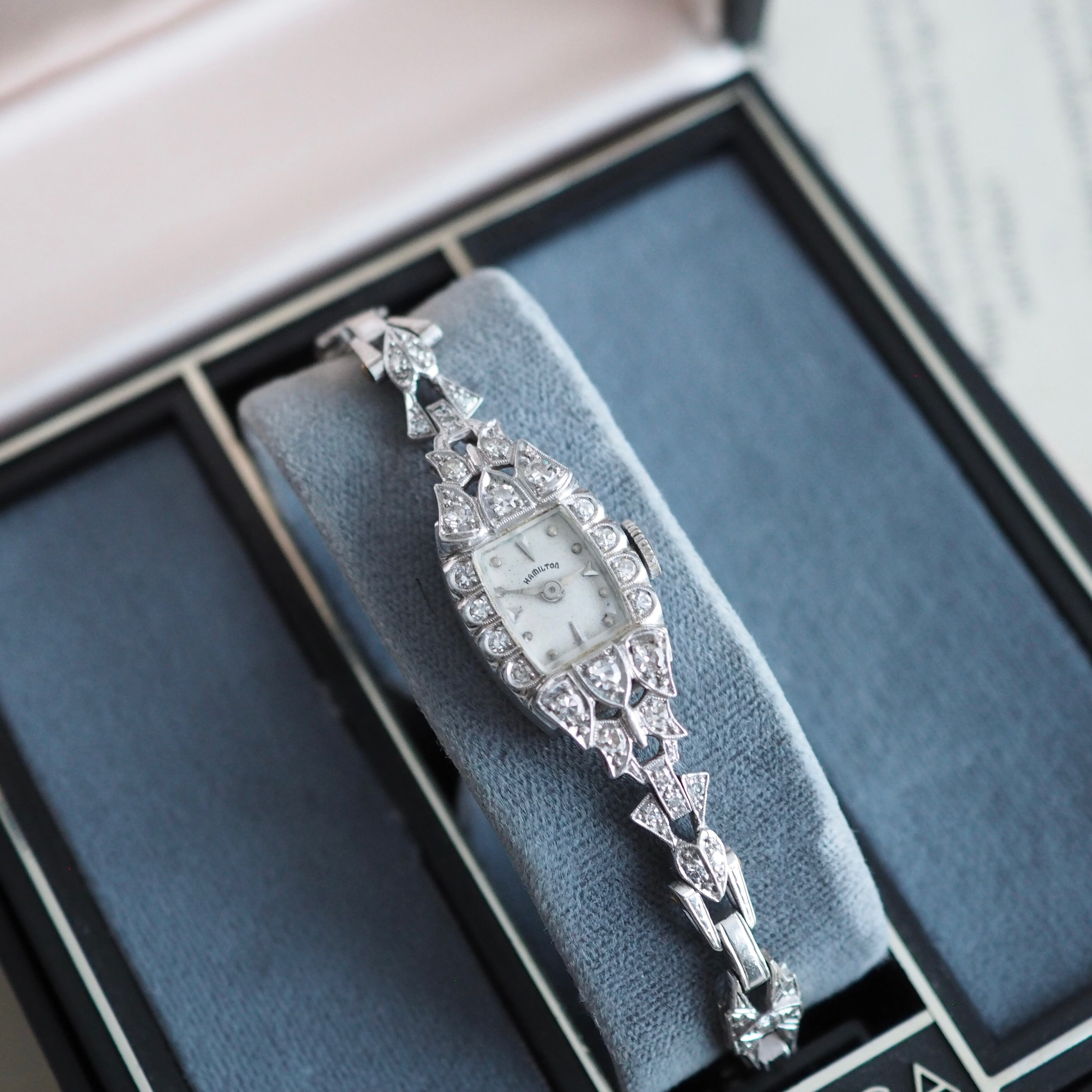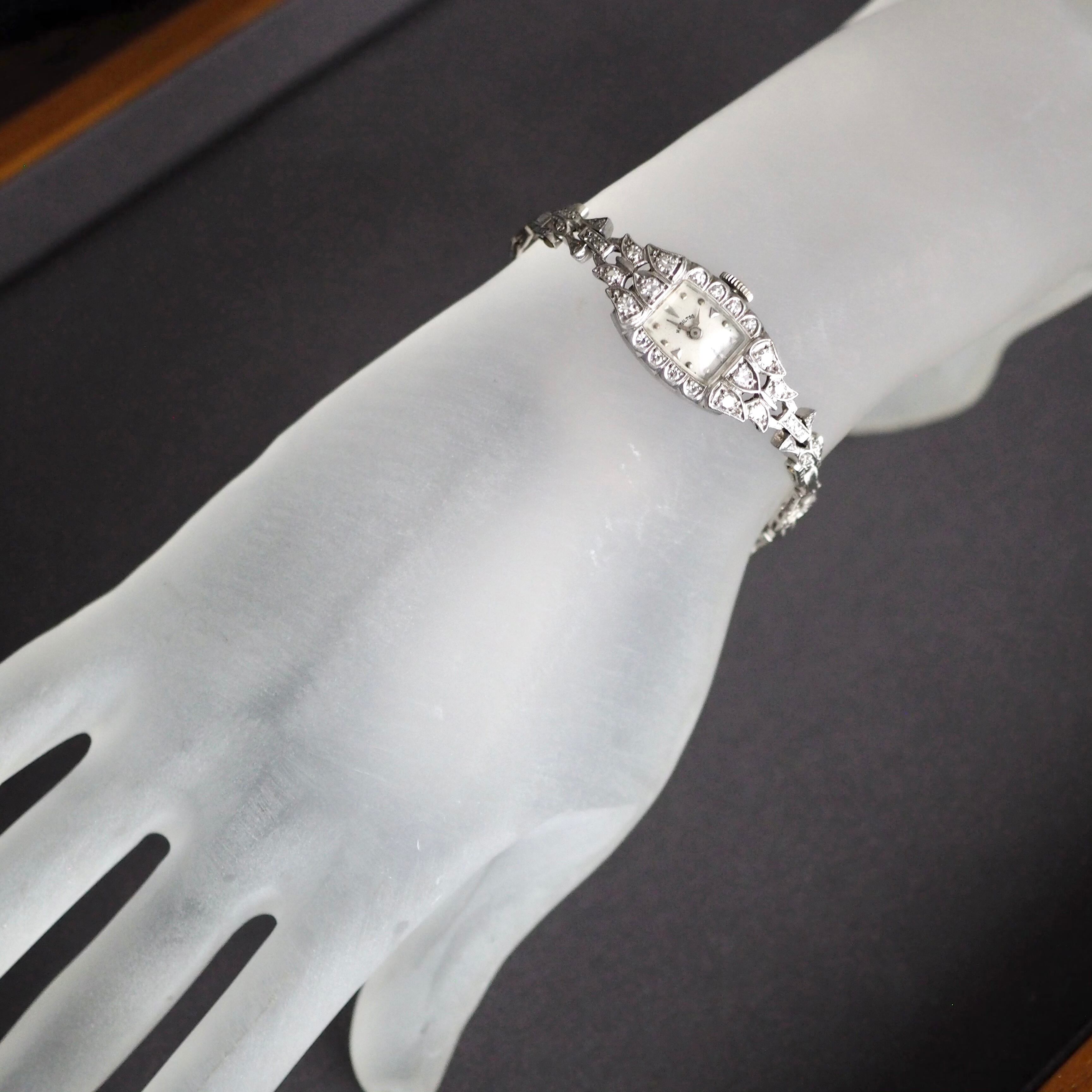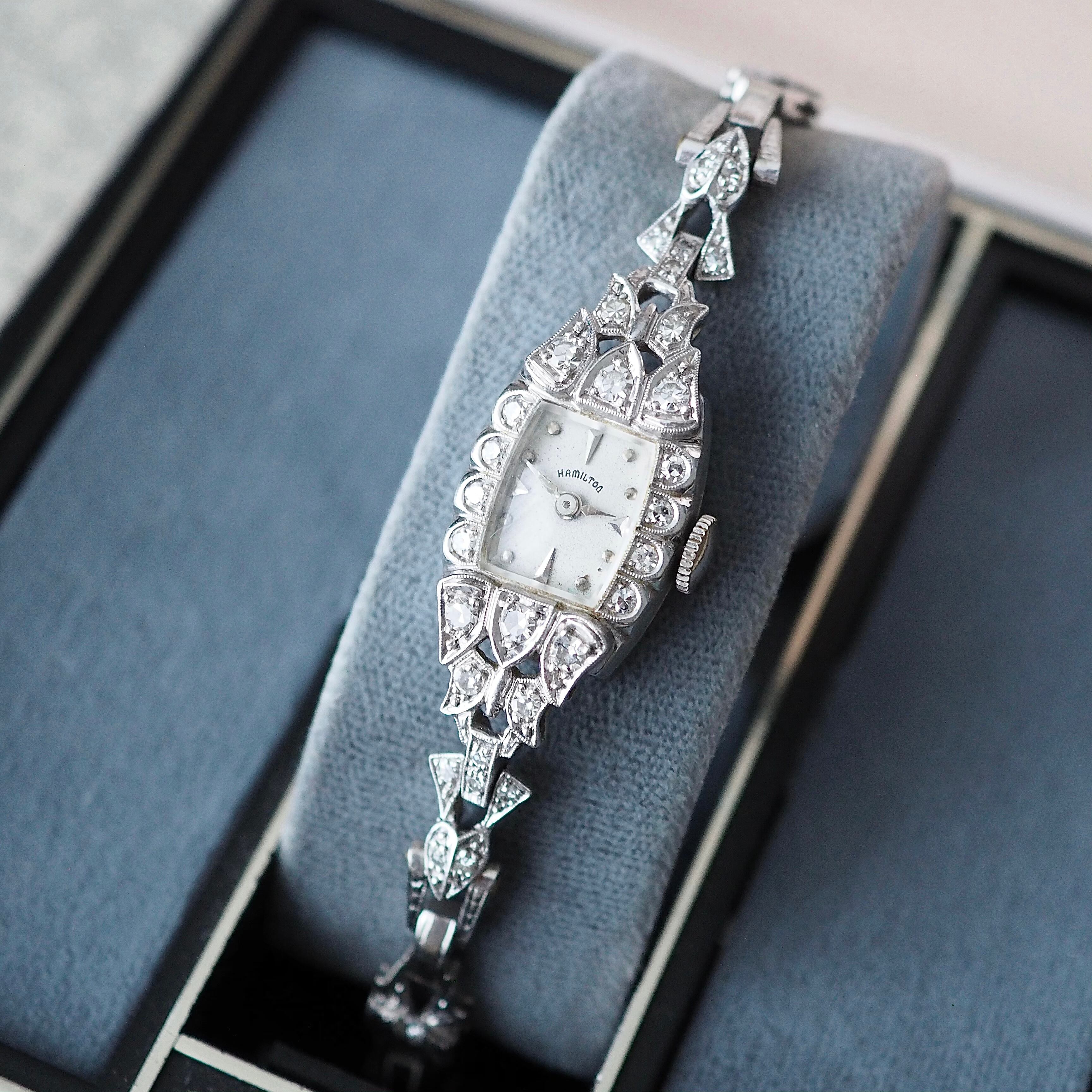 アールデコデザインが素敵な50年代製アンティーク・ハミルトンのジュエリーウォッチです。