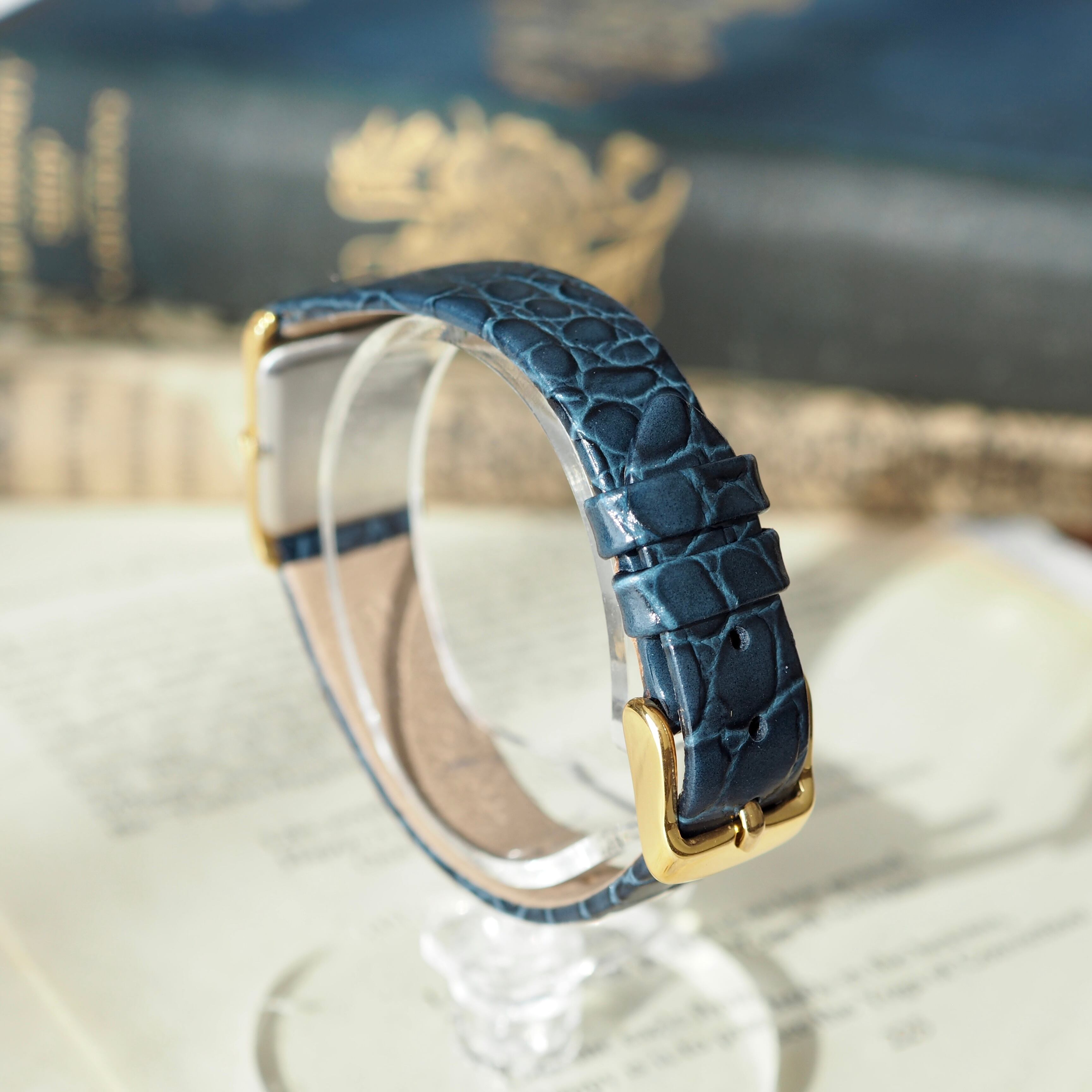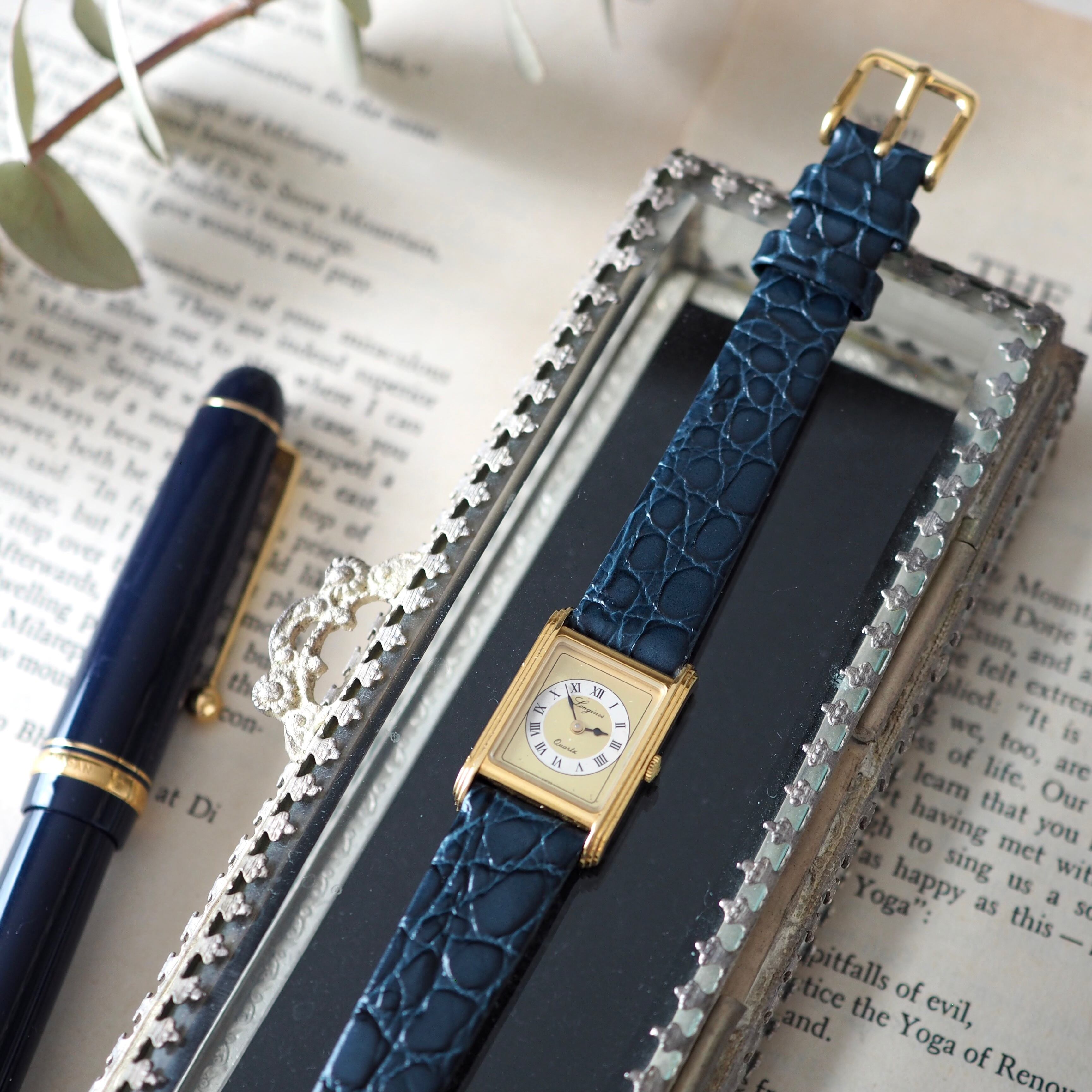 スクエアケースの中にラウンドがあり、その中にローマンインデックスが。この部分が文字盤のお色のままの物とホワイトの物がありますが、こちらのホワイトは抜け間があり、よりお洒落な雰囲気。