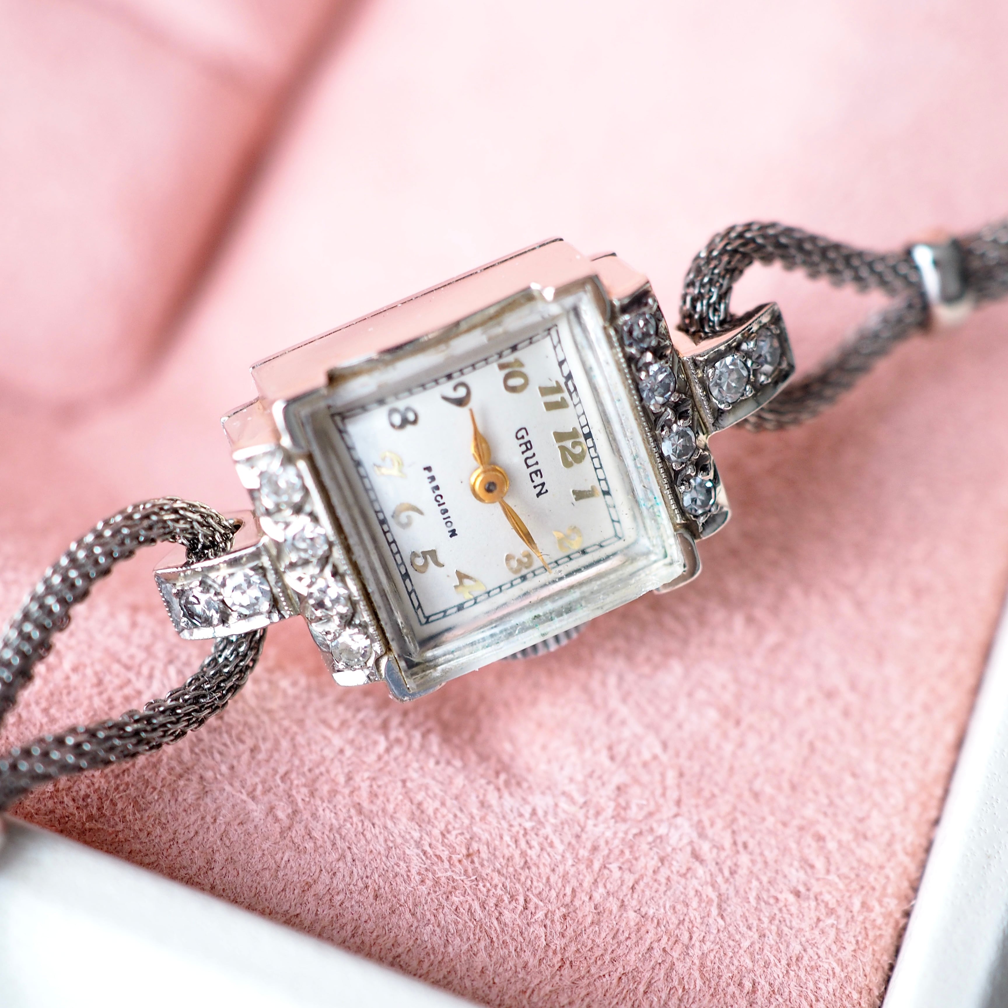 GRUEN グリュエン K14WG ダイヤモンド アンティーク時計