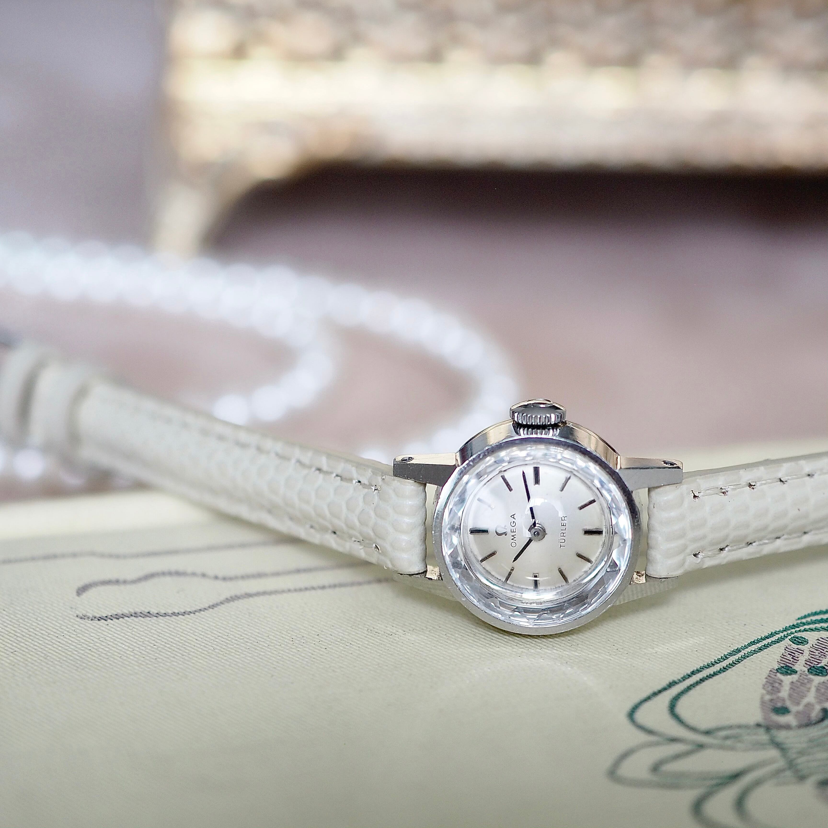 アンティークオメガならではの小振りのサイズ感が大変可愛いく、ジュエリーのようなきらめきは腕元を素敵に彩ってくれます。