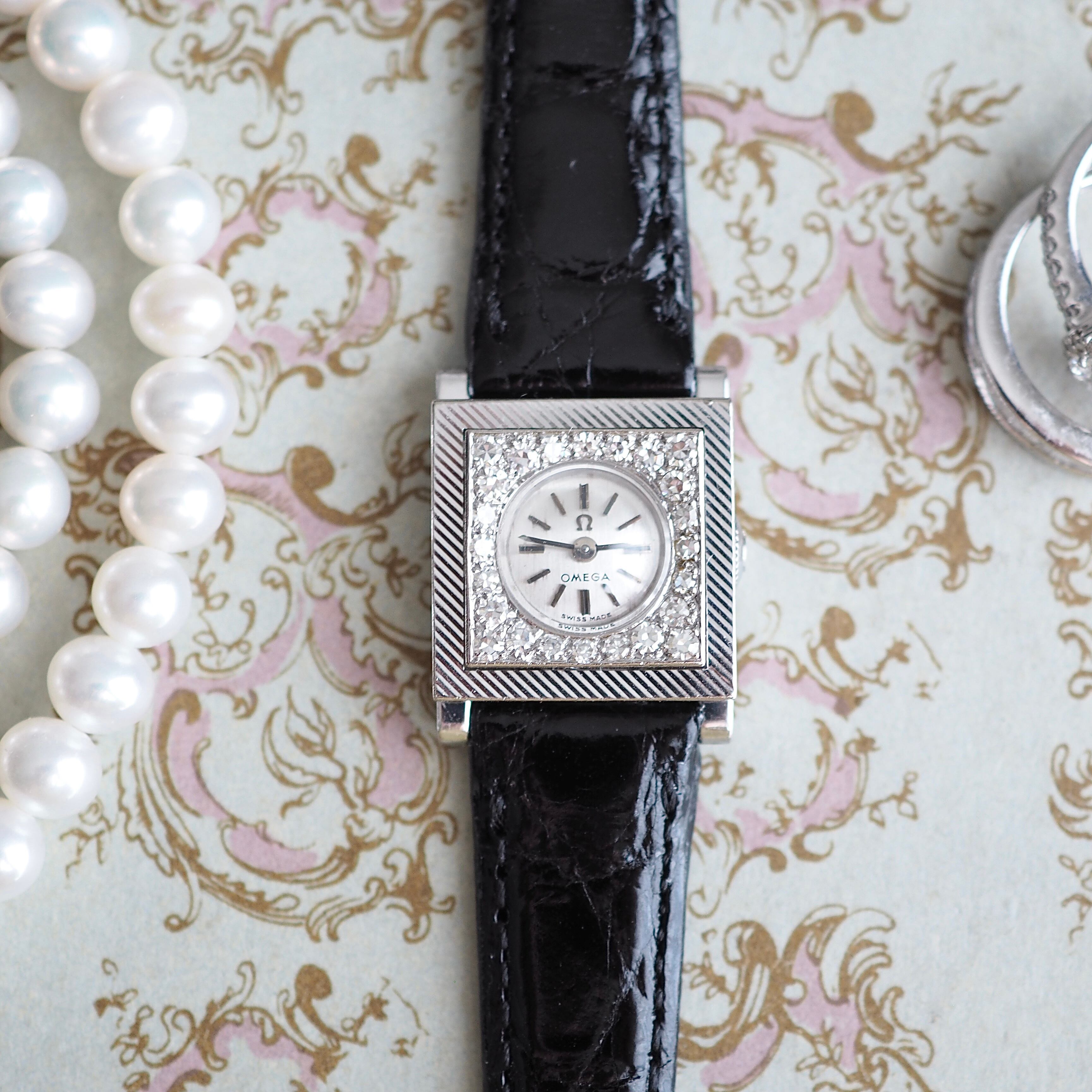 OMEGA オメガ K18WG×ダイヤモンド ジュエリーウォッチ アンティーク時計
