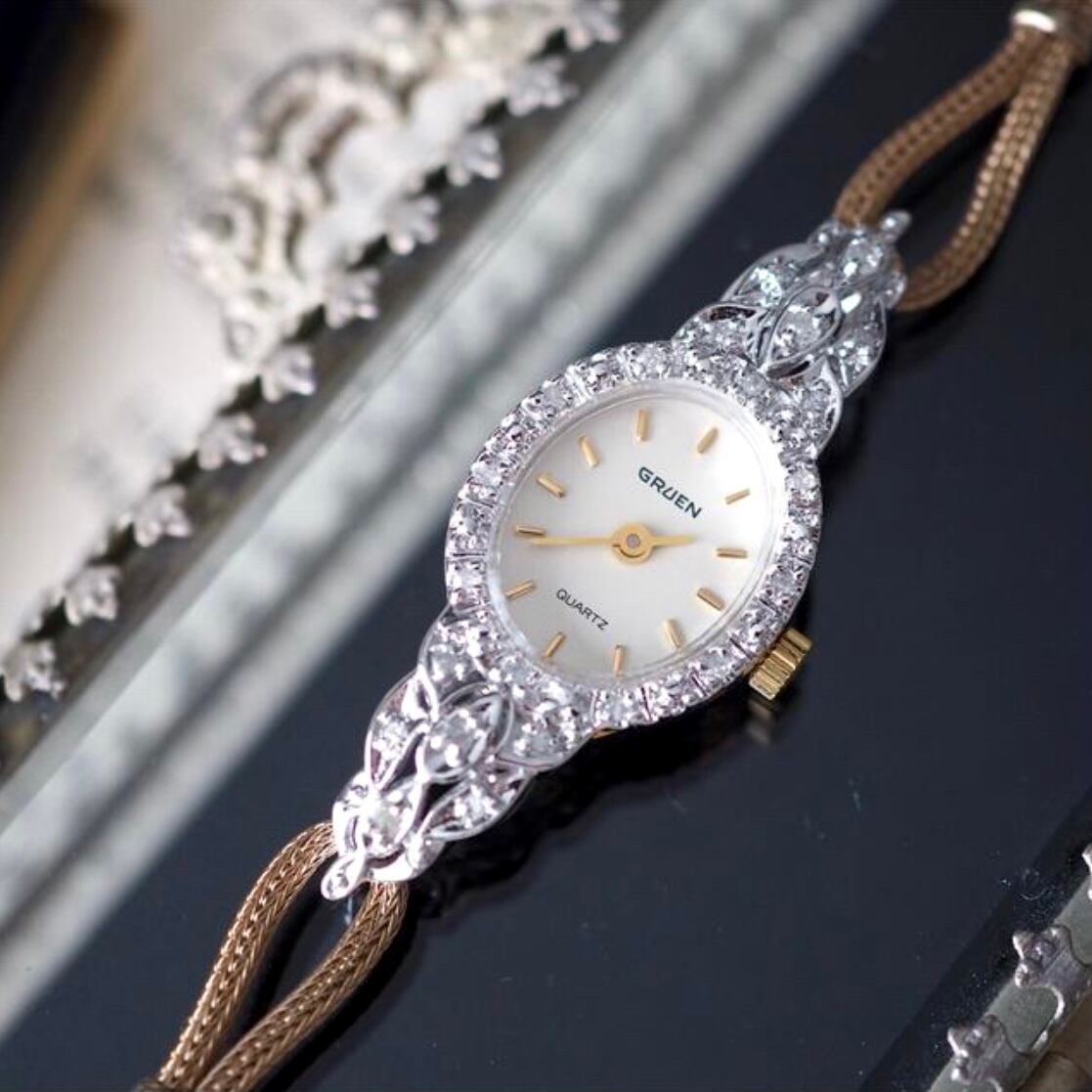 GRUEN グリュエン ダイヤ付ベゼル ドレスウォッチ ヴィンテージ時計