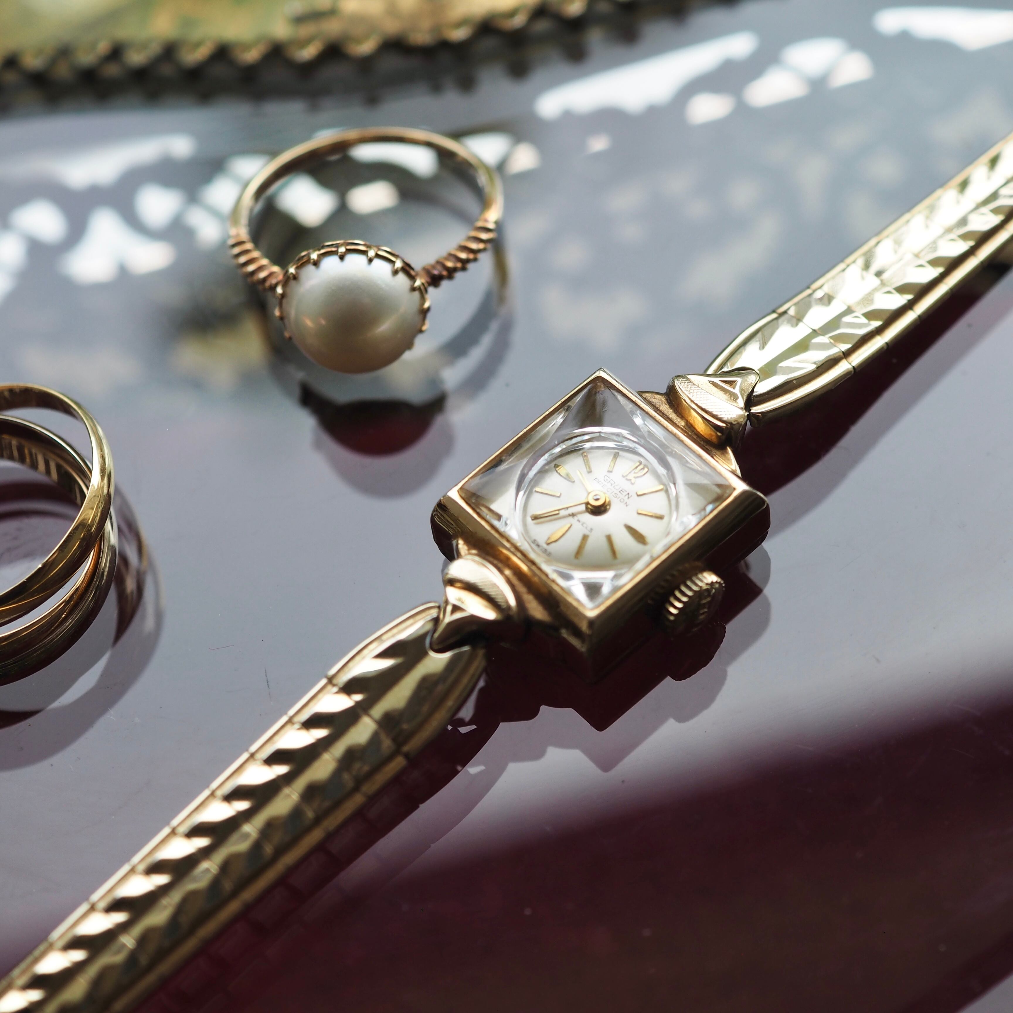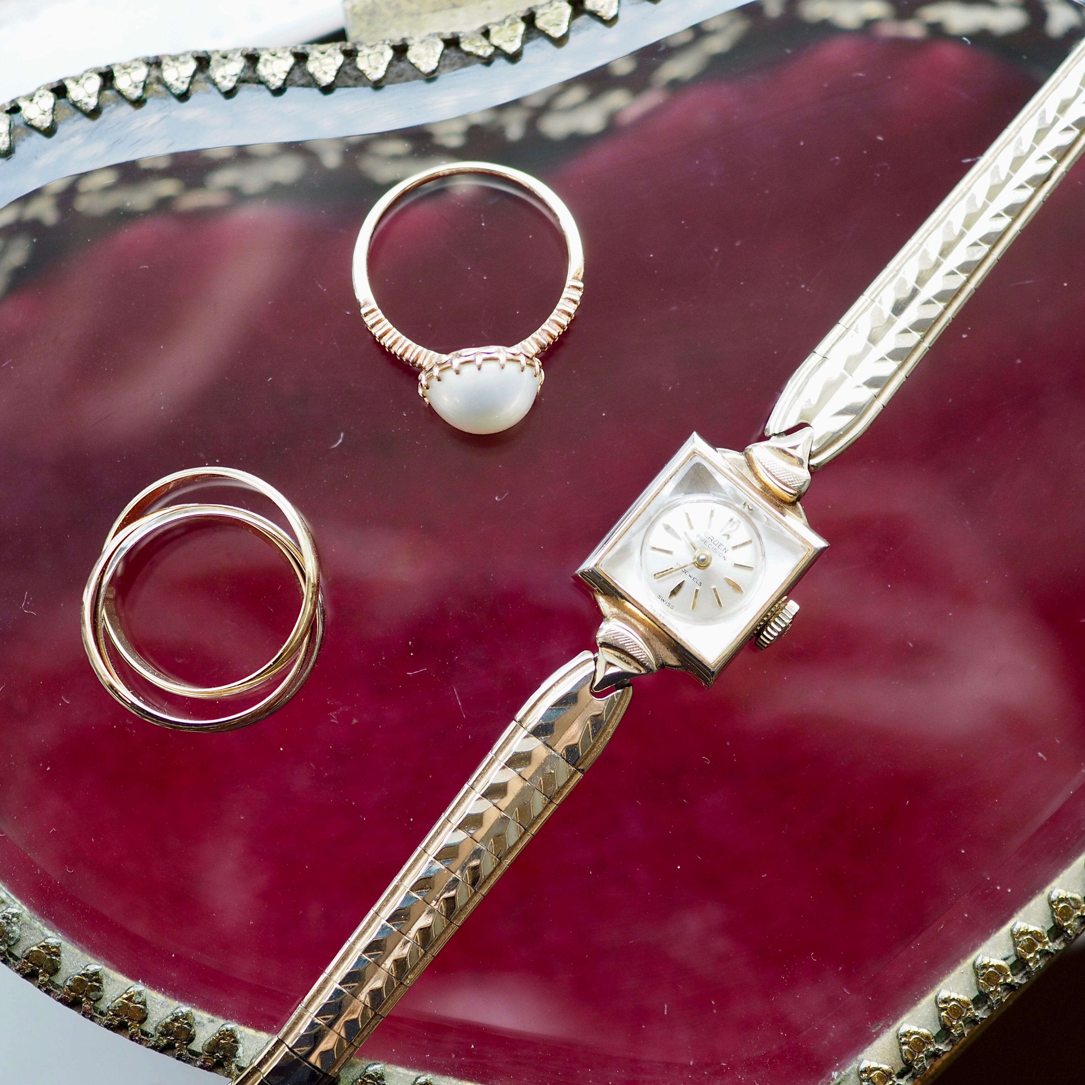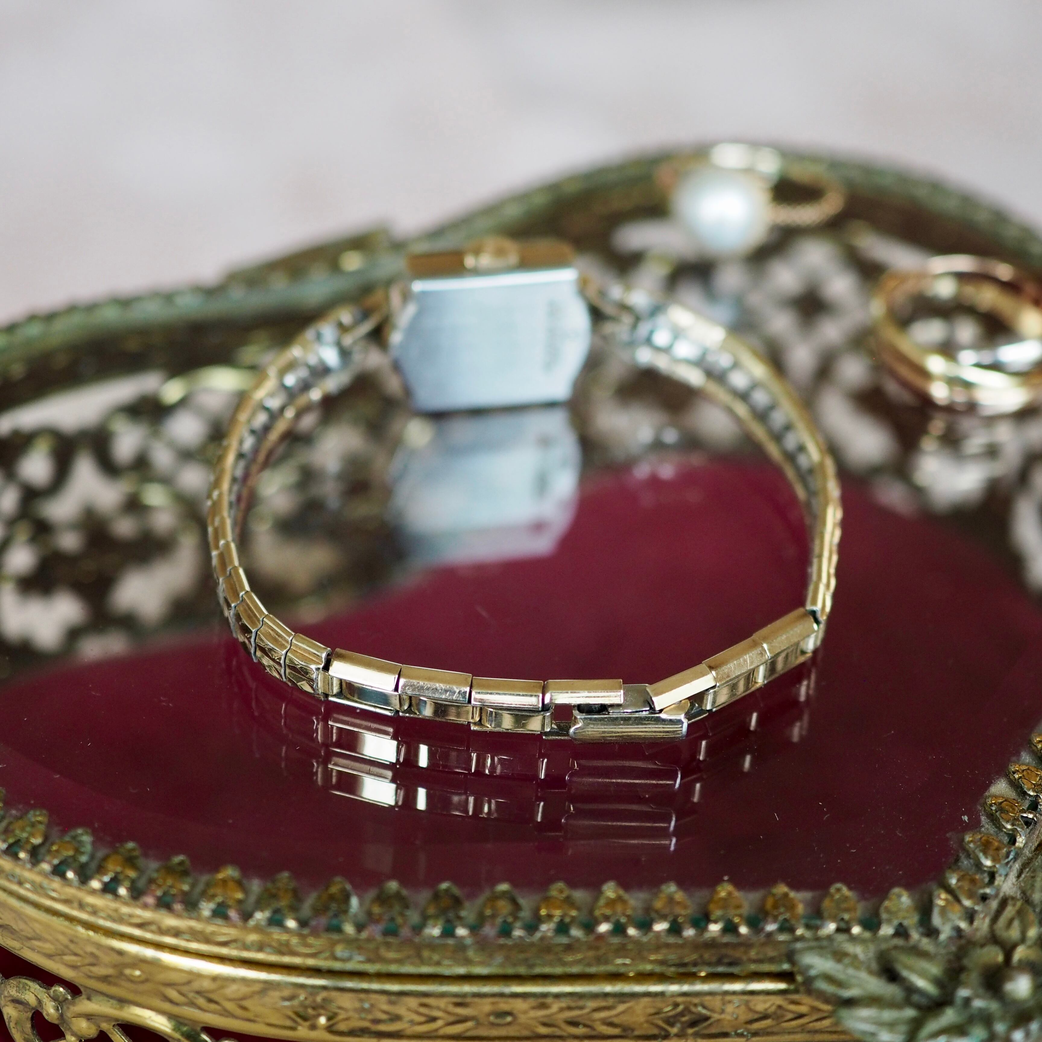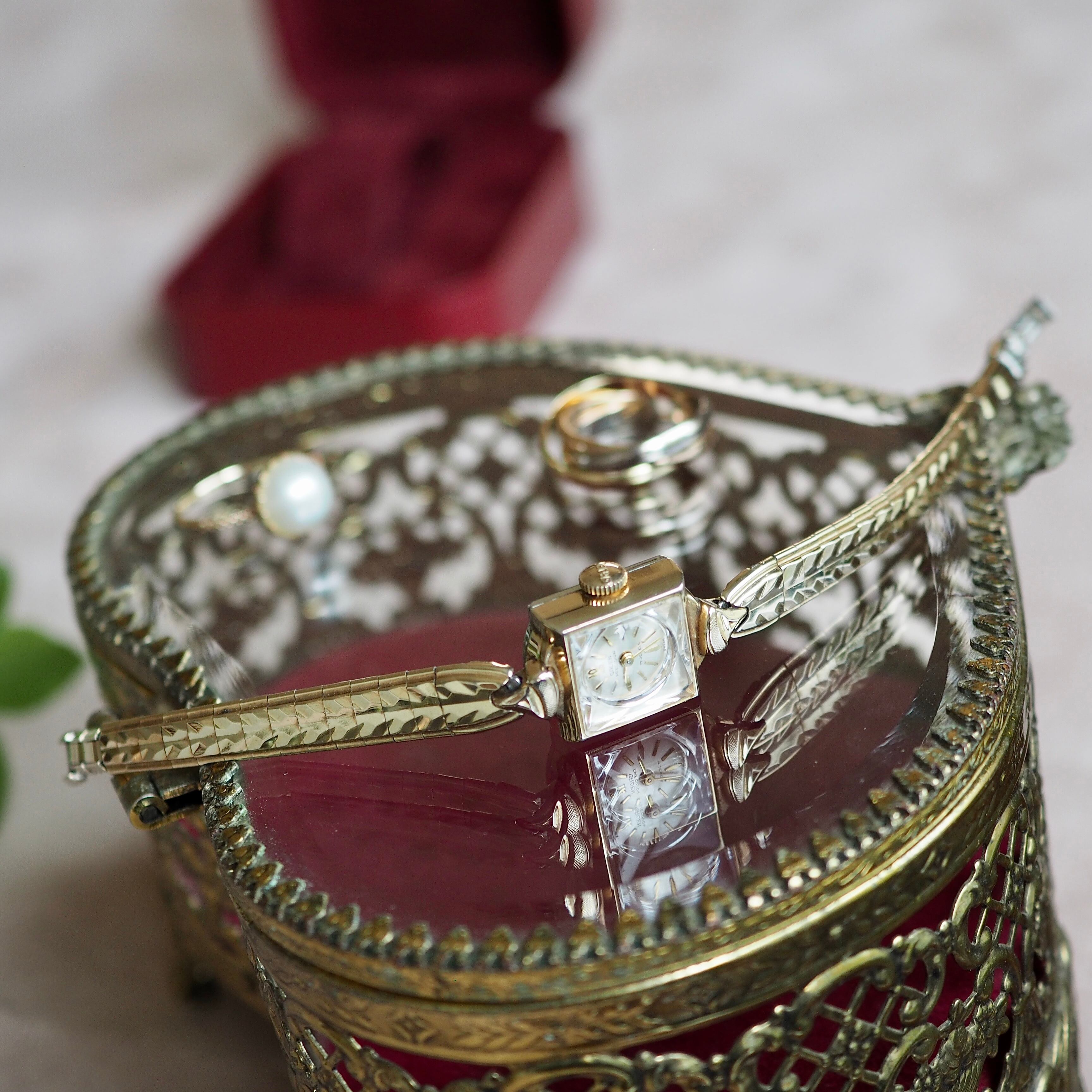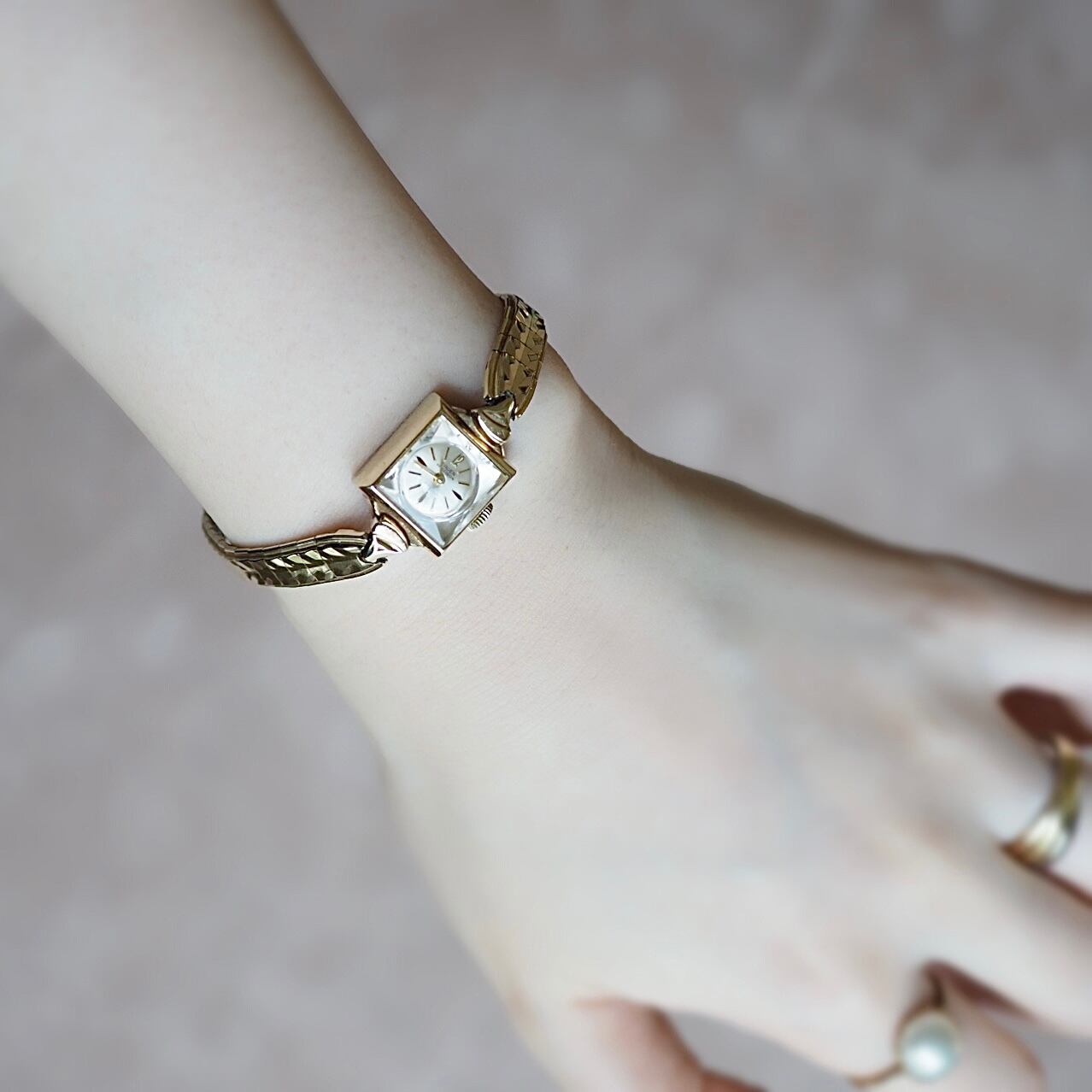 アンティークならではの小振りのサイズ感が大変可愛いです♪ 華奢な本体&ベルトはキラキラと手元を美しく輝かせます。