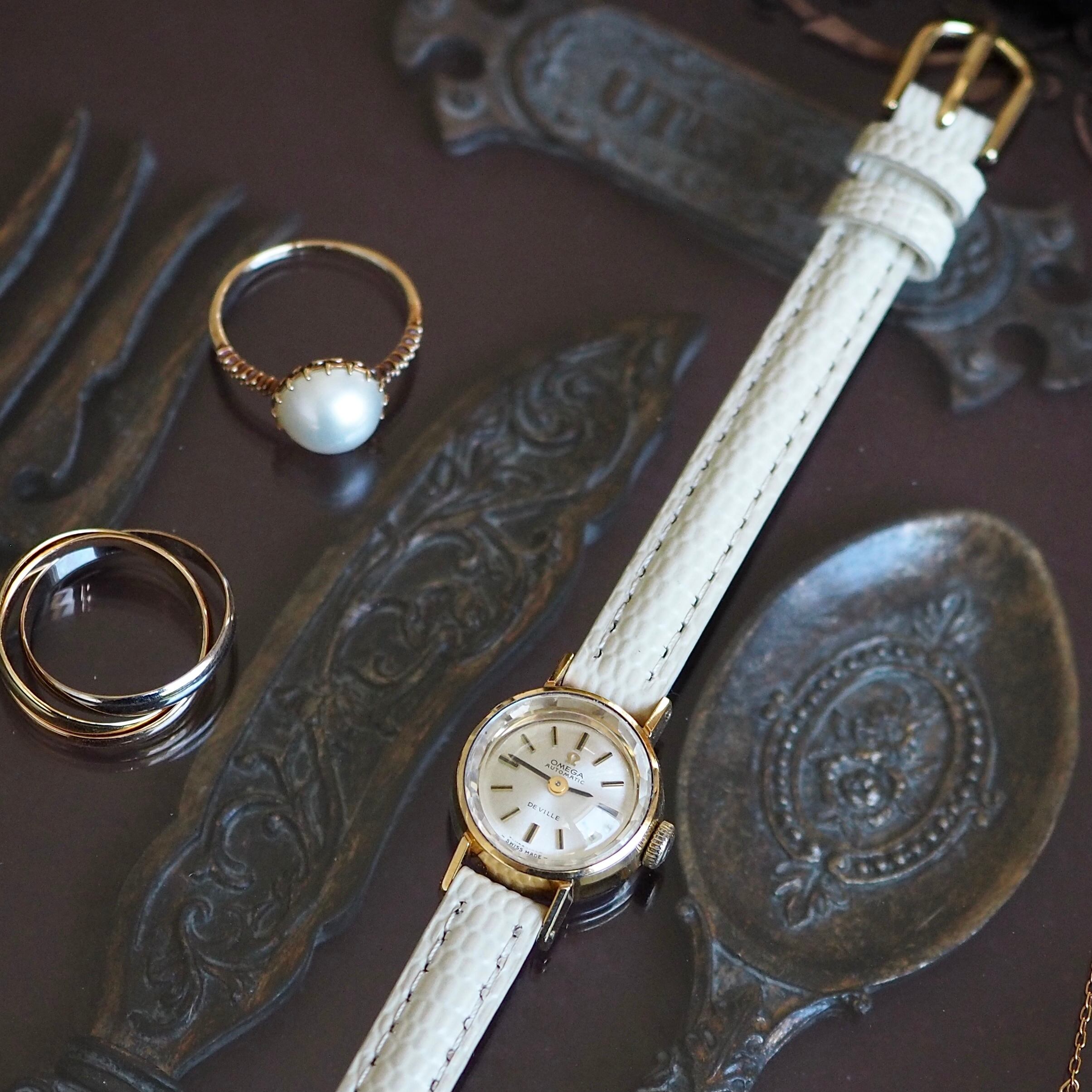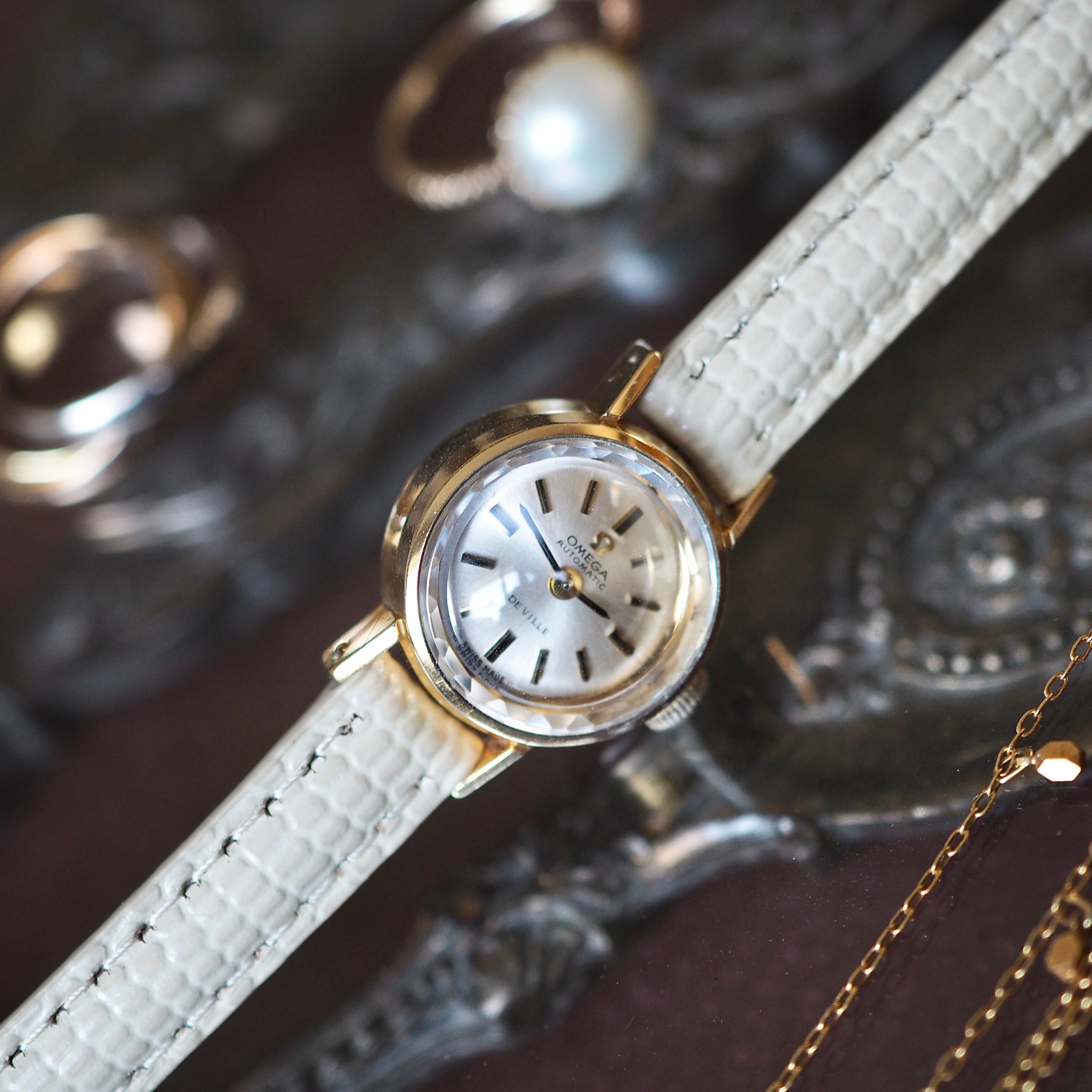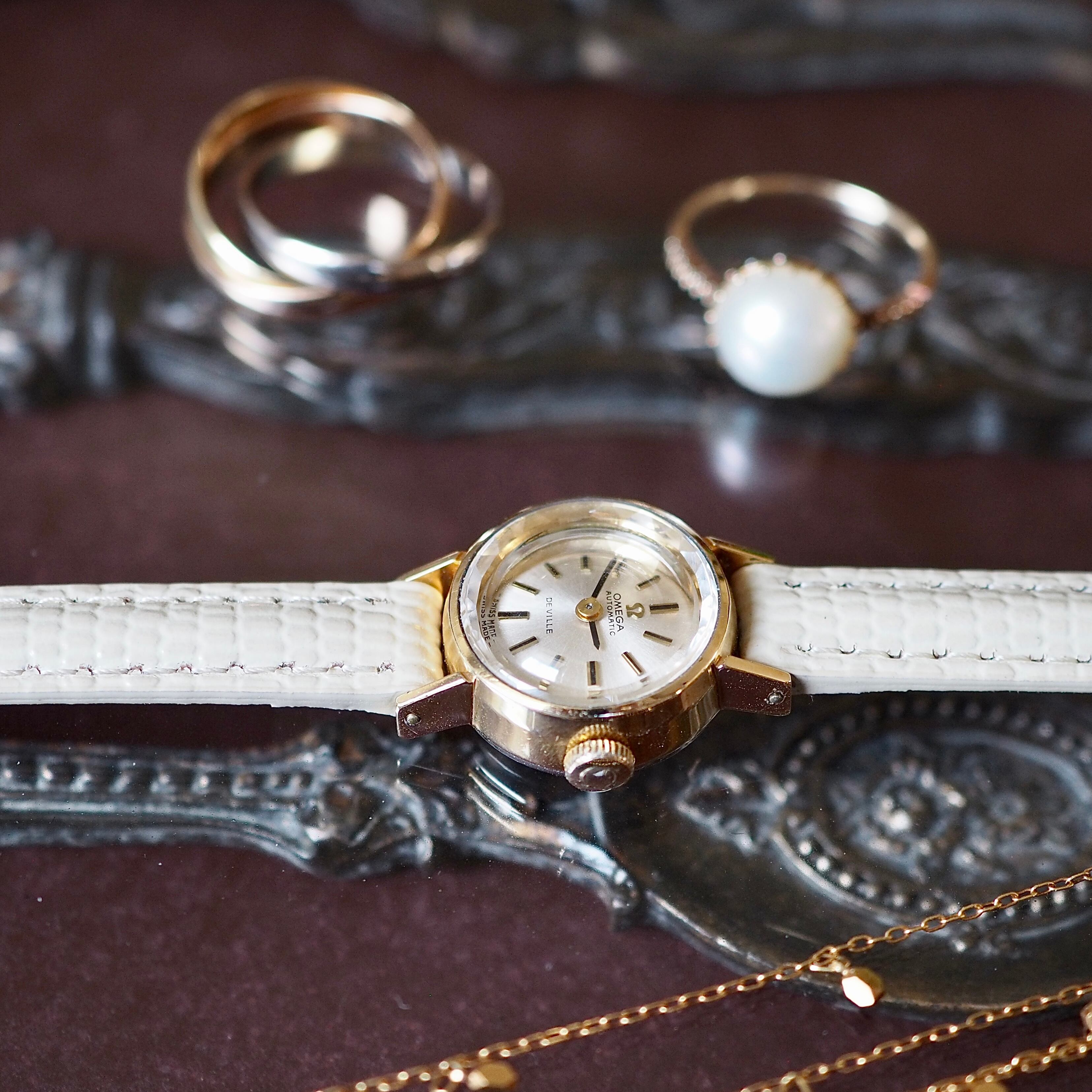 アンティークオメガならではの小振りのサイズ感が大変可愛いく、ジュエリーのようなきらめきは腕元を素敵に彩ってくれます。