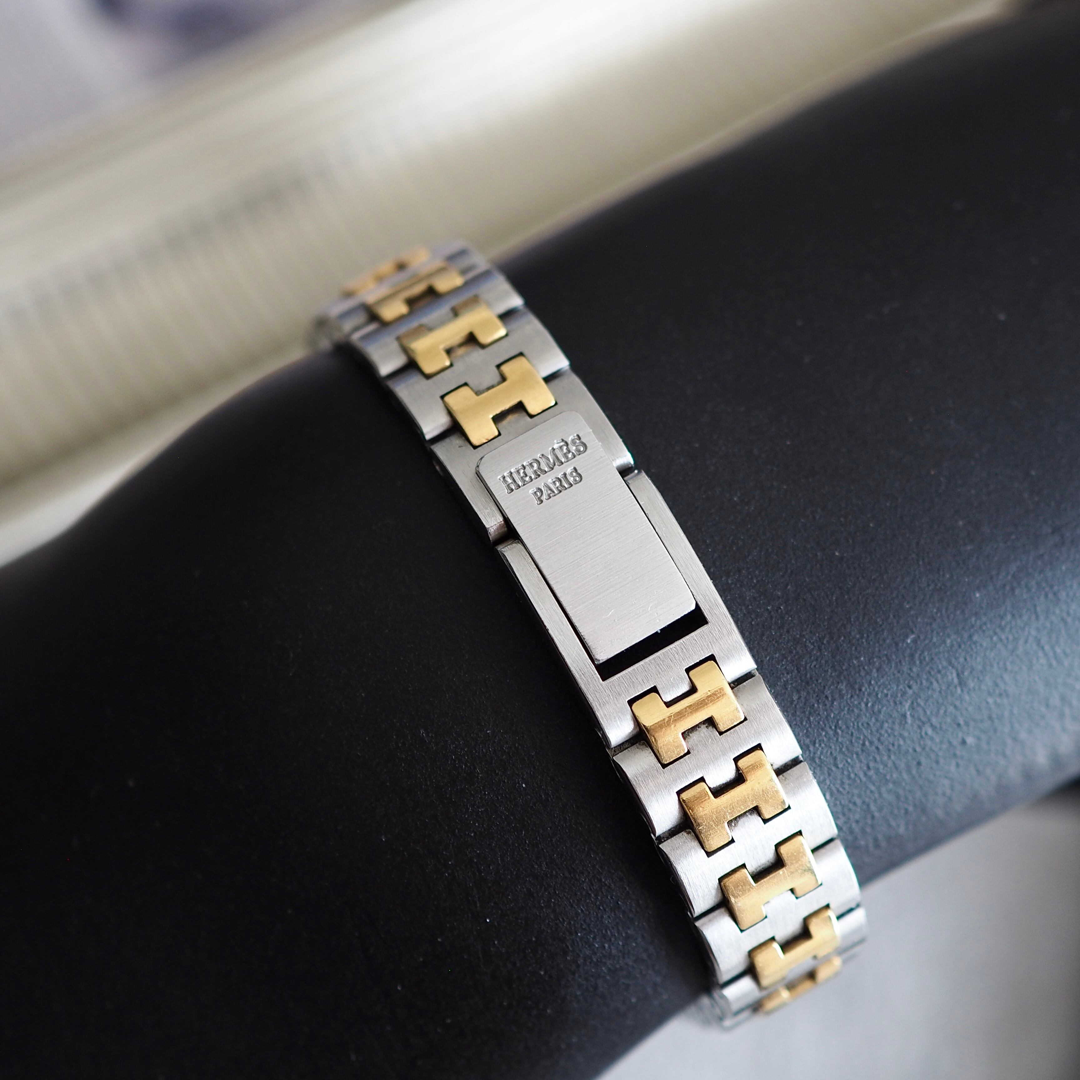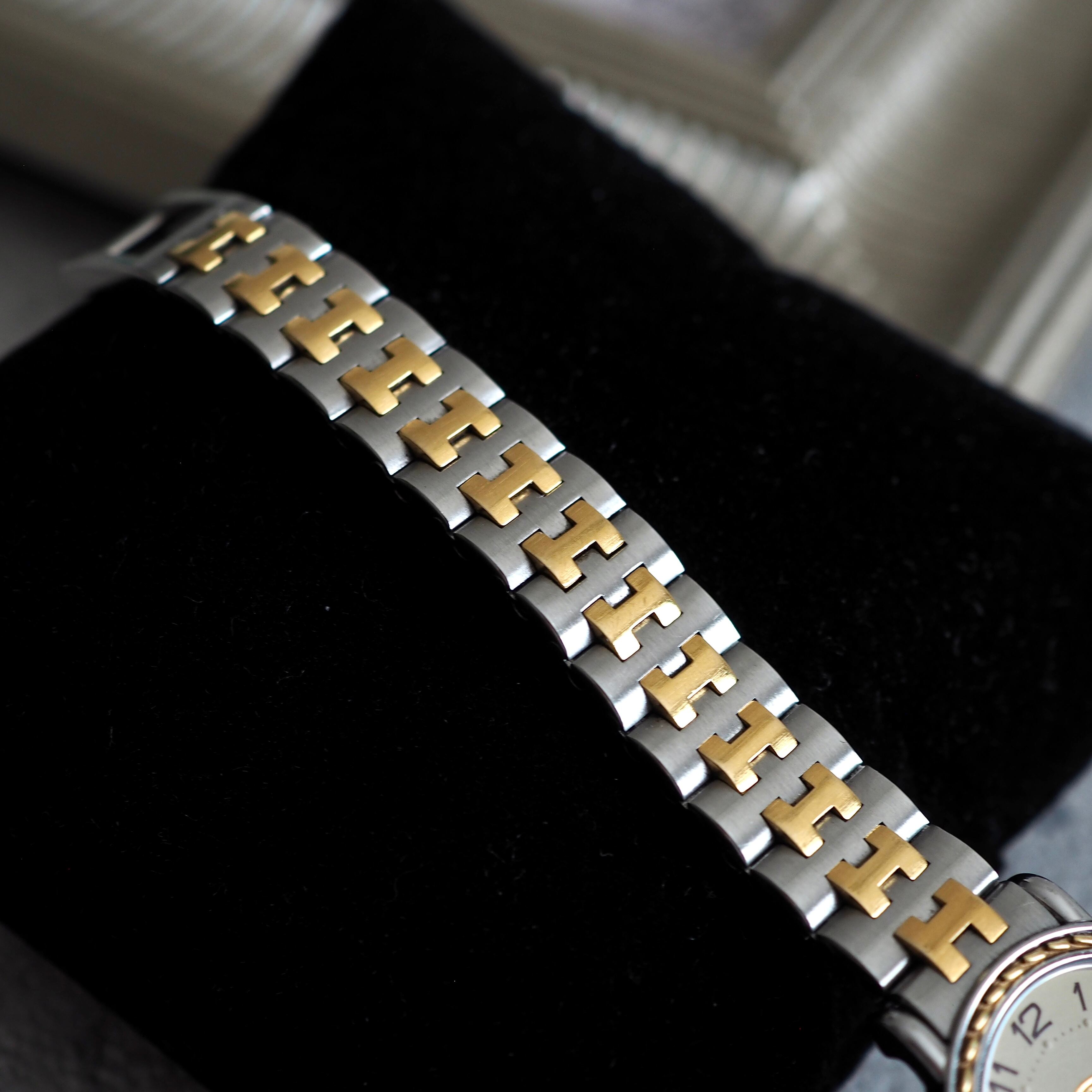 ベゼルにゴールドのステッチ模様を施したエルメスらしい上品で高級感漂う洗練されたデザインです。