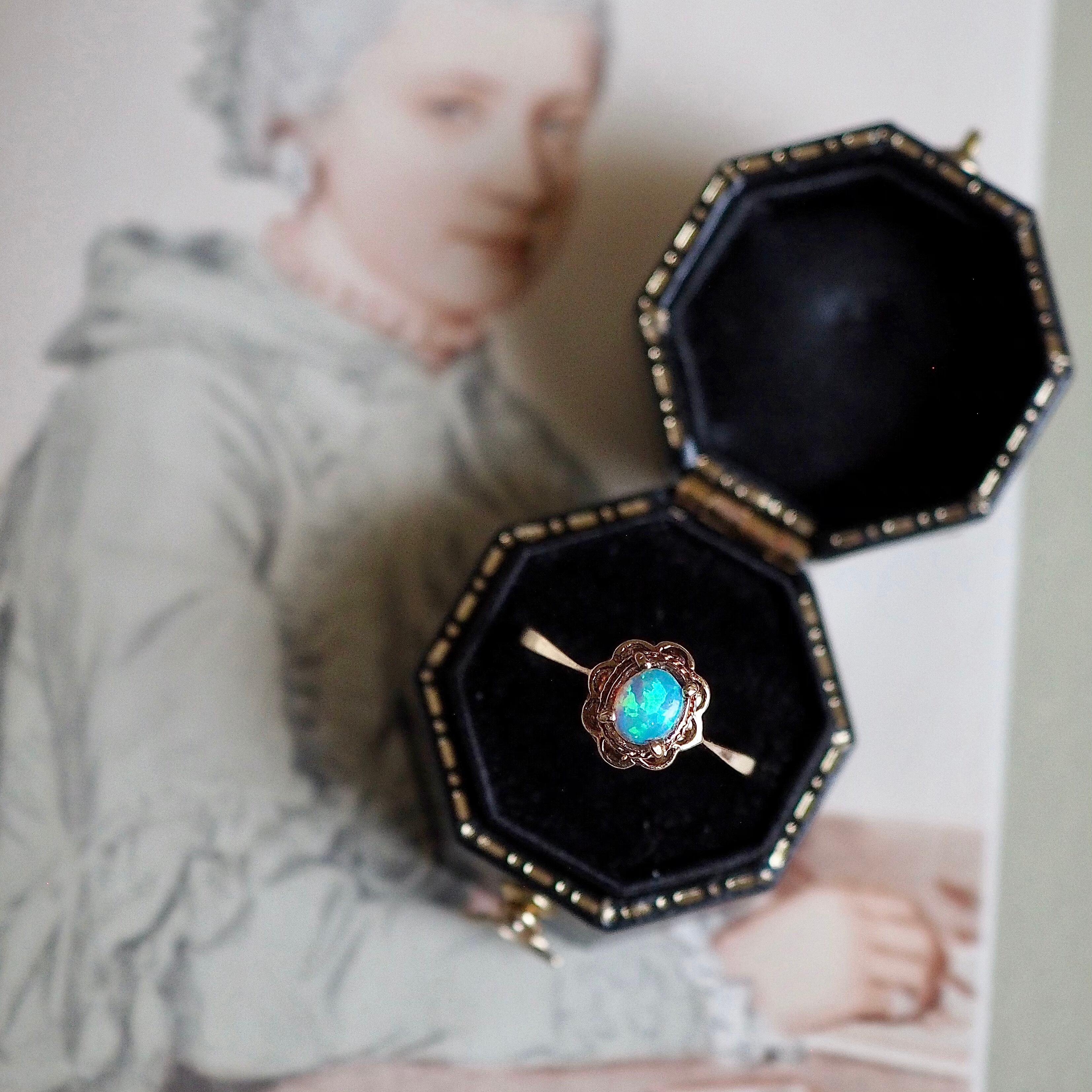 プラネットブルーのネオン感が強く美しい、オパールのヴィンテージリングです。