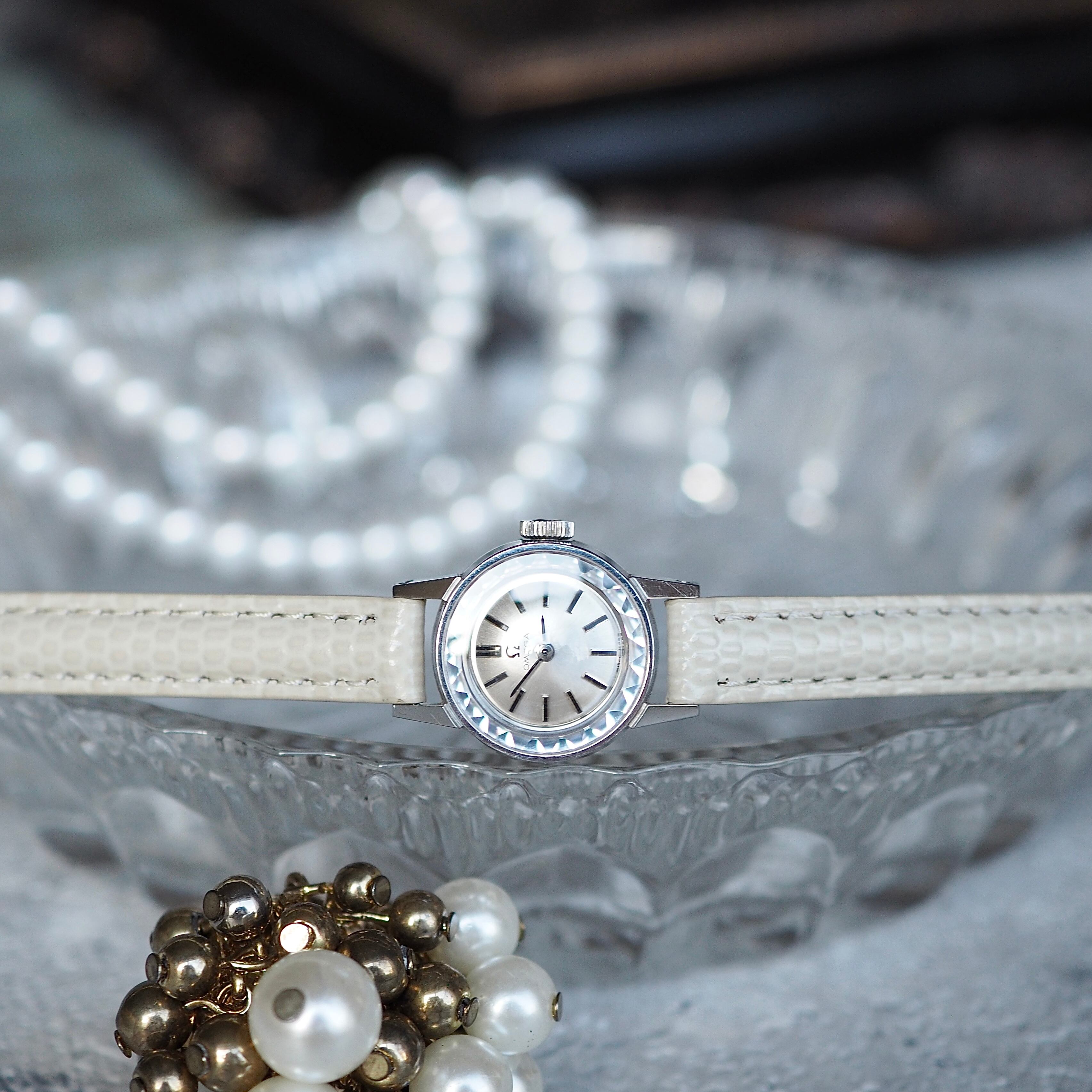 レディース アンティーク・オメガのアイコンとも言える人気のサファイアカットガラスの時計です。