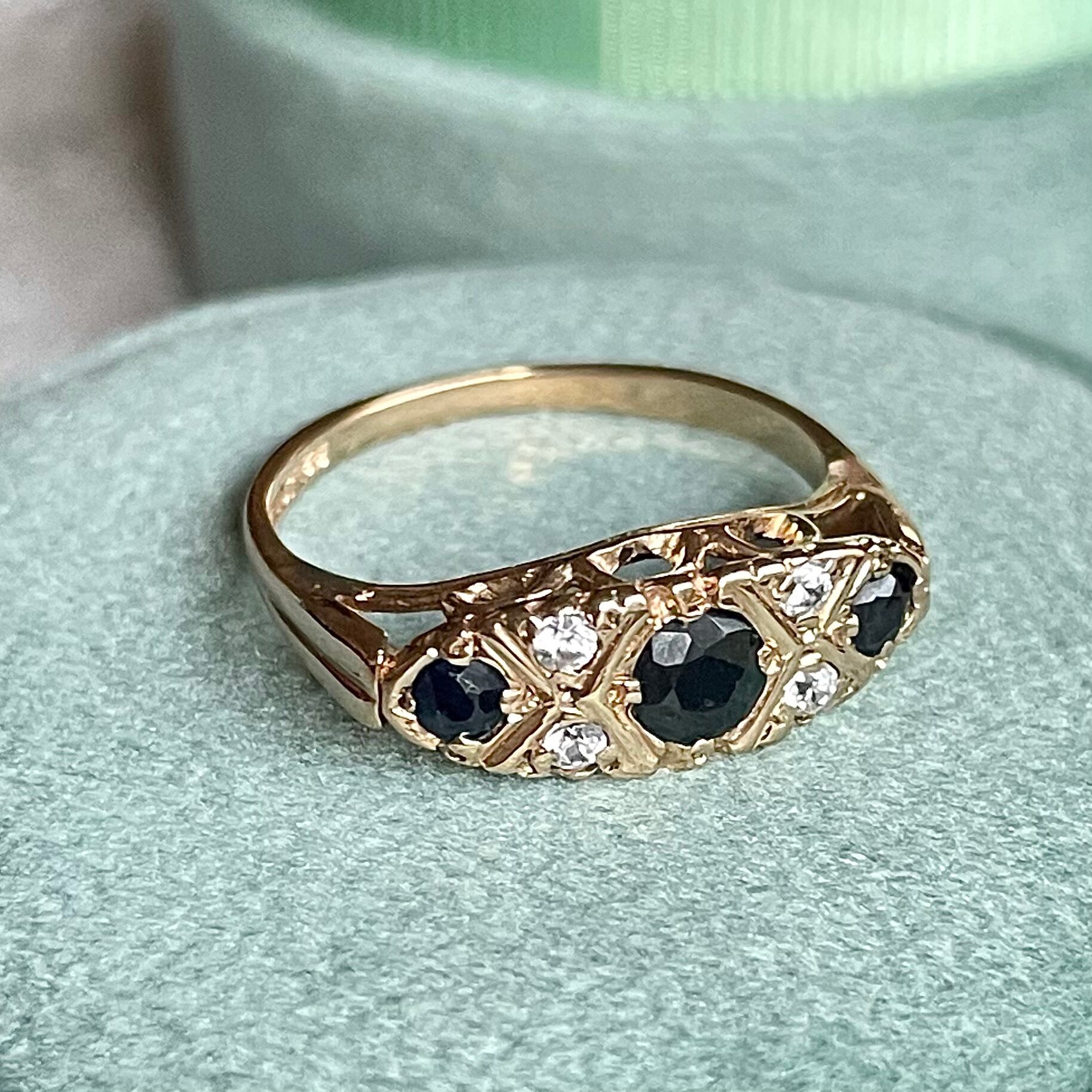 イギリス ヴィンテージリング 天然サファイア×ダイヤモンド