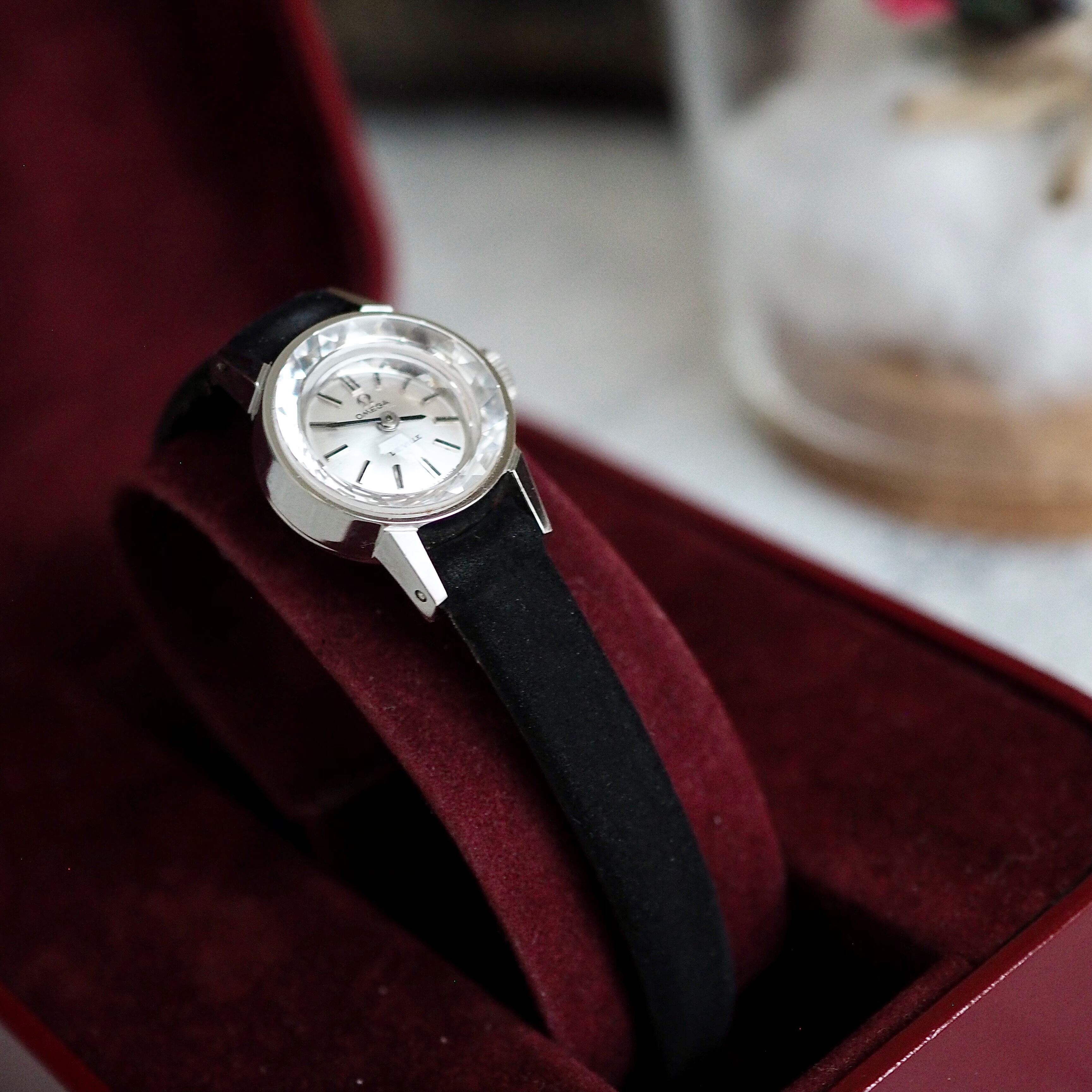 レディース アンティーク・オメガのアイコンとも言える人気のサファイアカットガラスの時計です。