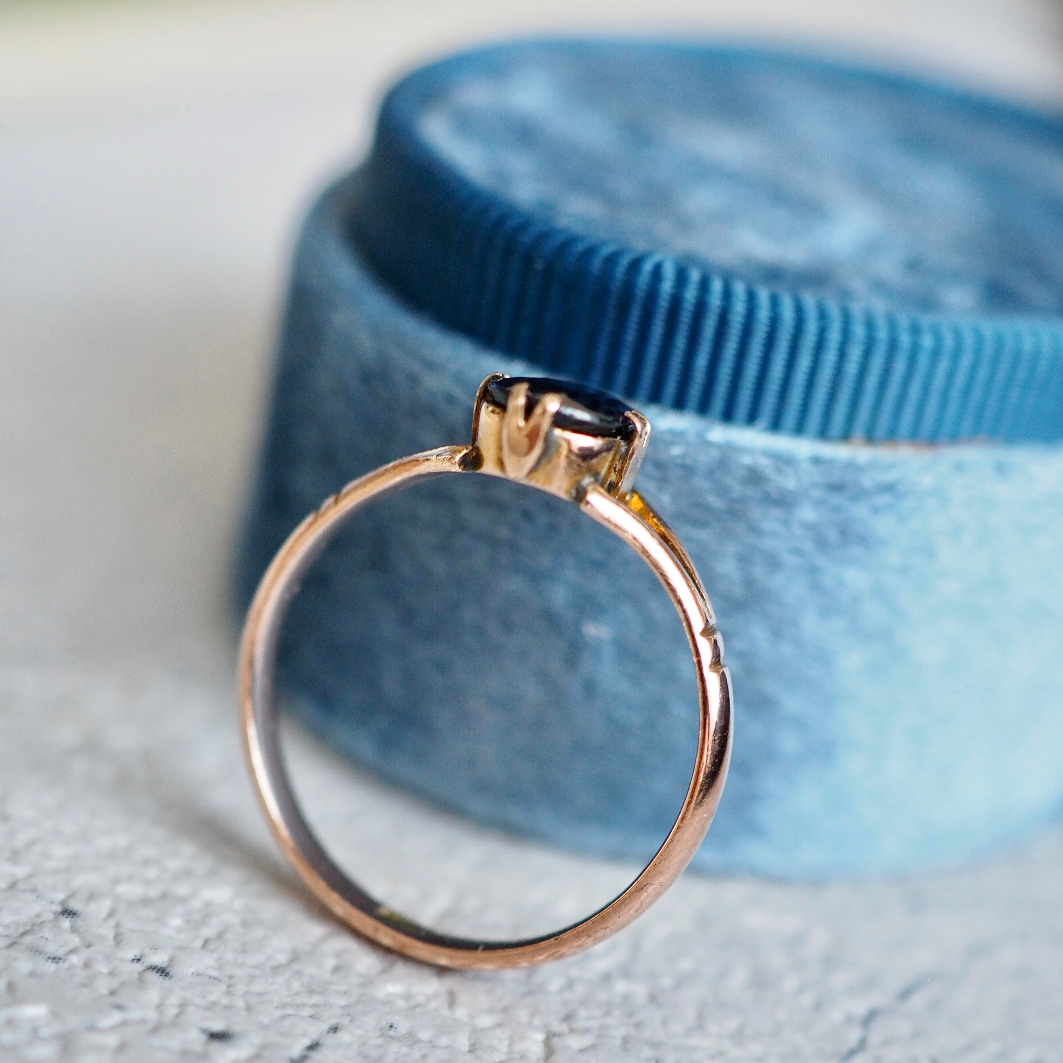 天然のジュエルはインクルージョンにより曇ったようになってしまう事もありますが、こちらは曇りなく凛としており知的な印象を受けます。サファイアらしい鏡面の照り返しが美しいです。