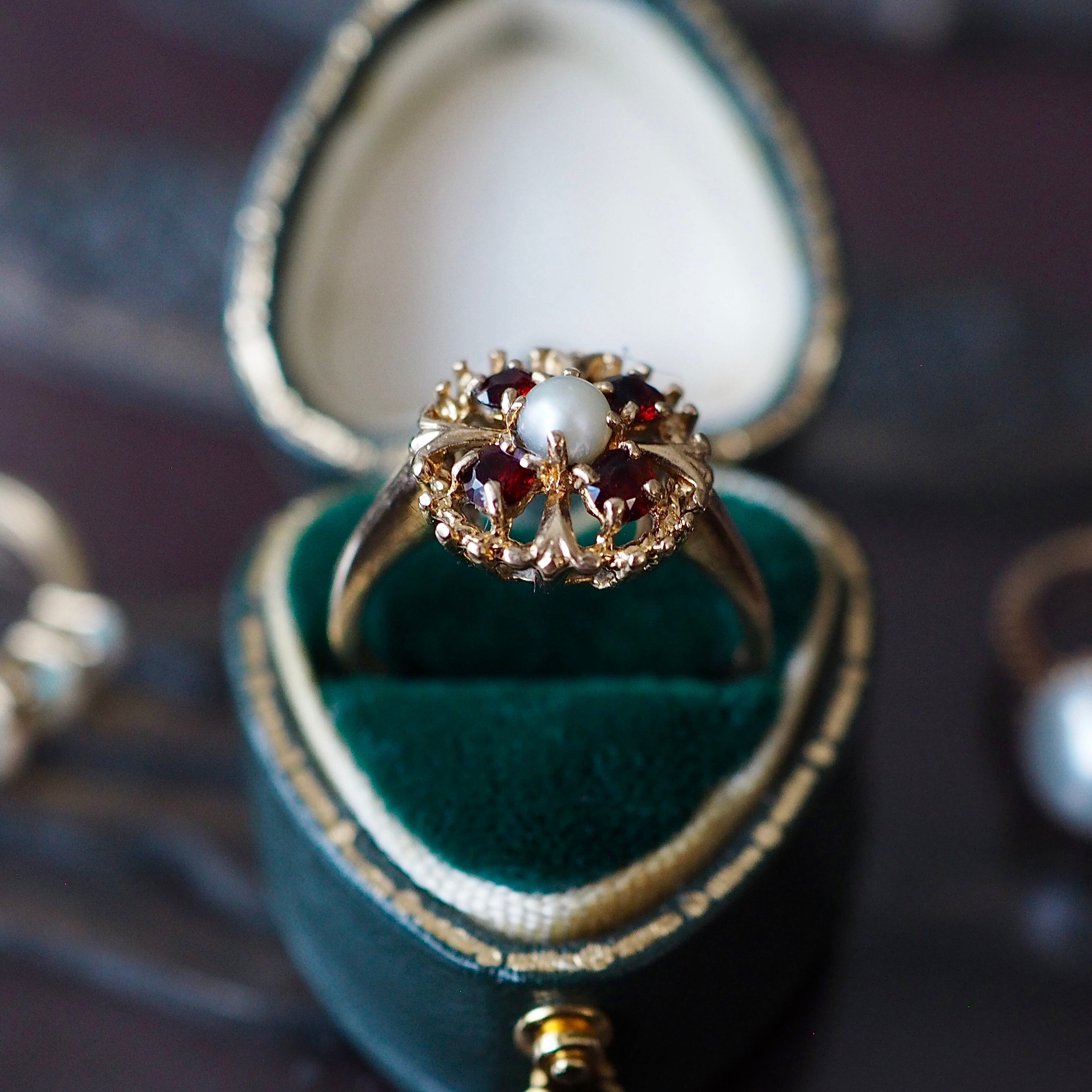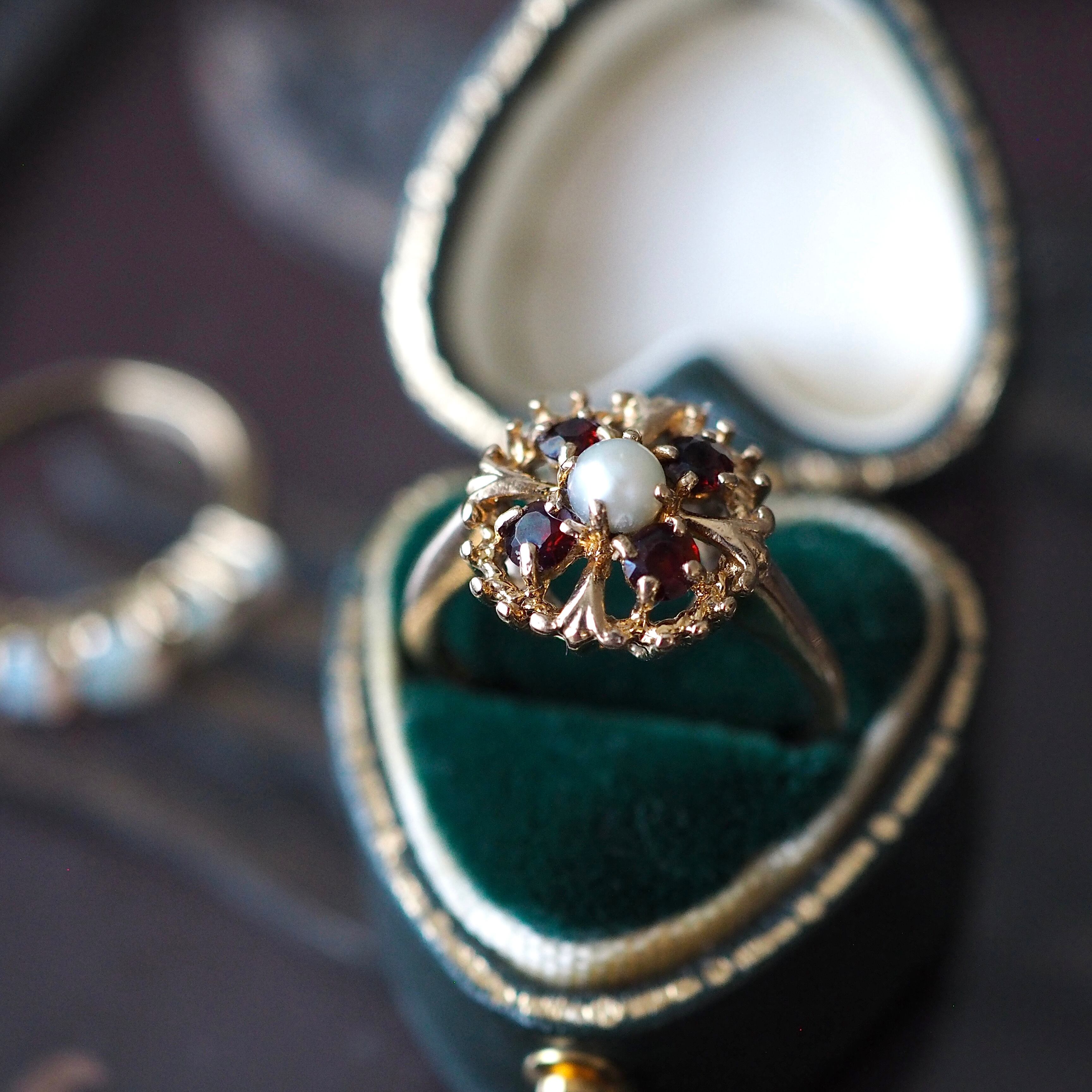イギリス ヴィンテージリング ガーネット×パール 英国