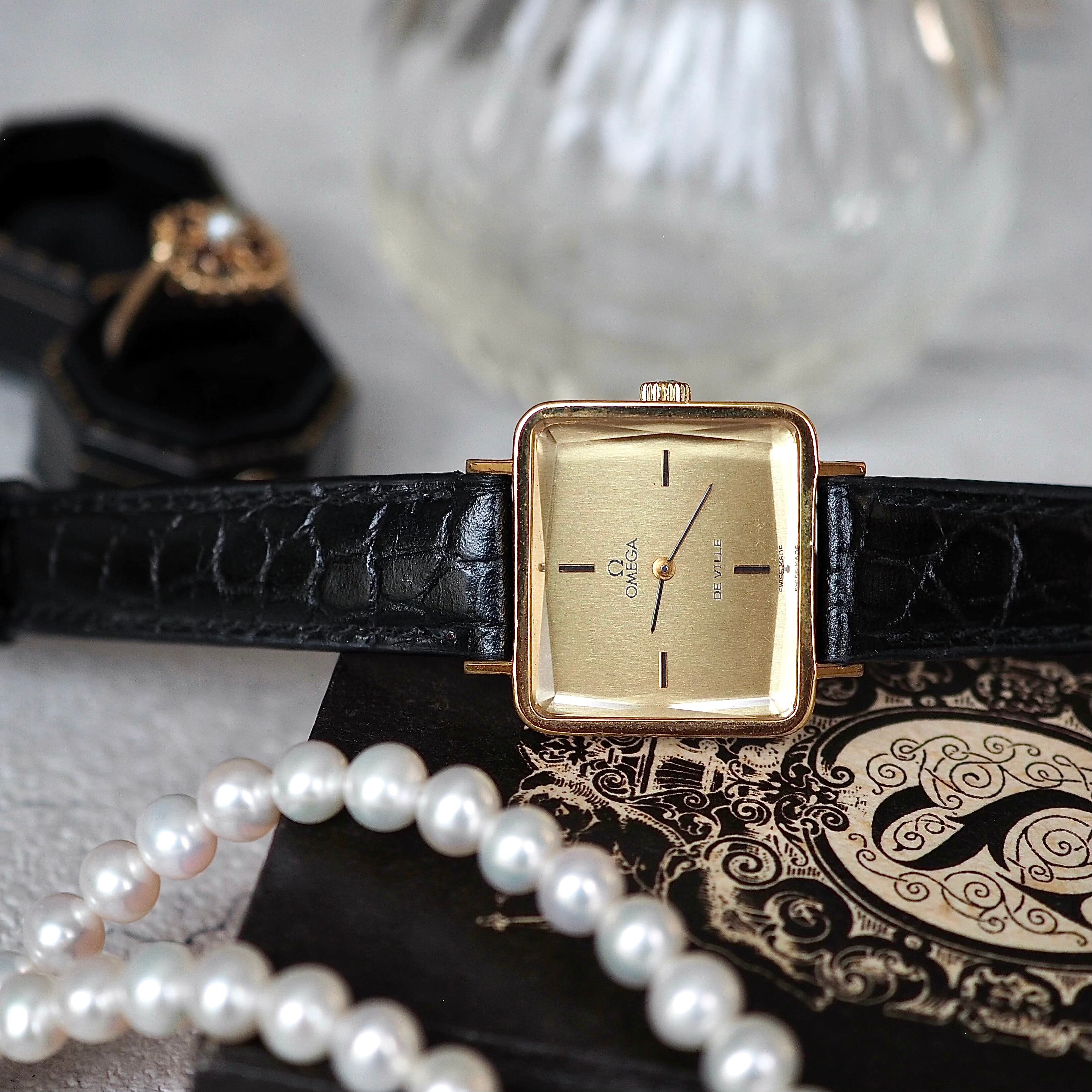 OMEGA オメガ グリマデザイン サファイアカットガラス アンティーク時計