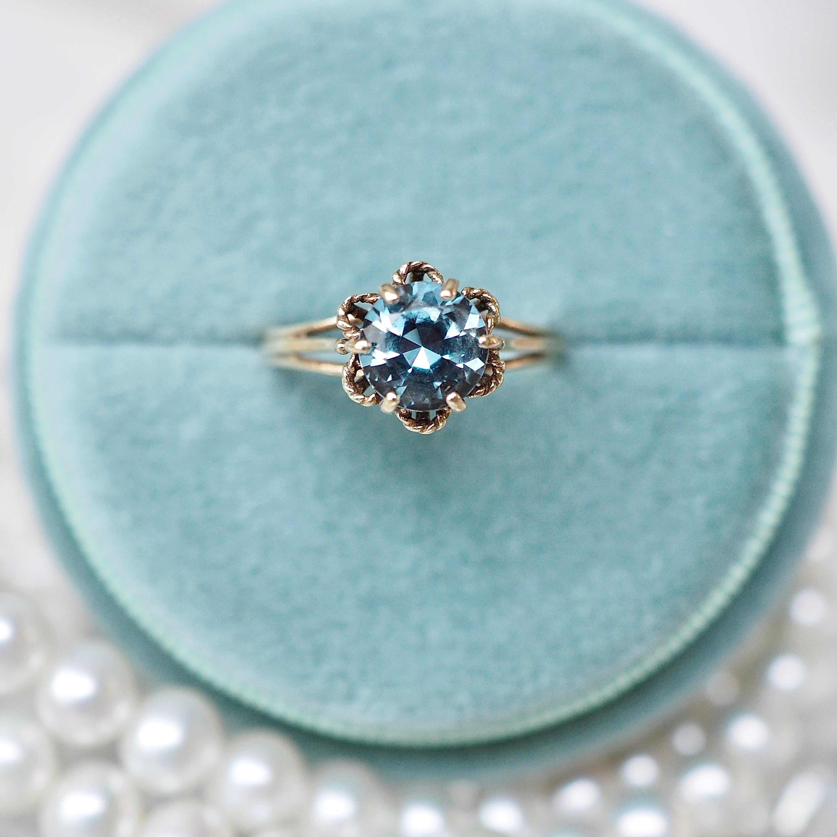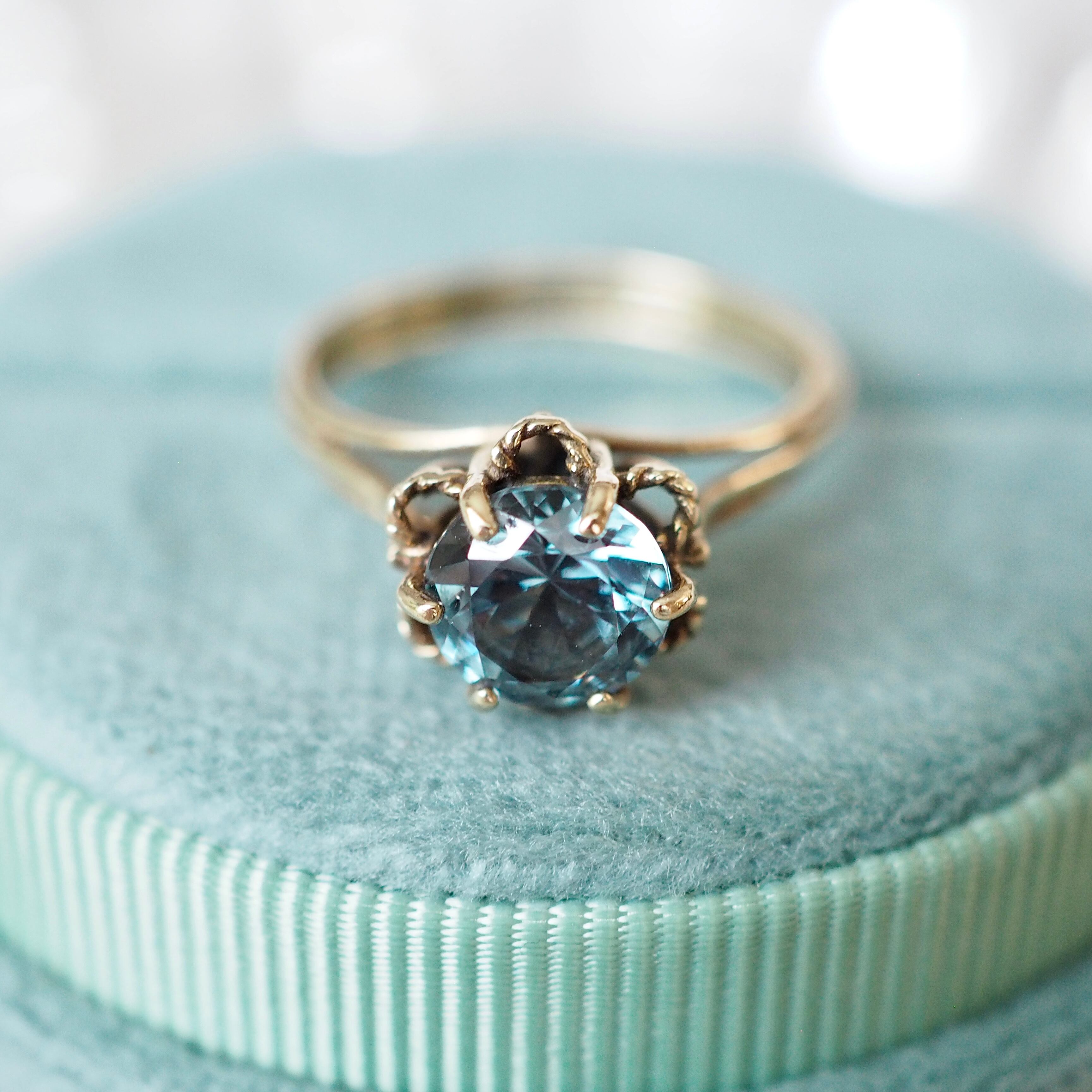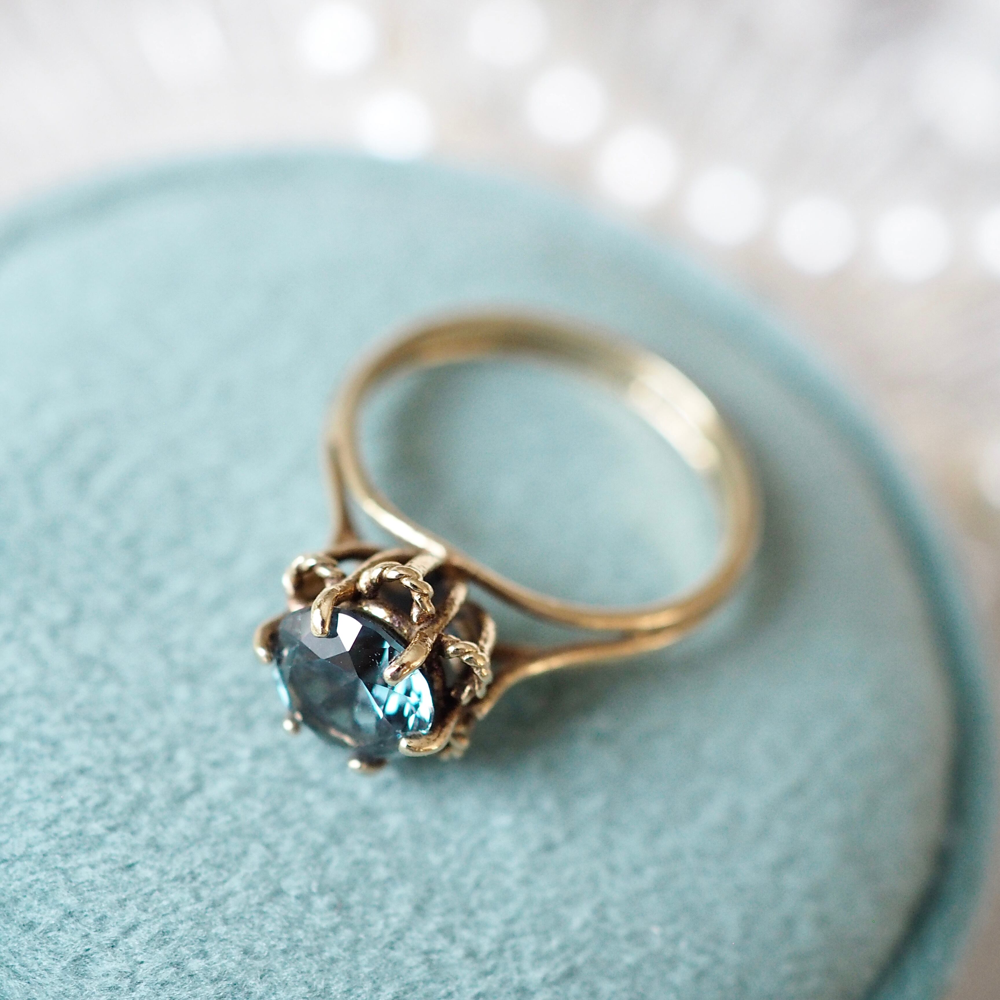 ブルートパーズのヴィンテージ ソリティアリングです。