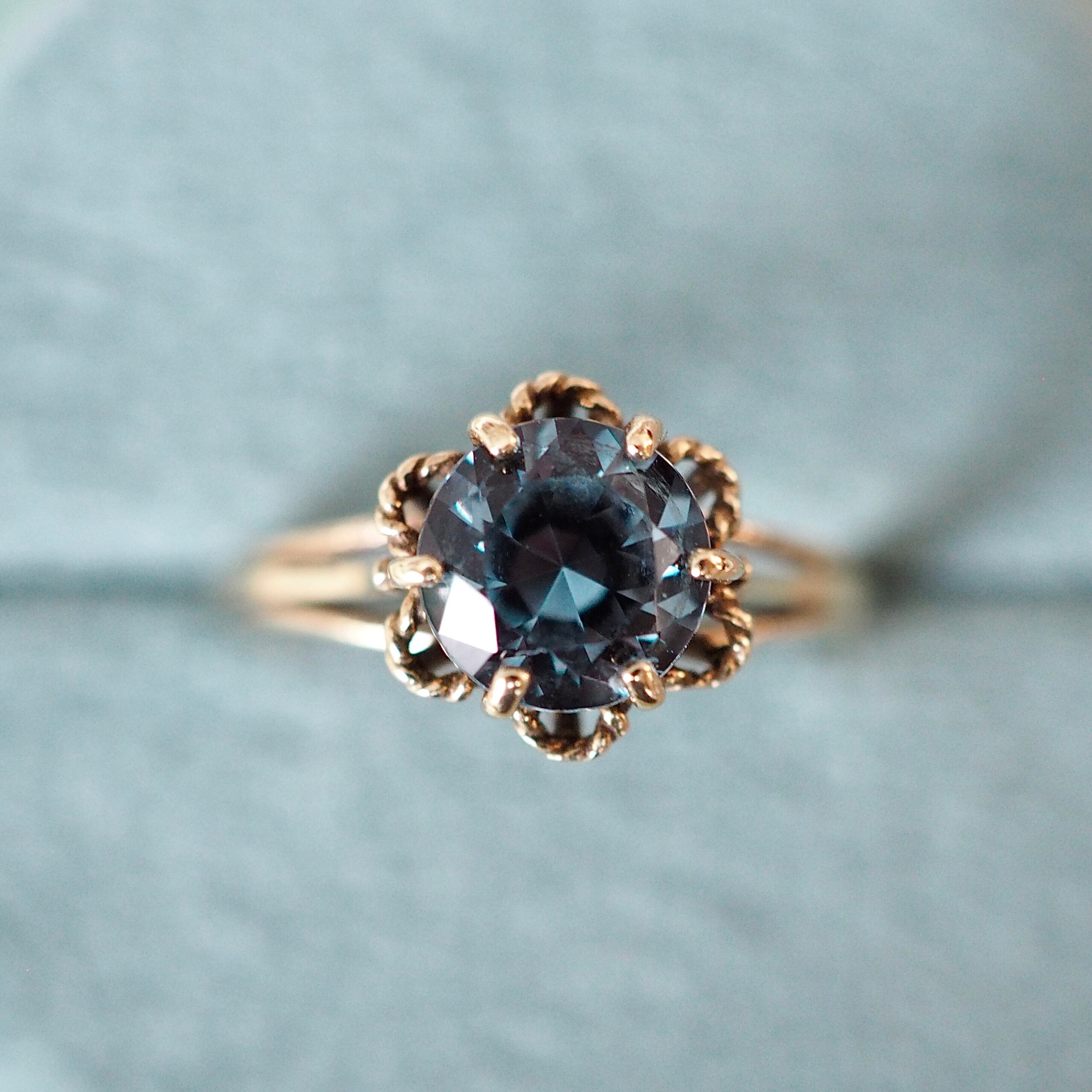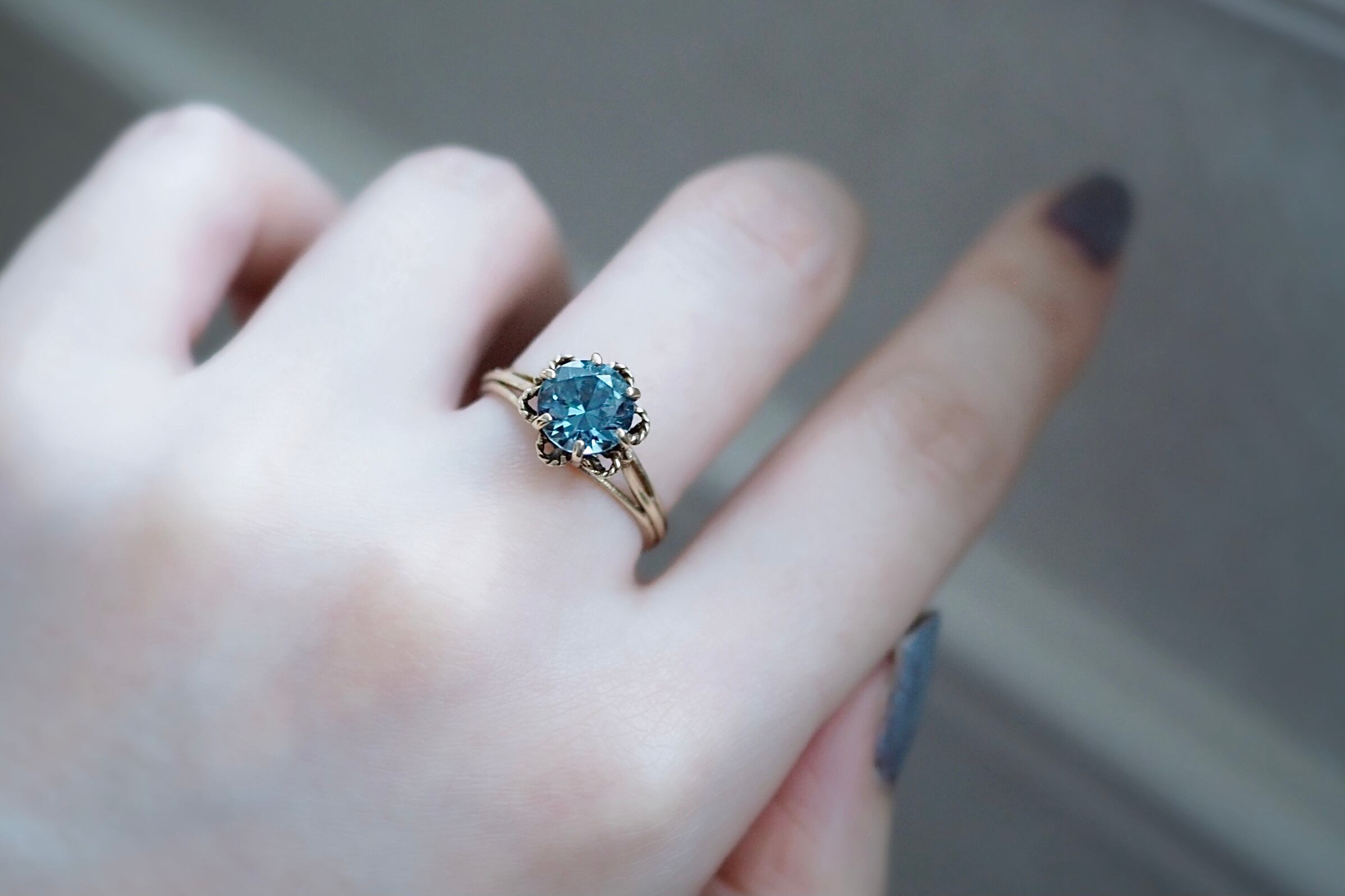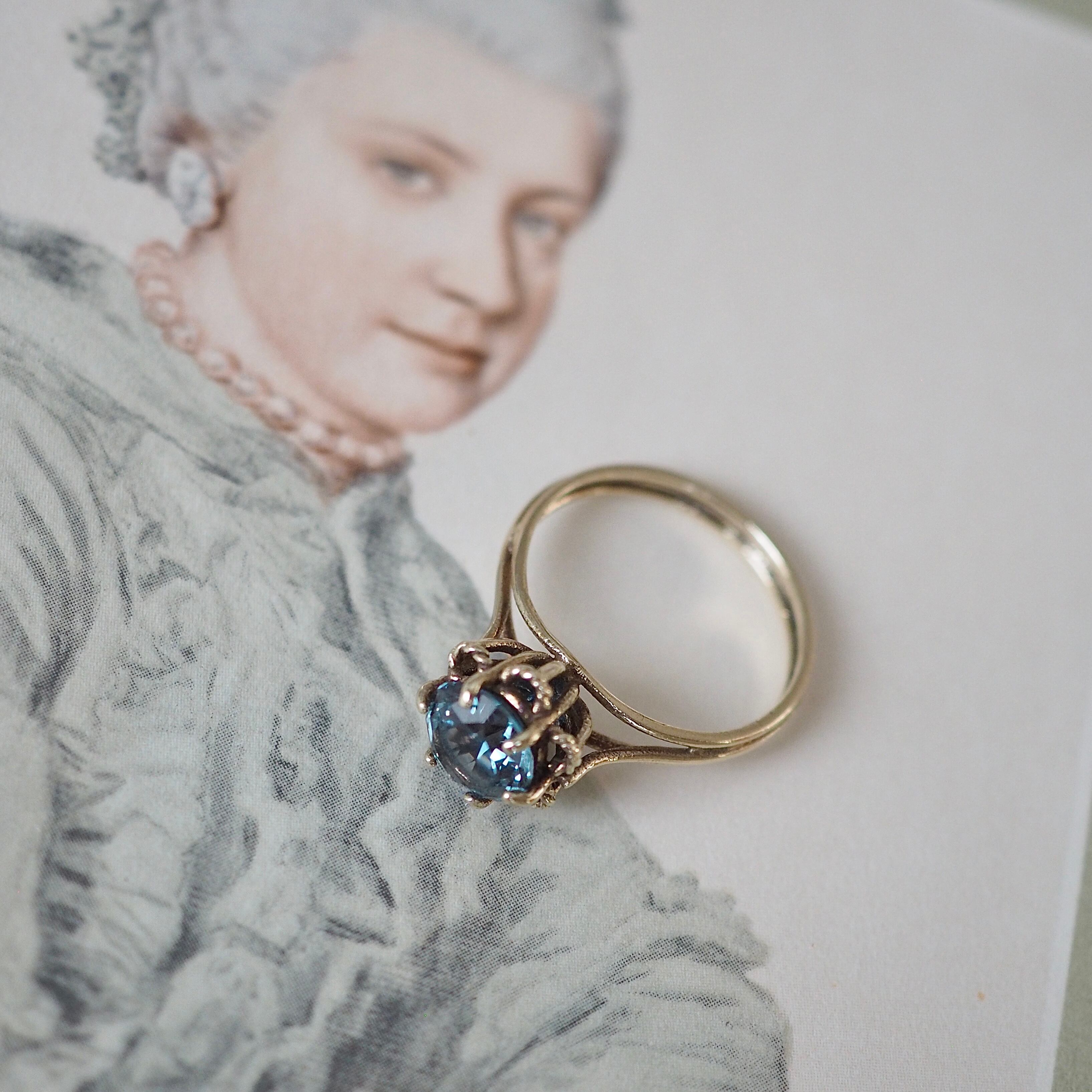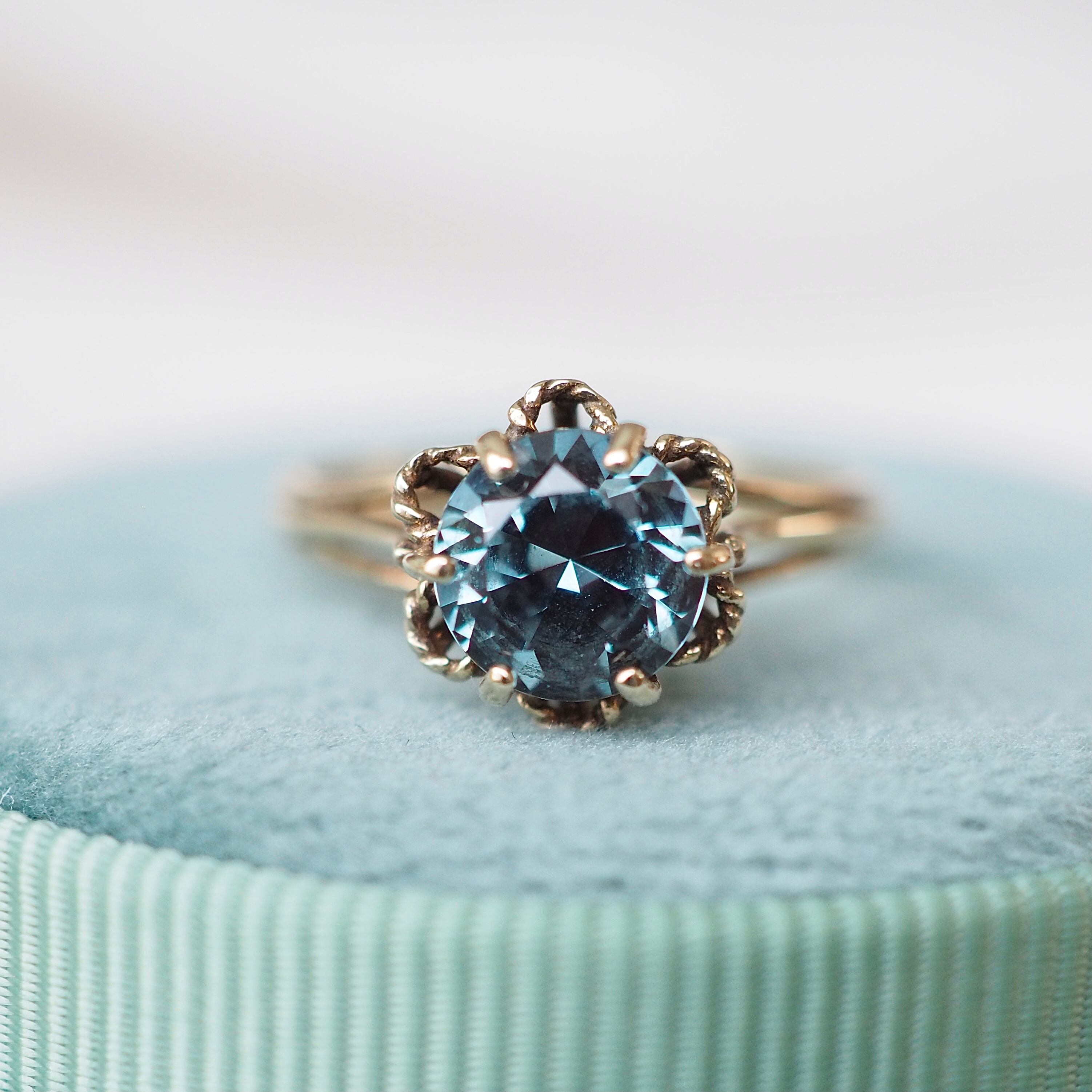 ブルートパーズのヴィンテージ ソリティアリングです。