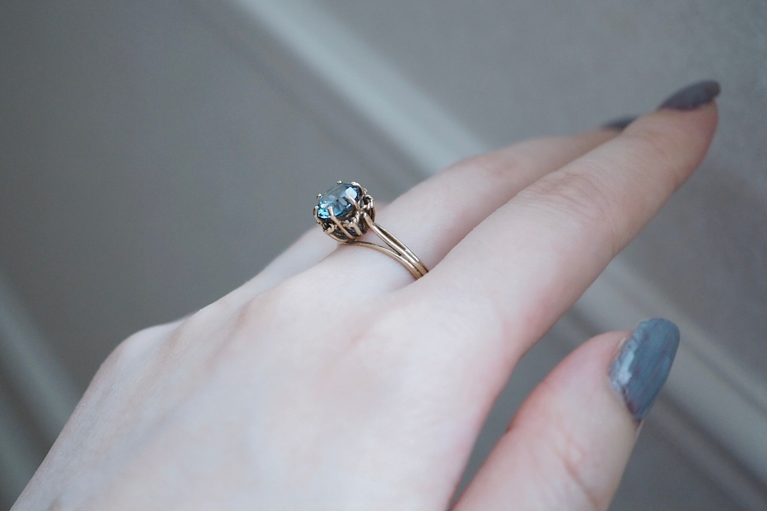 イギリス ヴィンテージ ブルートパーズ ソリティアリング