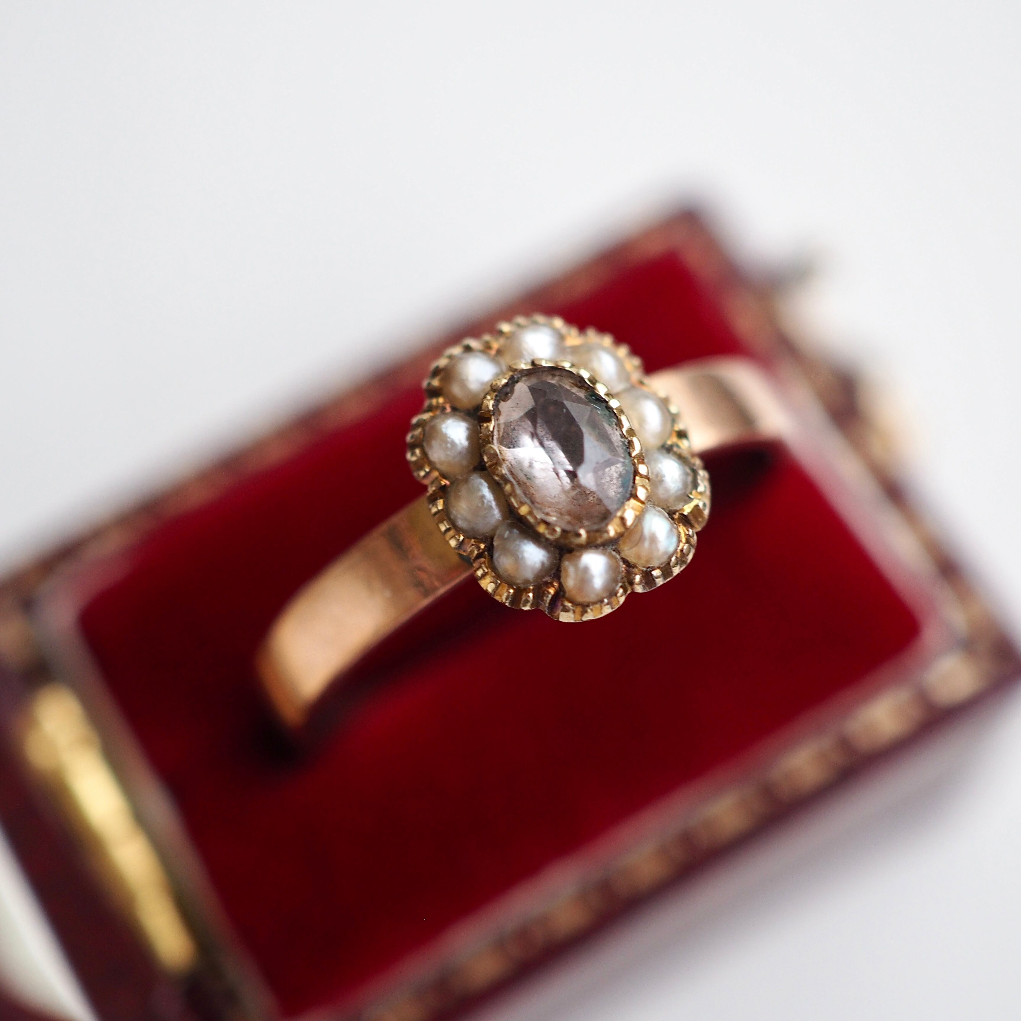 イギリス アンティークリング ヴィクトリアン トパーズ&シードパール