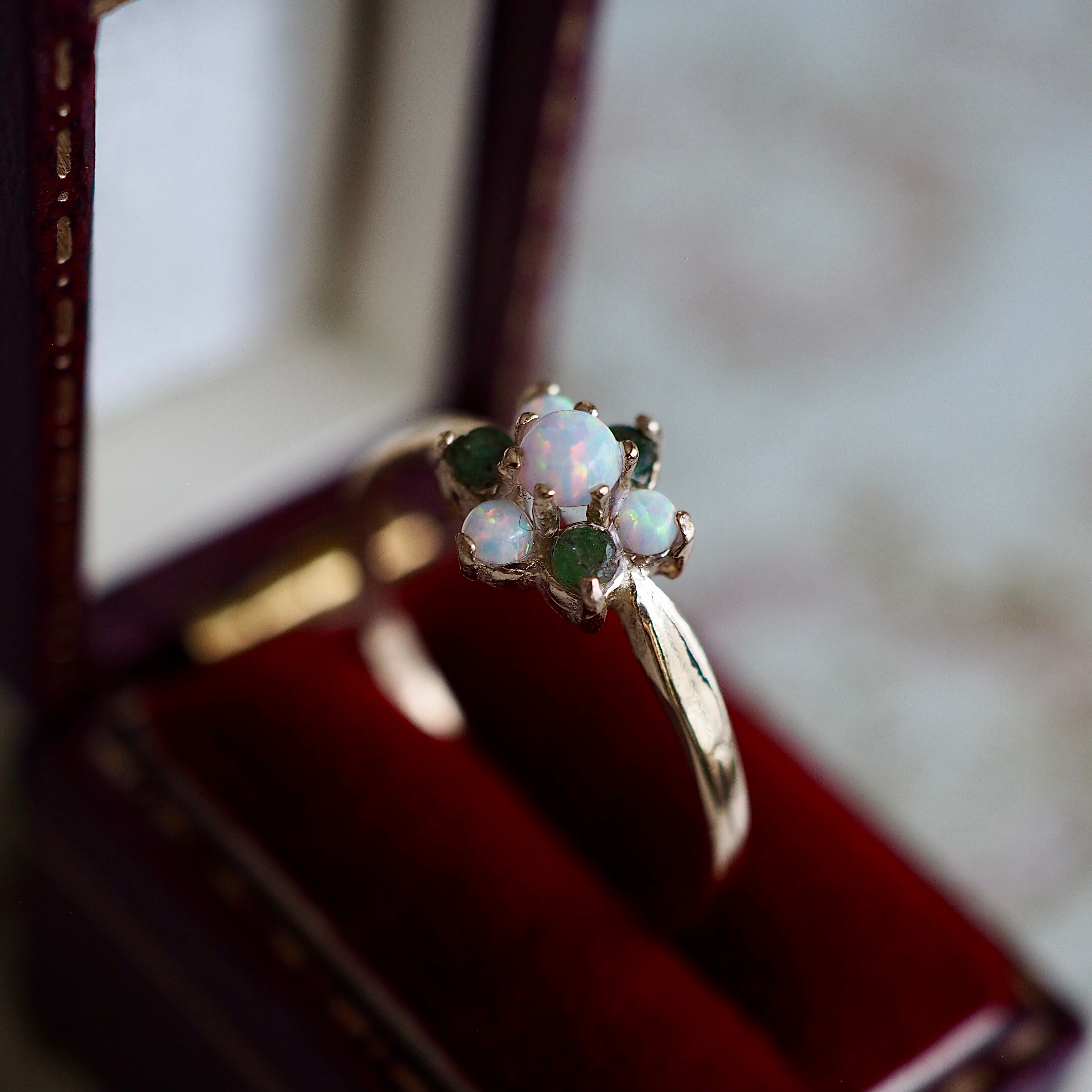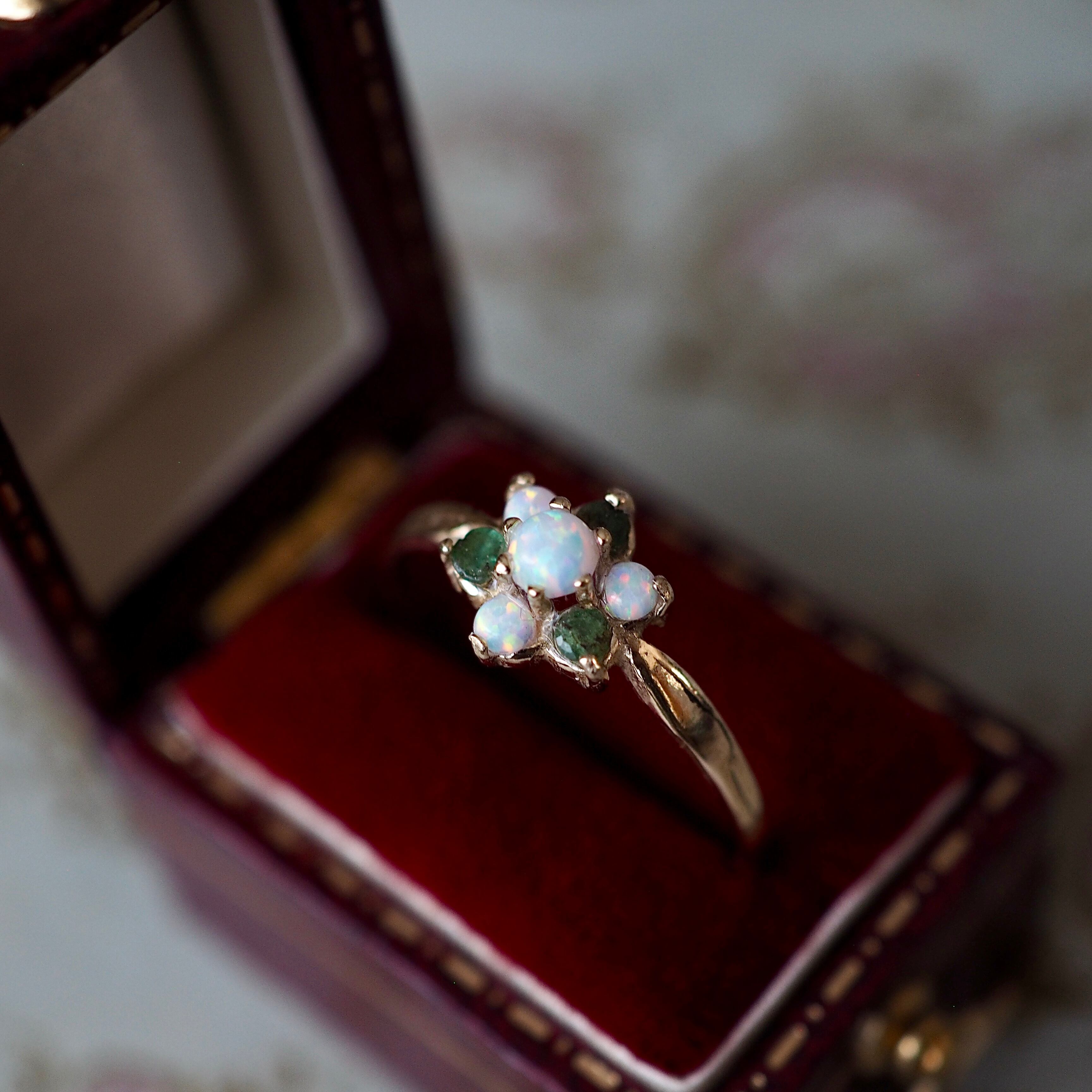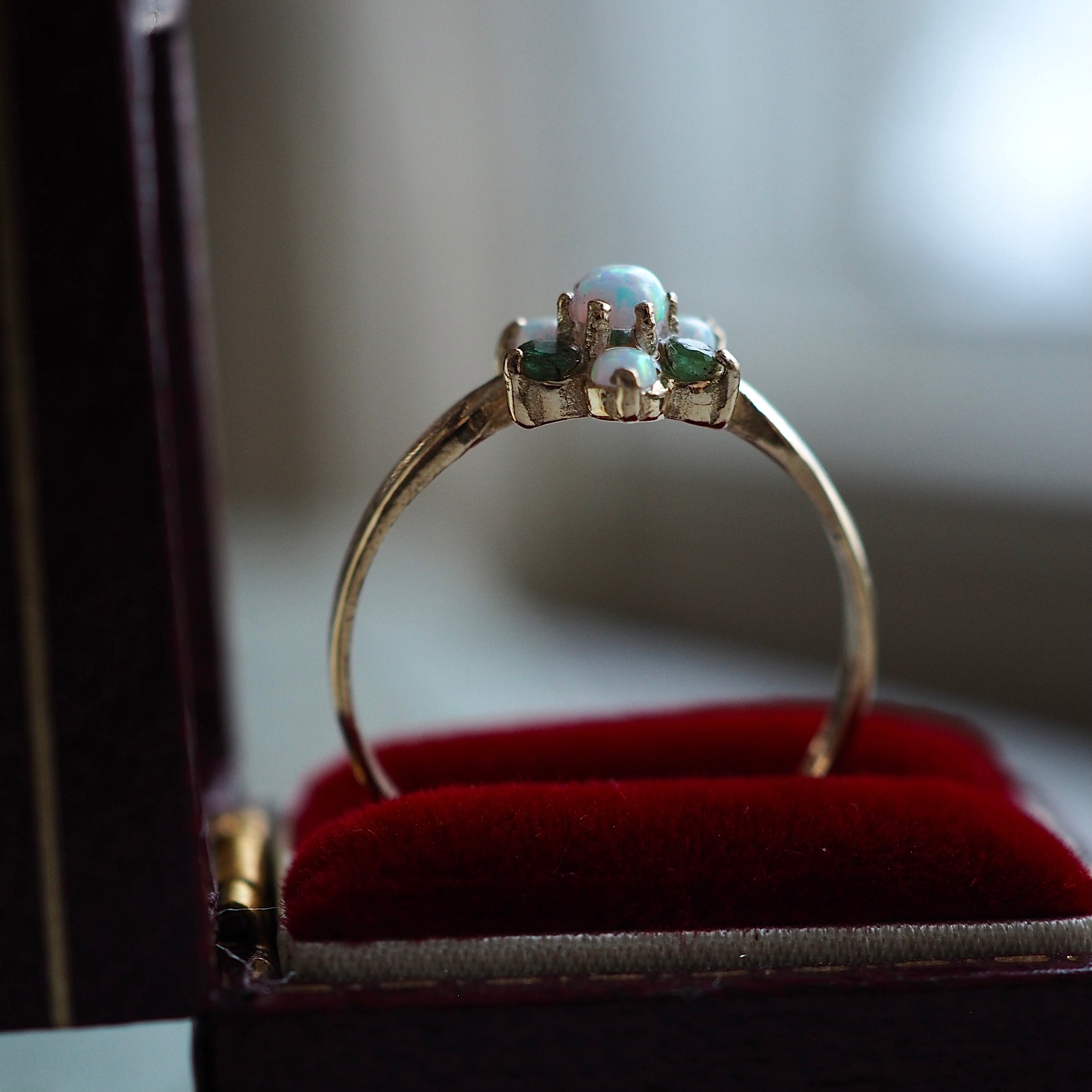 イギリス 英国 ヴィンテージリング オパール×エメラルド フラワー