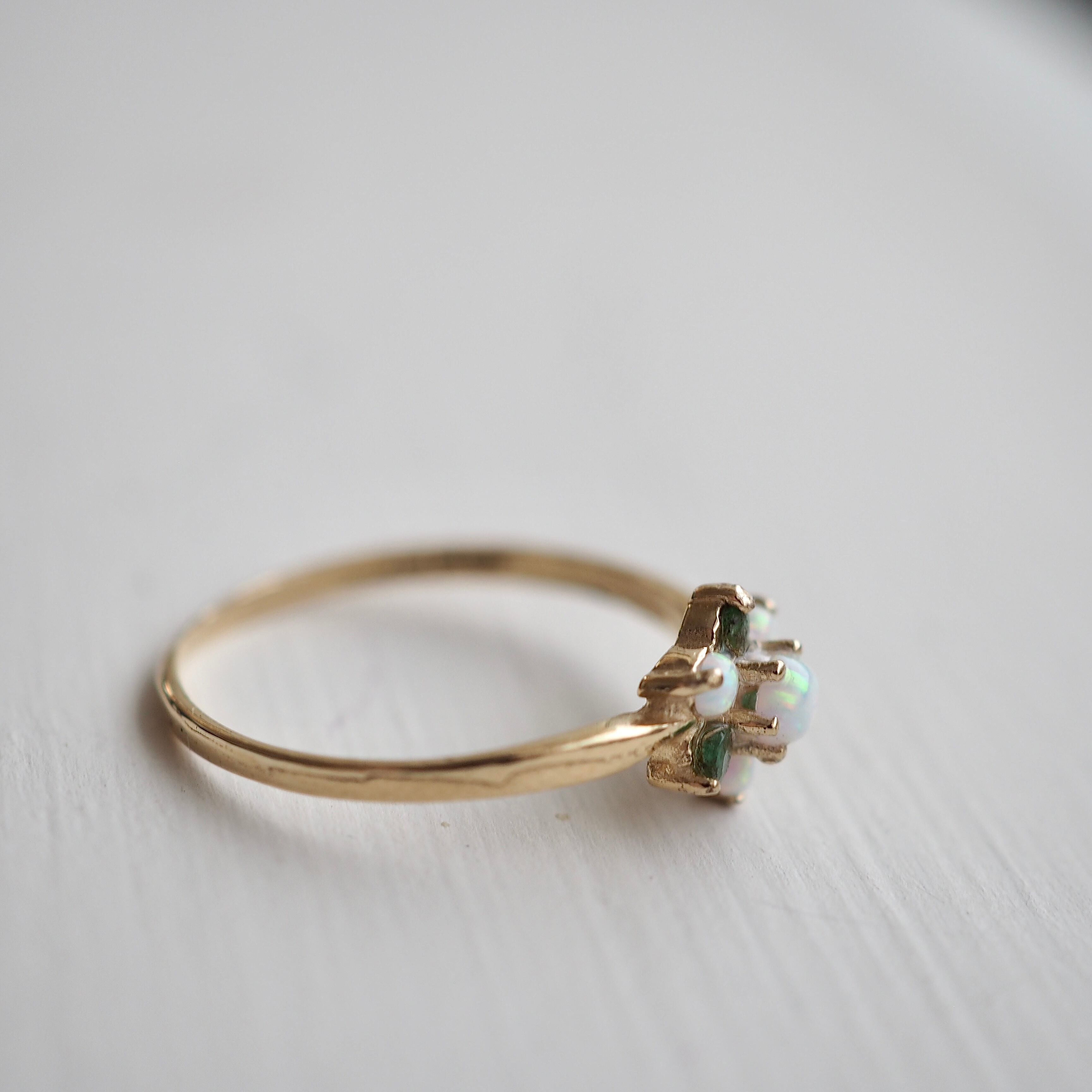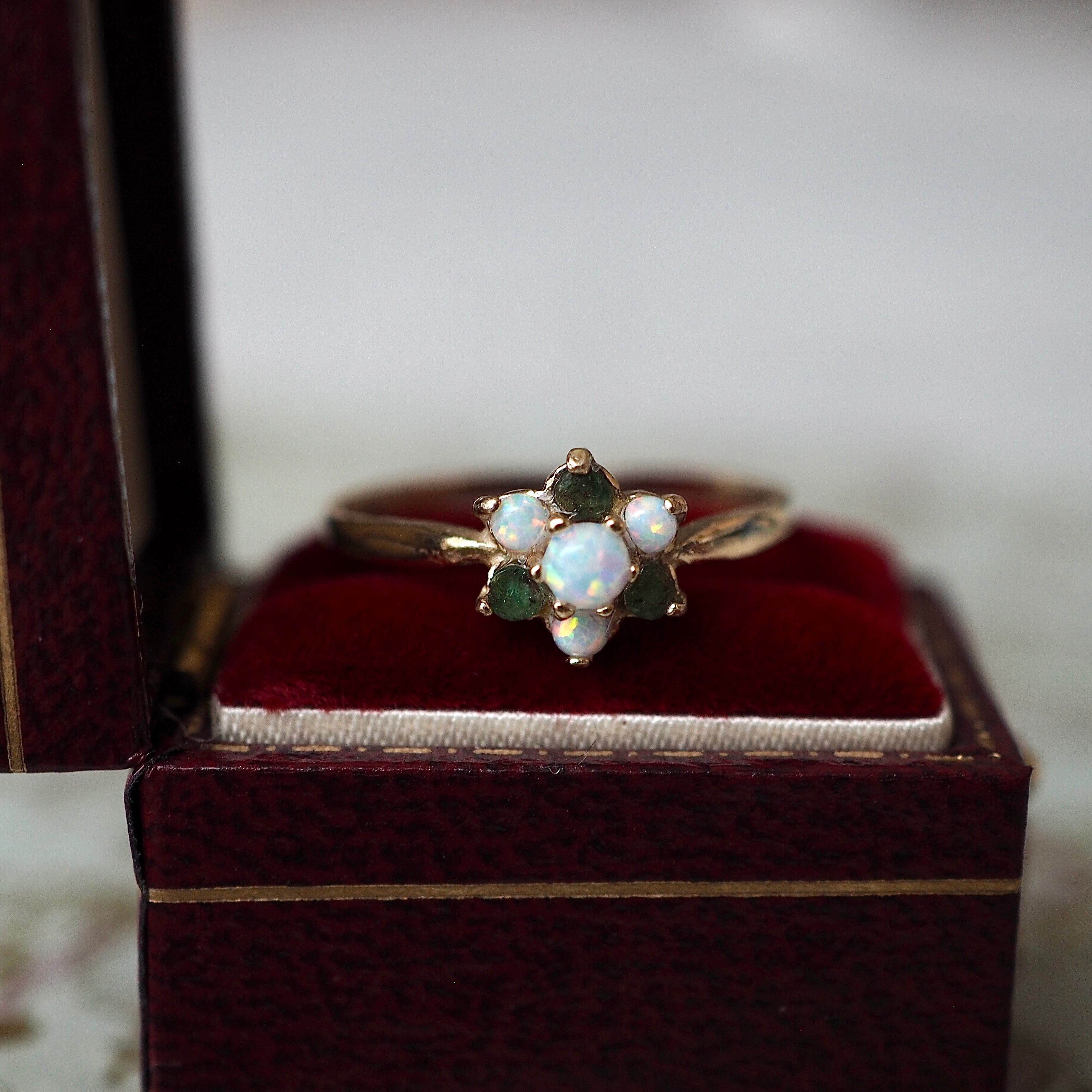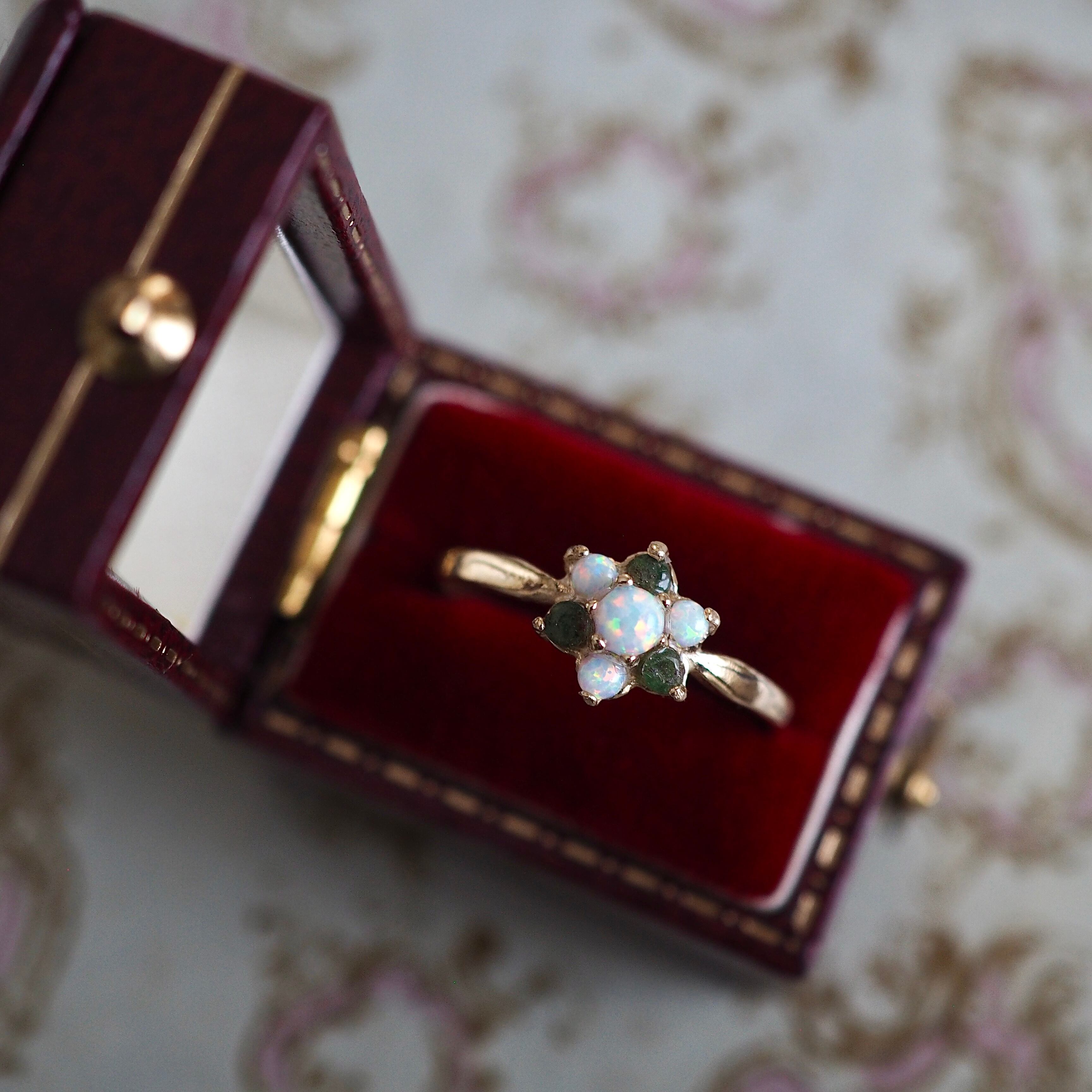 イギリス 英国 ヴィンテージリング オパール×エメラルド フラワー