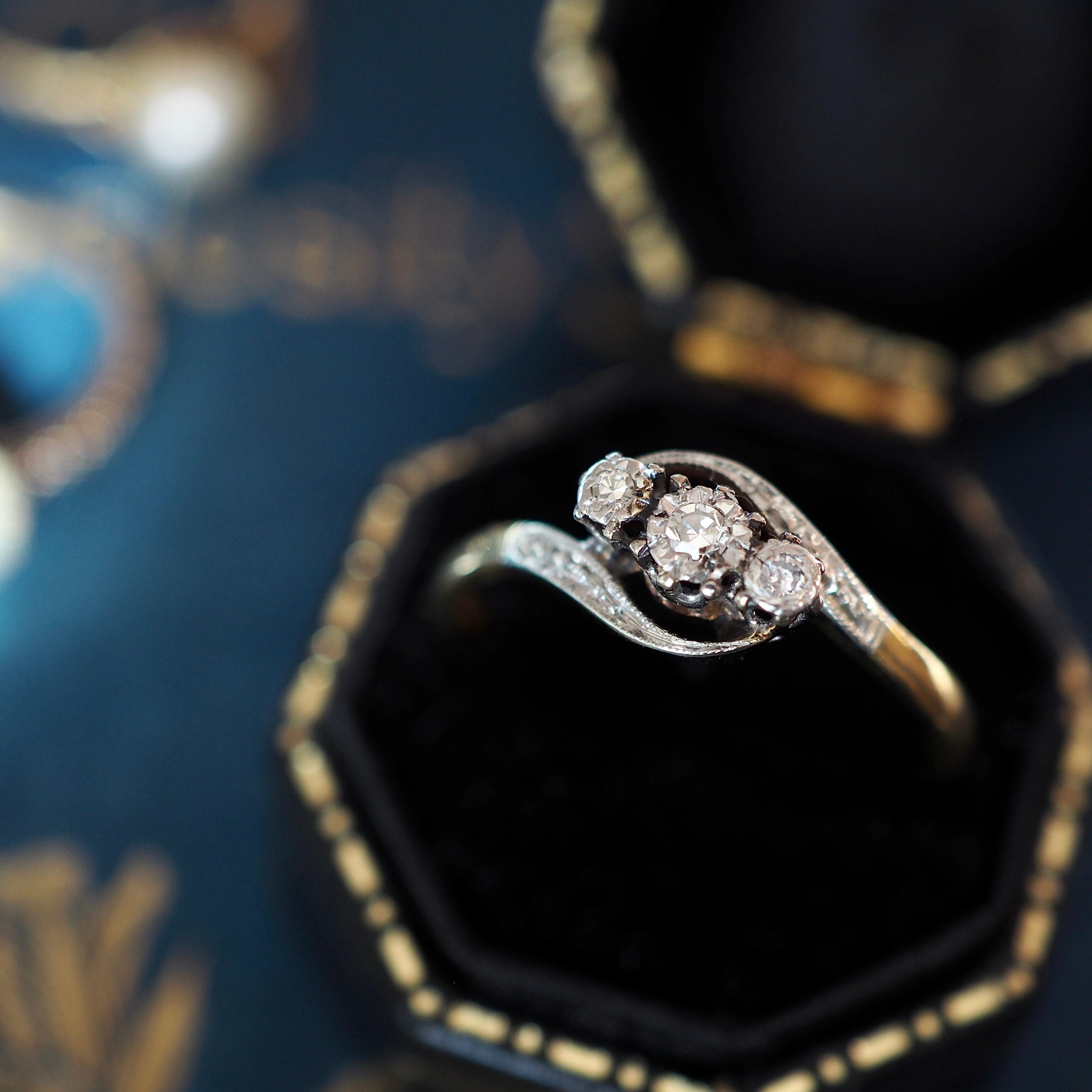 イギリス アンティーク ダイヤモンド トリロジーリング K18