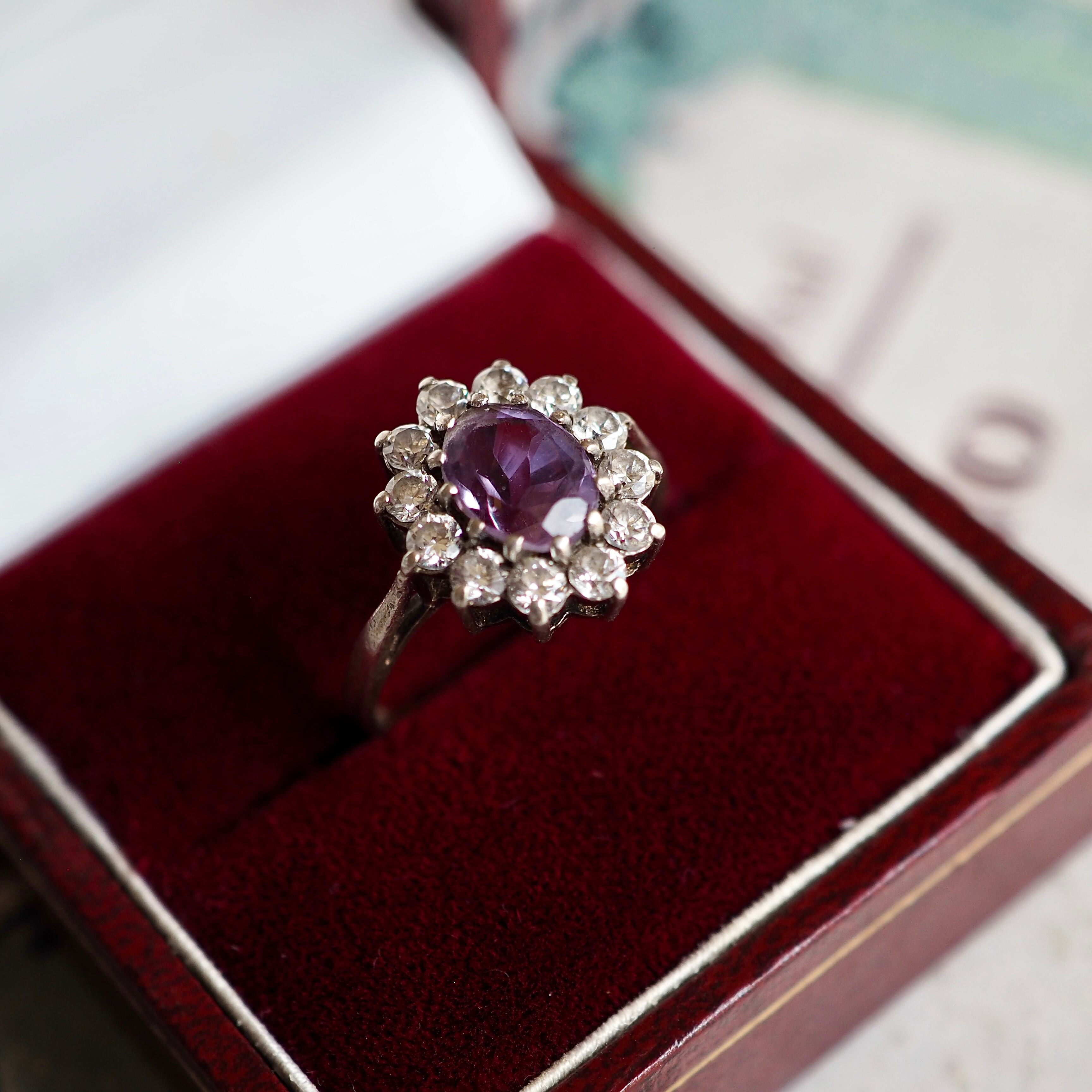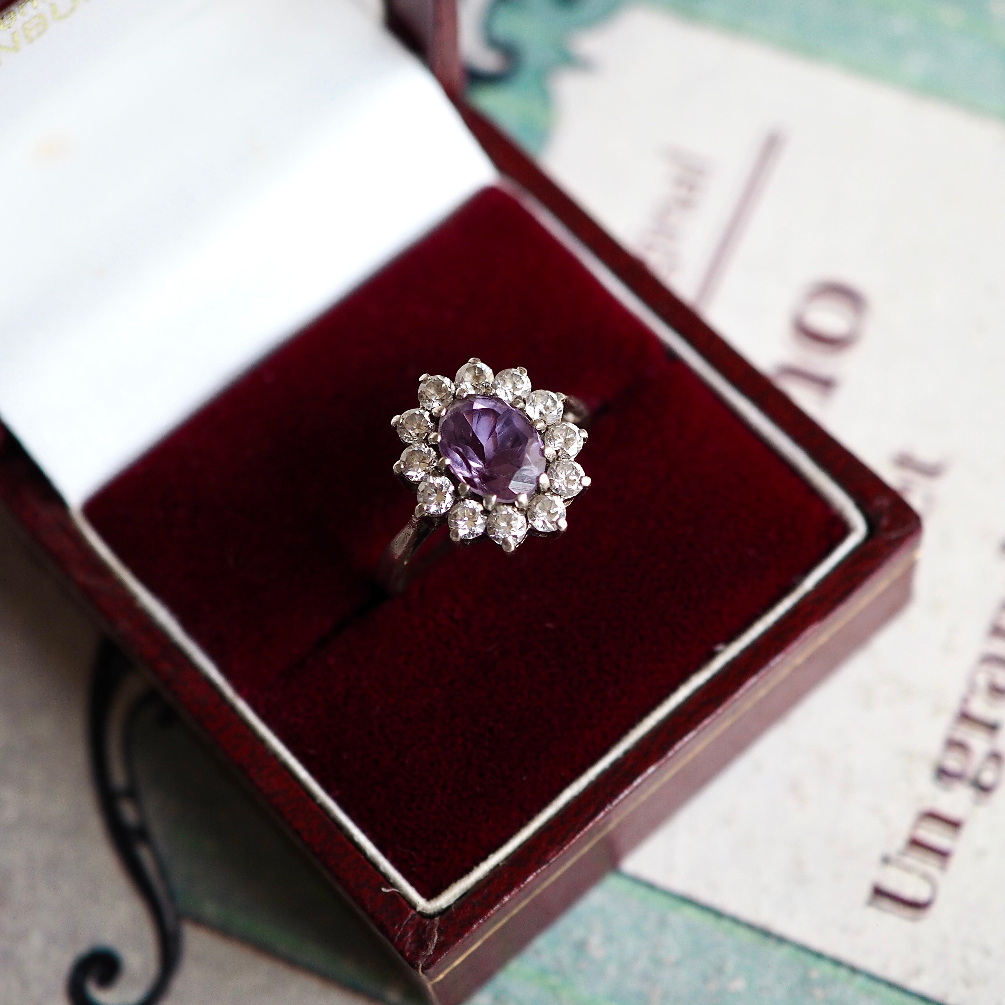 イギリス アンティークリング アメジスト×ホワイトサファイア 英国