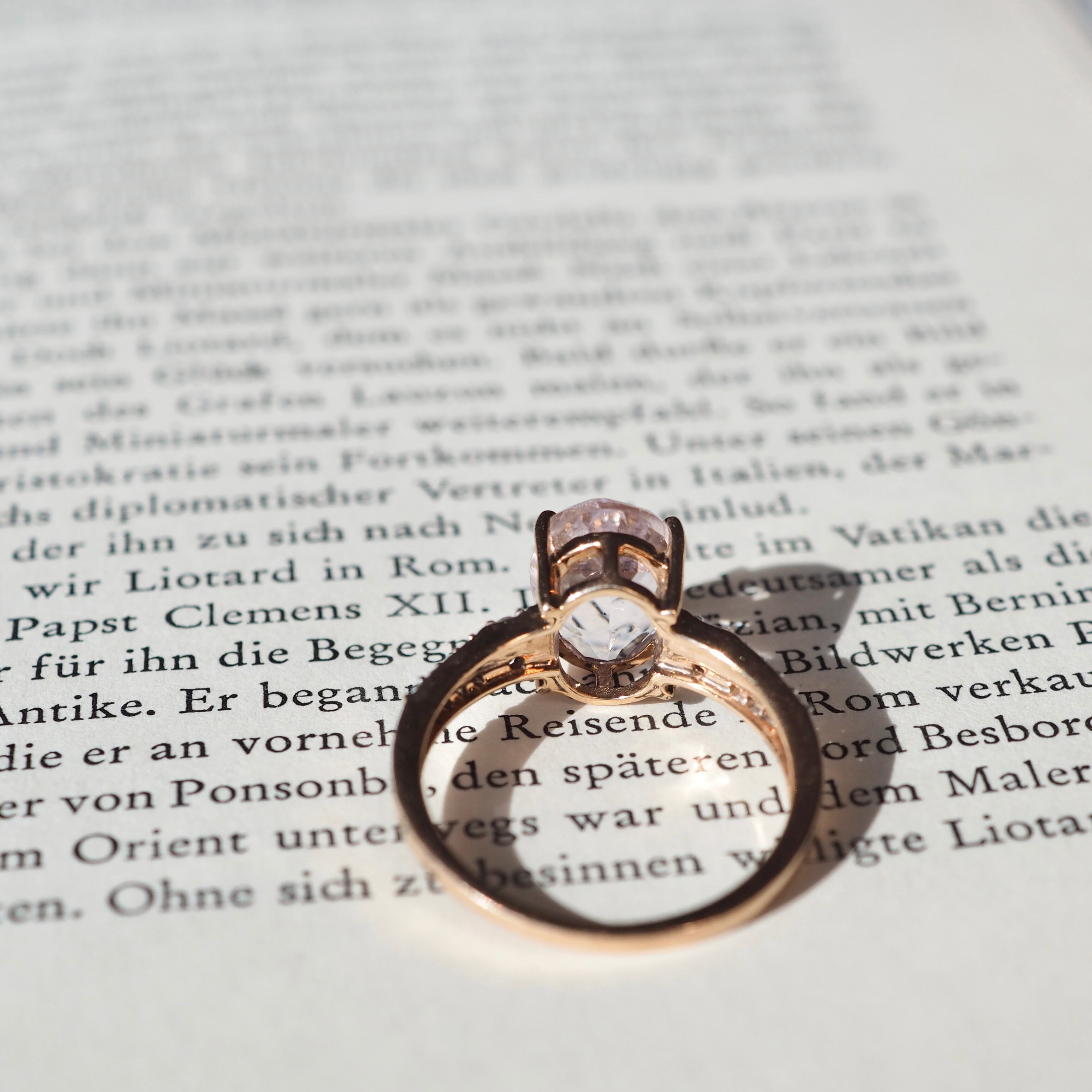 ショルダーにはホワイトトパーズがセッティングされています。地金はローズゴールドで気品がありながら可愛い逸品です。