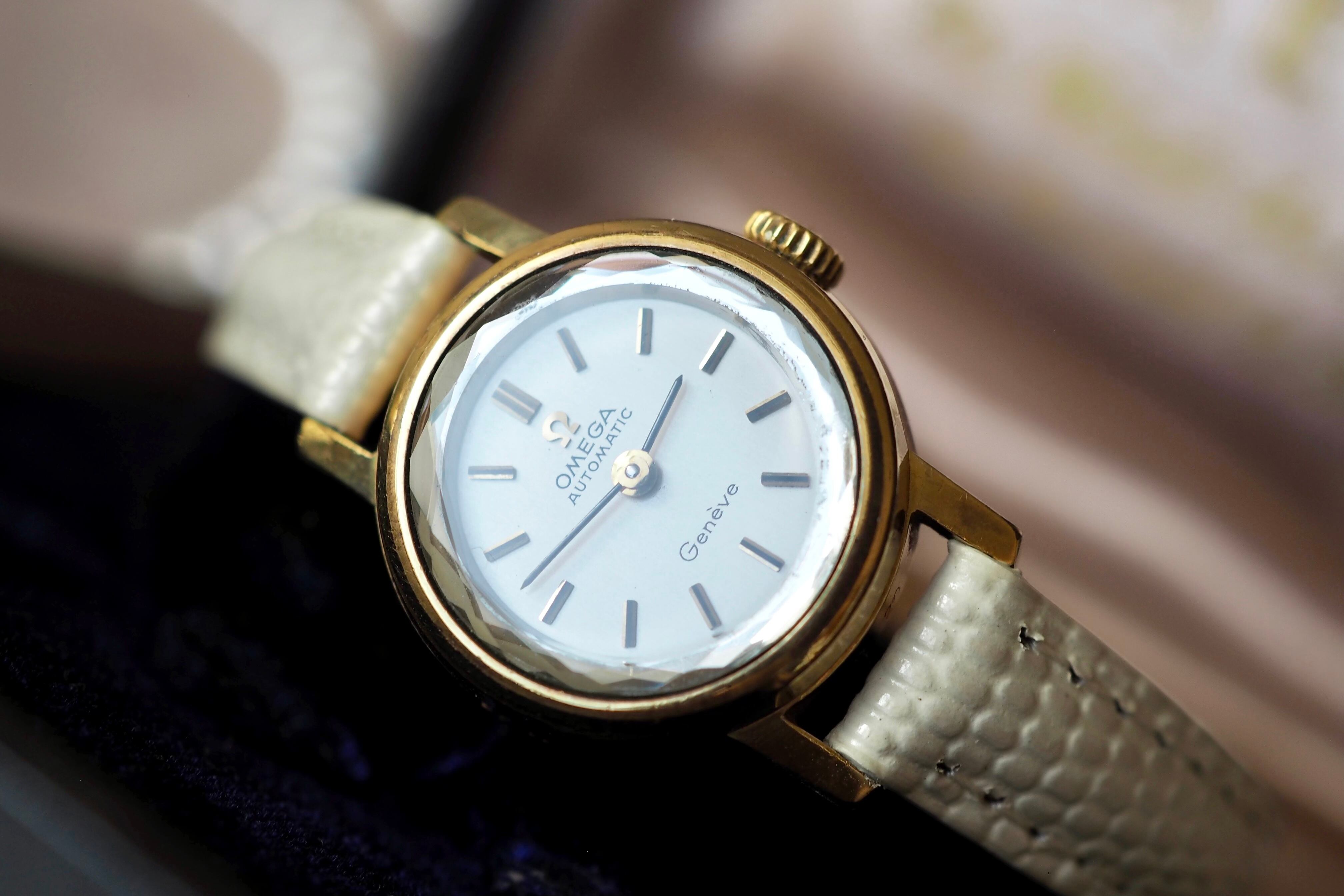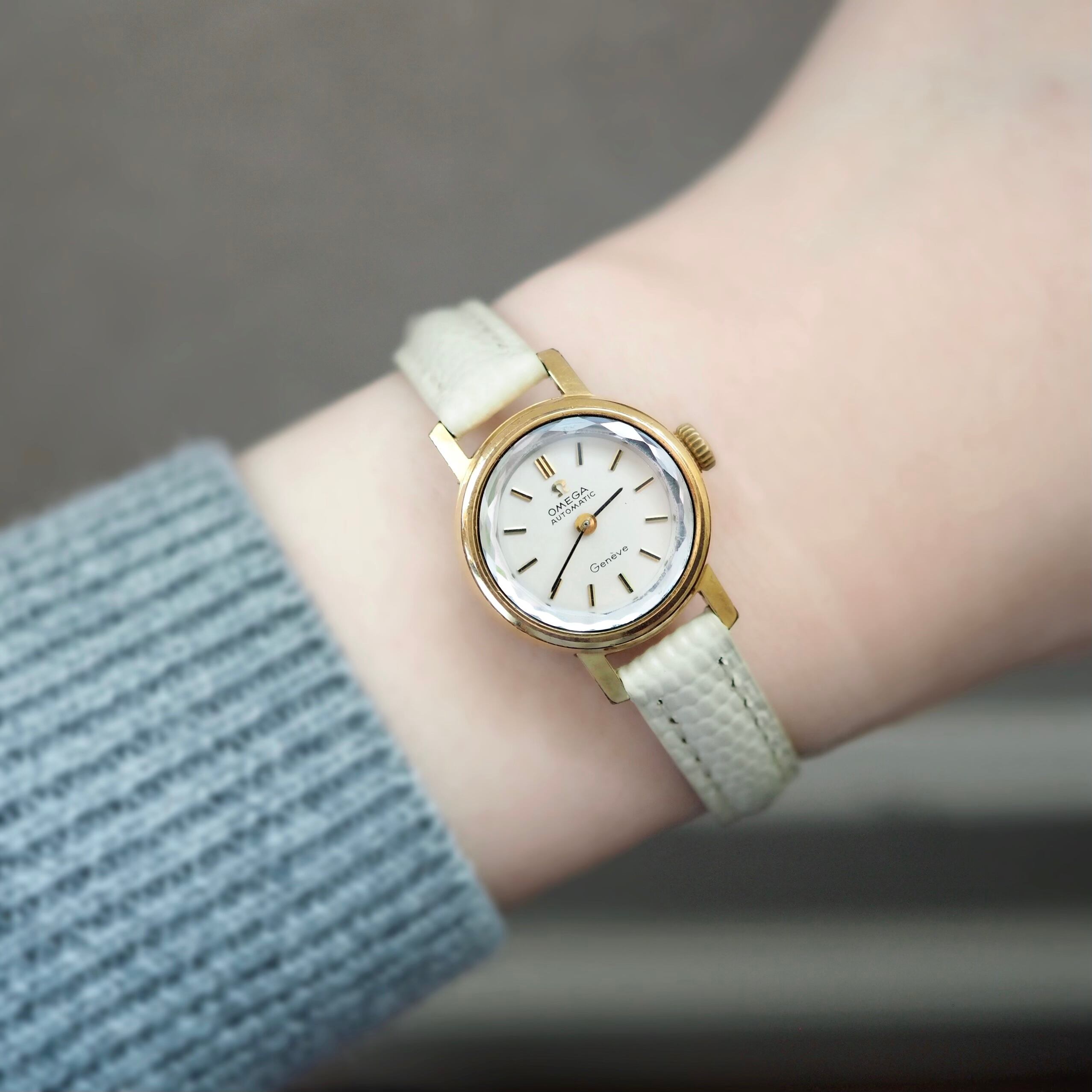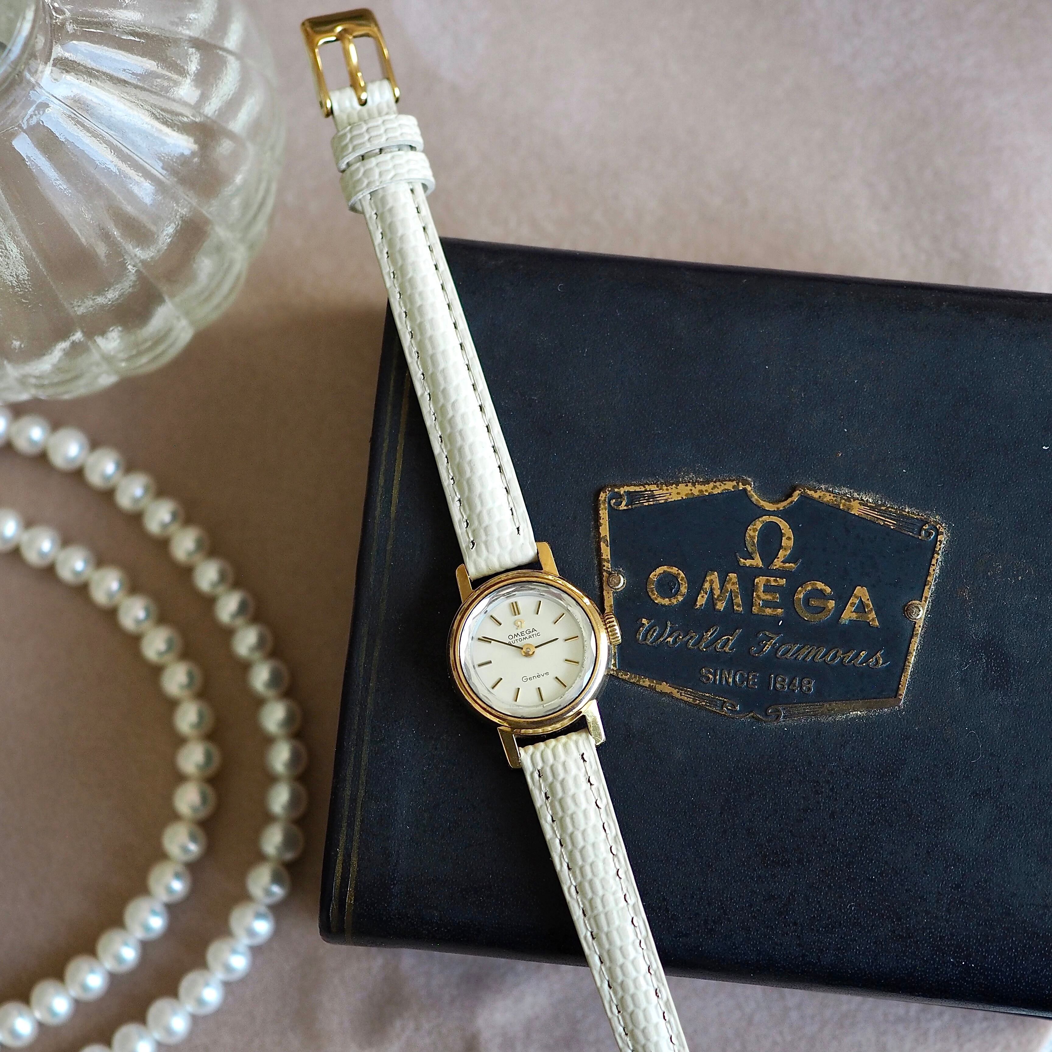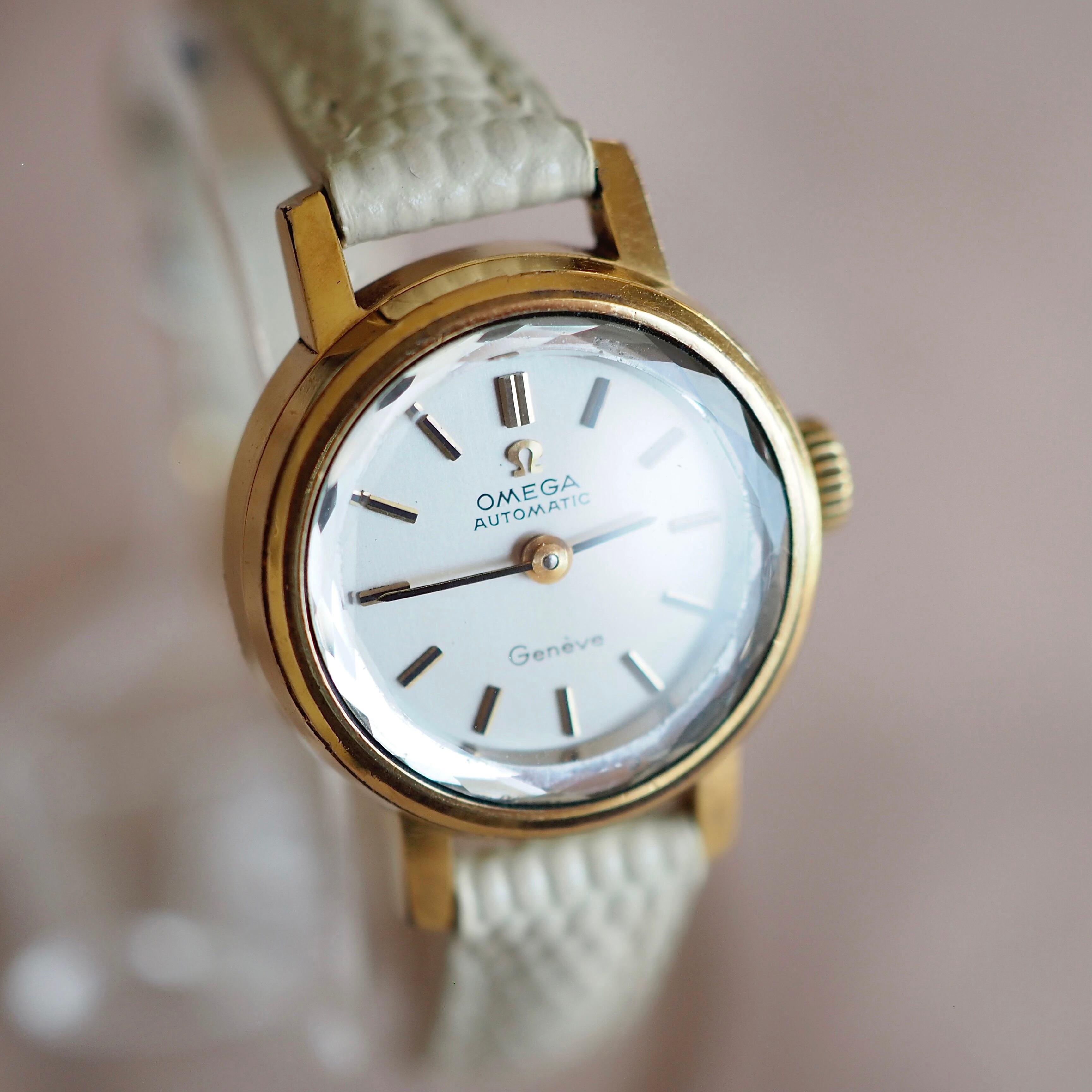 OH済 OMEGA Genève 自動巻 サファイアカットガラス アンティーク時計