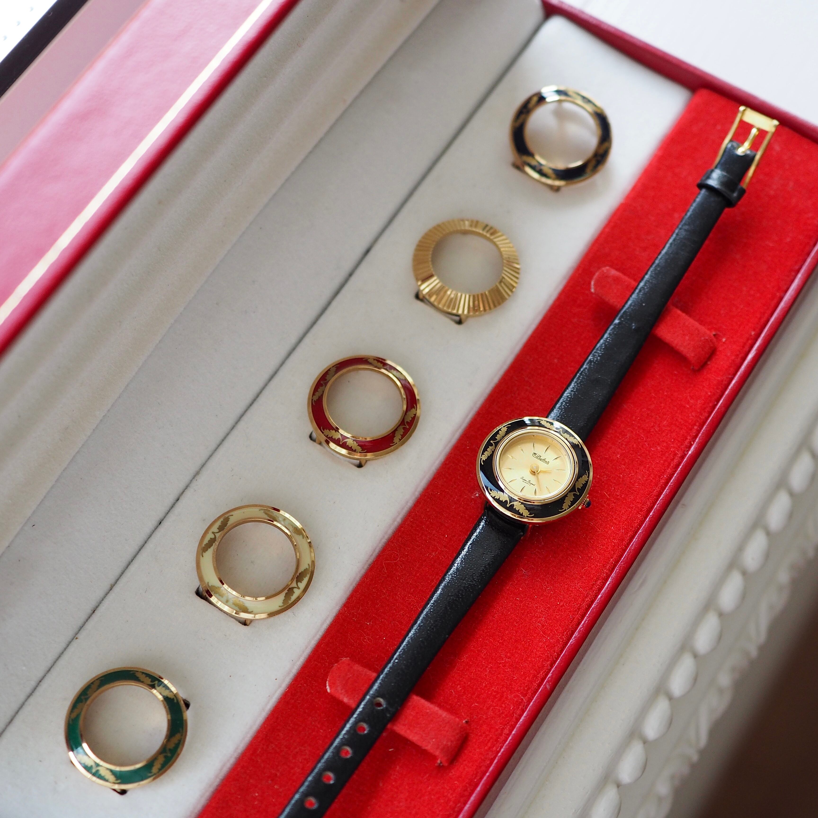 6つのべゼルと6つのバンドを簡単に付け替えることができる着せ替え時計は気分やコーディネートに合わせて使えるワードローブをもつのが最大の魅力です。