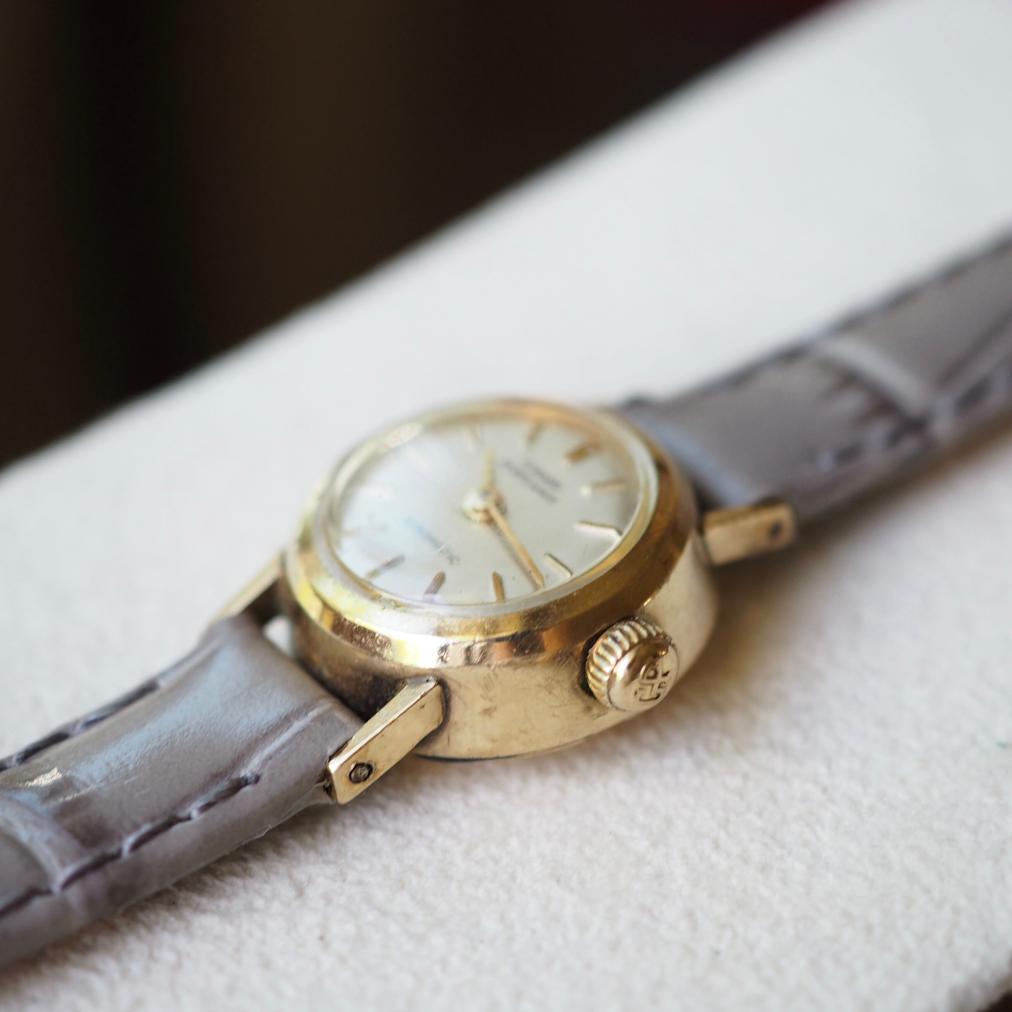 風防はドーム型になっており、厚み9㎜の自動巻きらしいコロンとした可愛らしいシルエットが魅力です。